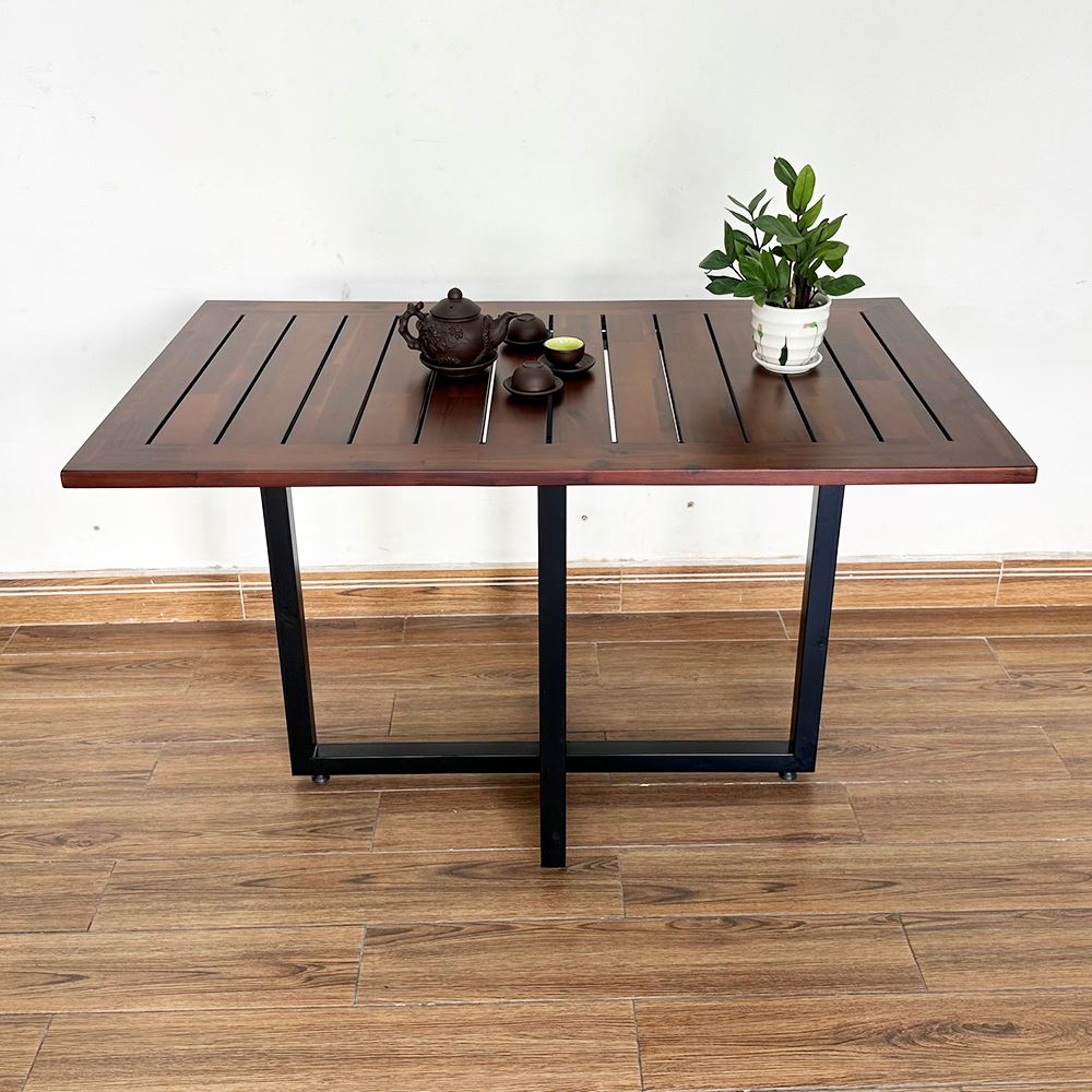 Bàn ngoài trời gỗ tràm chân sắt sơn tĩnh điện CFD68130 thuộc dòng sản phẩm bàn ghế ngoài trời với mặt bàn gỗ tràm được phủ lớp sơn chống thấm nước kết hợp khung sắt sơn tĩnh điện chắc chắn. Kích thước 120x70cm phù hợp với nhiều mục đích và không gian sử dụng khác nhau như bàn ghế nhà hàng, khách sạn, bàn ghế cafe, hay dùng trong gia đình cho bàn ăn, bàn ghế ban công, bàn ghế sân vườn...