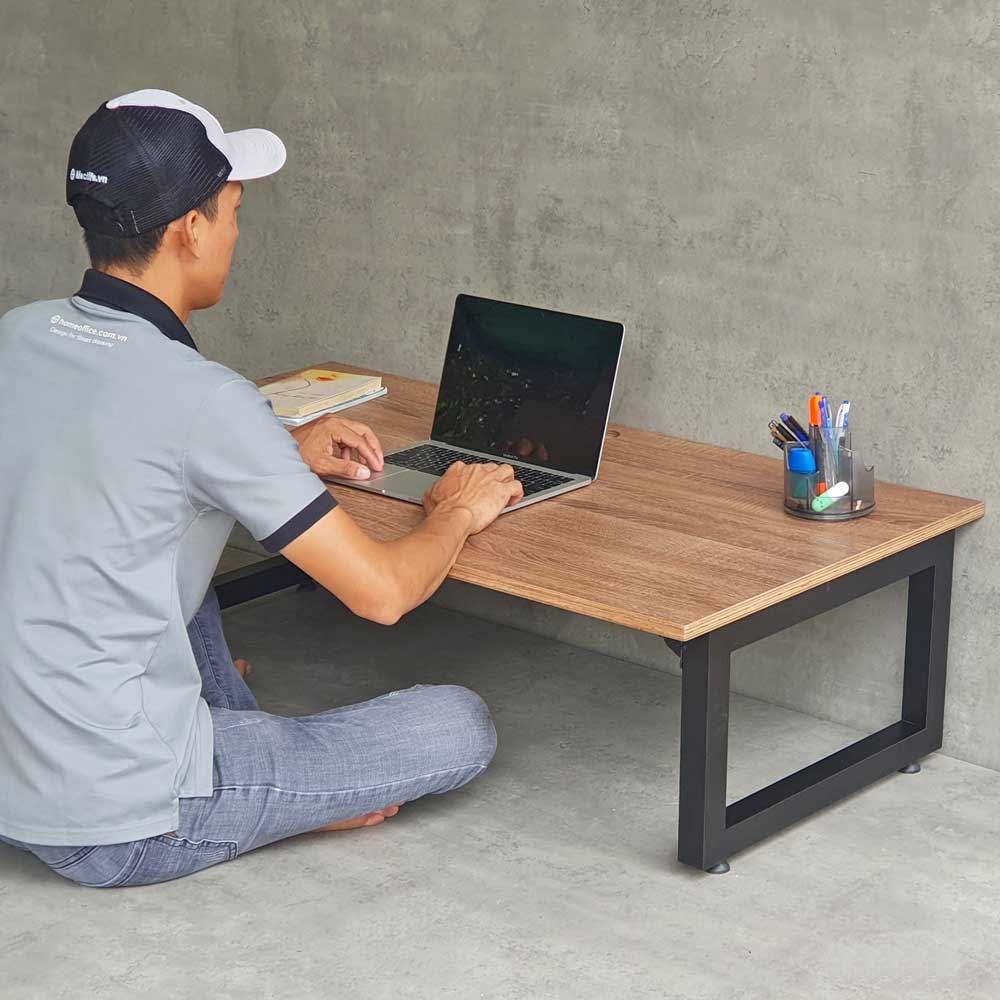 Bàn làm việc ngồi bệt gỗ Plywood chân sắt gấp thấp
