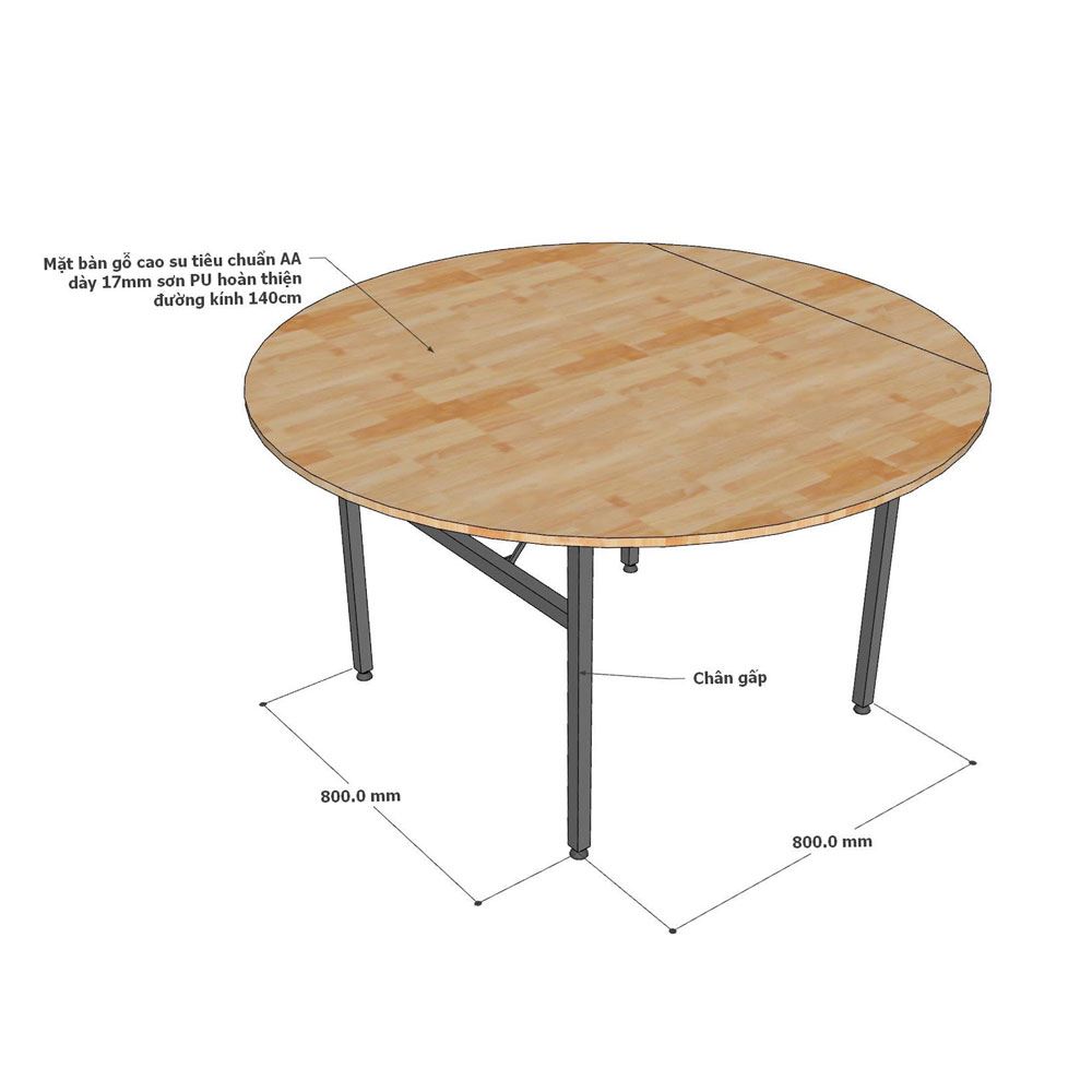 Mặt bàn làm từ gỗ cao su AA chuẩn xuất khẩu, qua xử lý chống thấm và chà nhám kỹ lưỡng, mang đến vẻ đẹp tự nhiên, sang trọng và độ bền cao. Chất liệu gỗ cao cấp không chỉ đảm bảo độ cứng vững mà còn tạo cảm giác ấm áp, thoải mái khi sử dụng. Thiết kế đơn giản nhưng không kém phần tinh tế, bàn gấp gọn BNH001 dễ dàng hòa hợp với mọi không gian nội thất, và có thể sử dụng cho nhiều mục đích khác như là bàn ăn gia đình, bàn quán ăn, bàn họp, hoặc bàn tiếp khách.