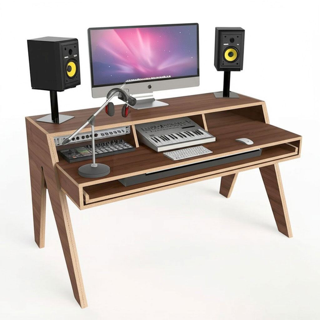 Chiếc bàn này không chỉ đáp ứng nhu cầu làm việc hiệu quả mà còn mang lại sự thoải mái và tính thẩm mỹ cao cho phòng thu chuyên nghiệp hoặc home studio.