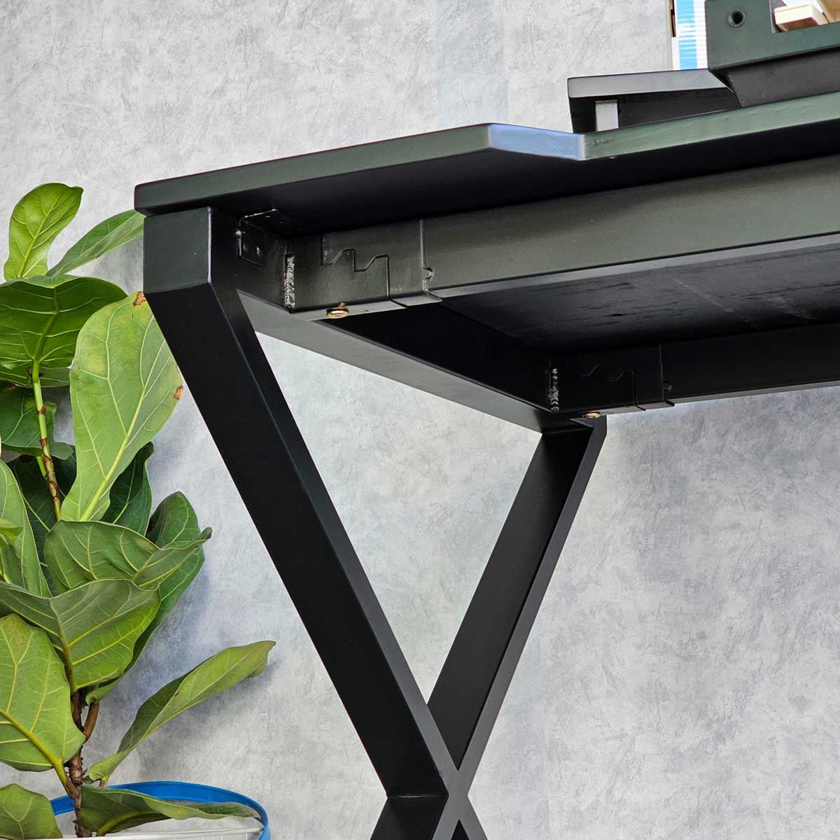 Khung chân sắt chữ X mang đến sự chắc chắn, ổn định cho bàn, đồng thời tạo điểm nhấn độc đáo cho không gian