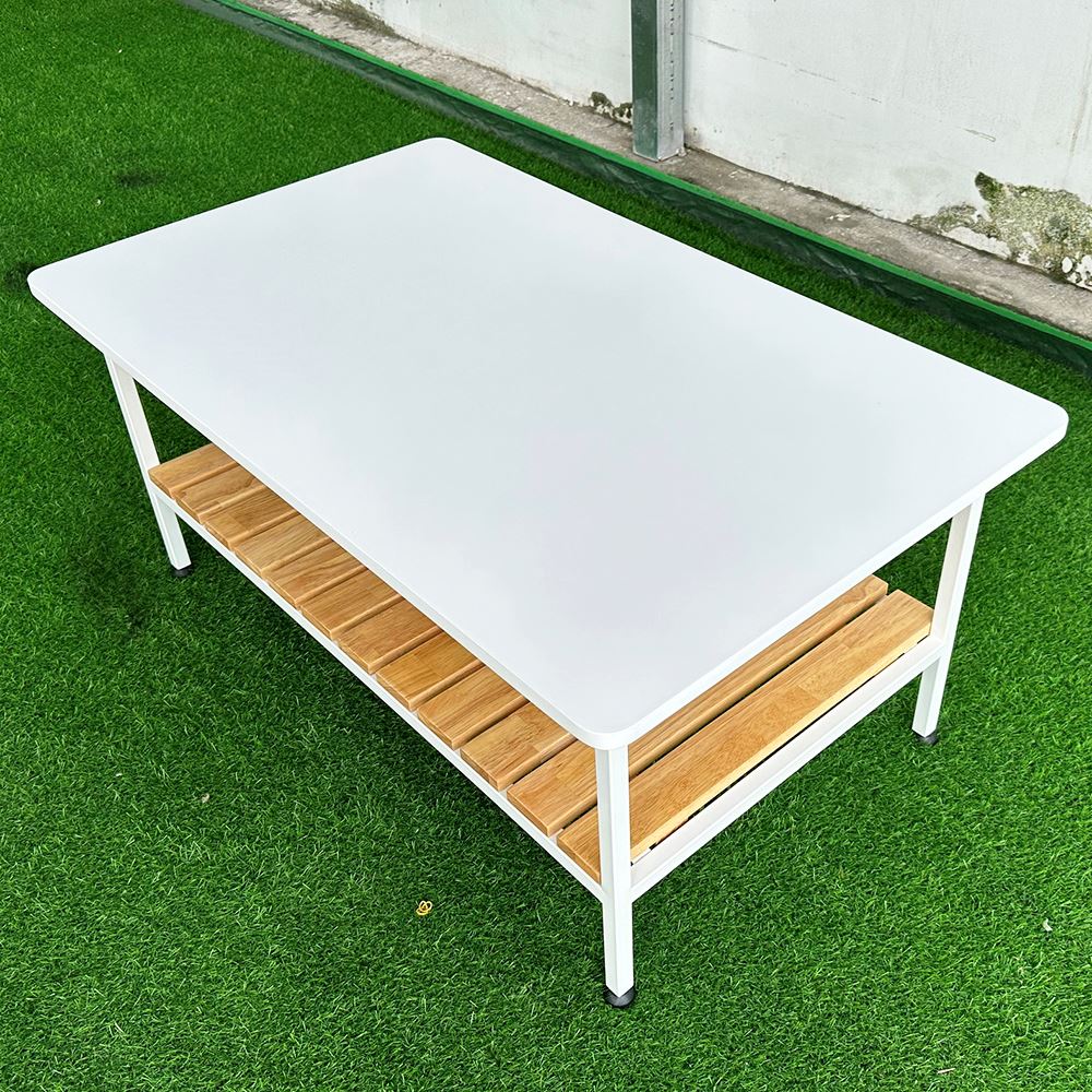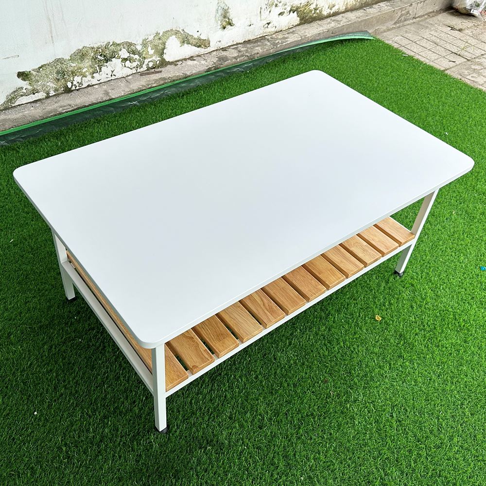 Bàn sofa 2 tầng gỗ cao su khung sắt TT68208 với mặt bàn sử dụng gỗ cao su tiêu chuẩn AA dày 17mm được xử lý và hoàn thiện màu trắng và gỗ tự nhiên đẹp mắt, bề mặt được phủ lớp sơn chống thấm nước đảm bảo độ bền cao. Kết hợp mặt gỗ là khung chân sắt vuông 20x20mm thanh mảnh, sắt dày 1.2mm sơn tĩnh điện cao cấp, nước sơn đẹp mắt và tăng tuổi thọ cho sản phẩm.