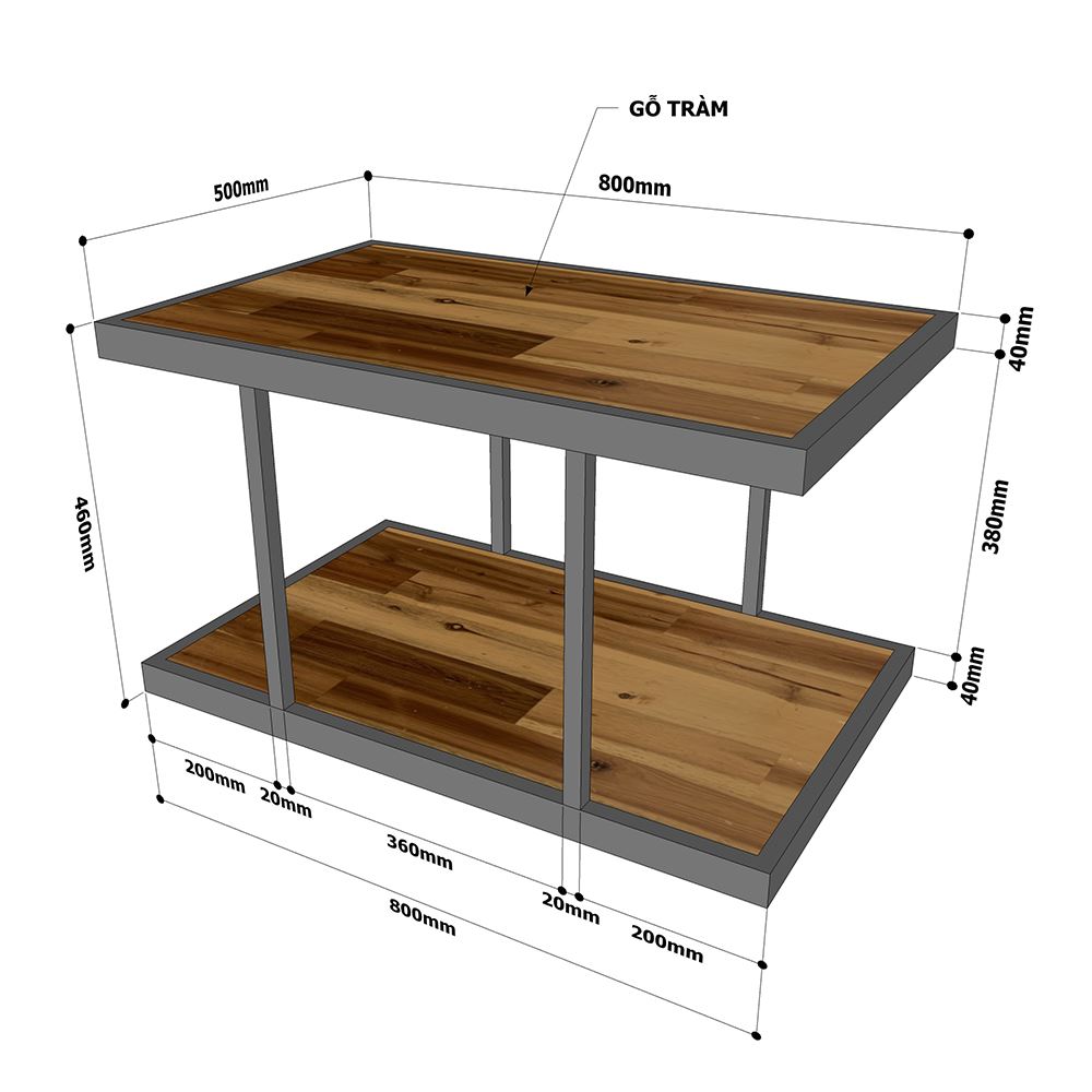 Bàn sofa 2 tầng gỗ tràm khung sắt