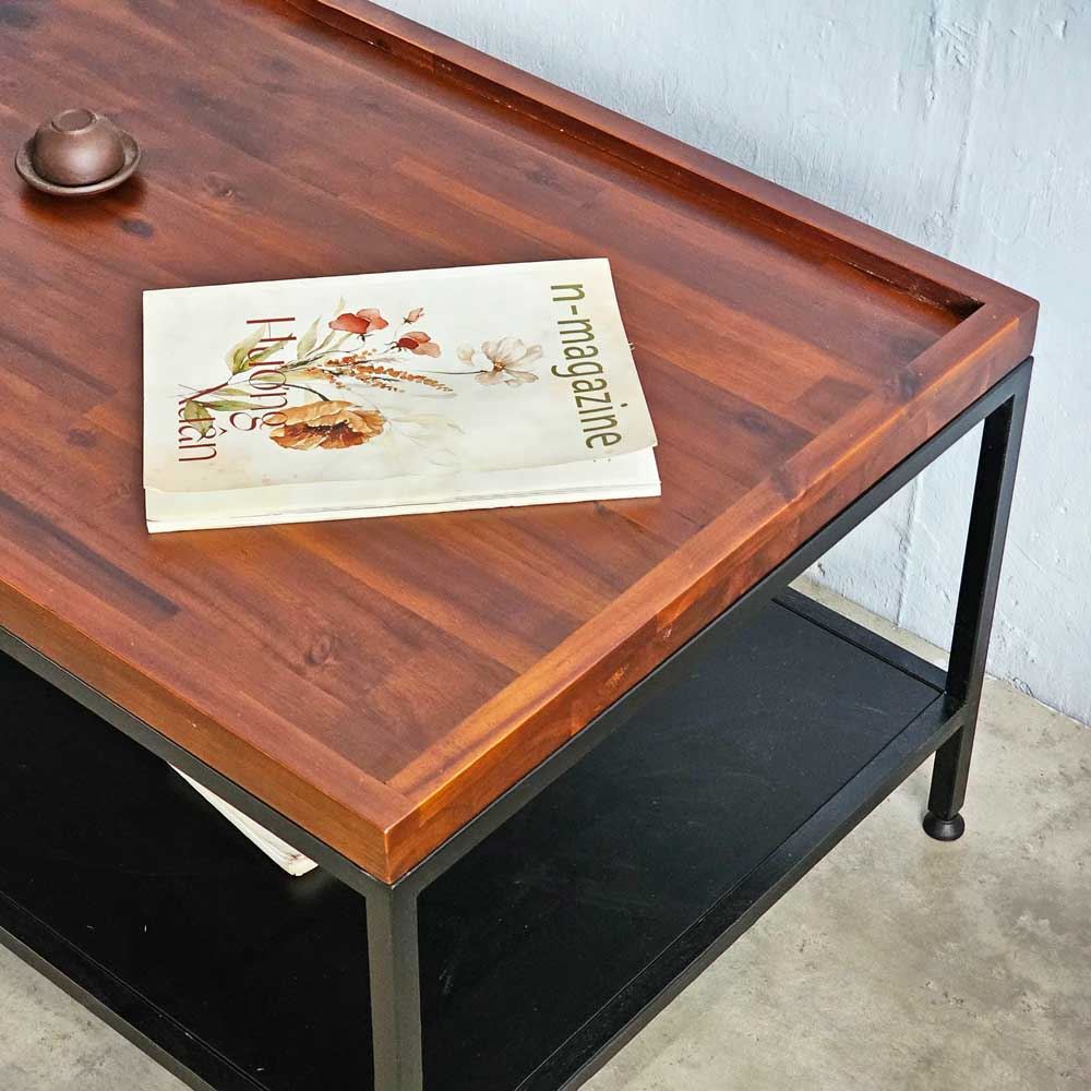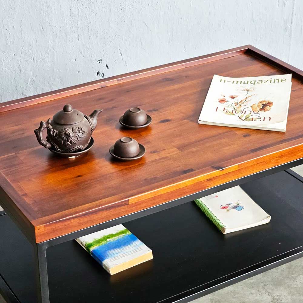 Bàn sofa 2 tầng khung sắt gỗ tràm