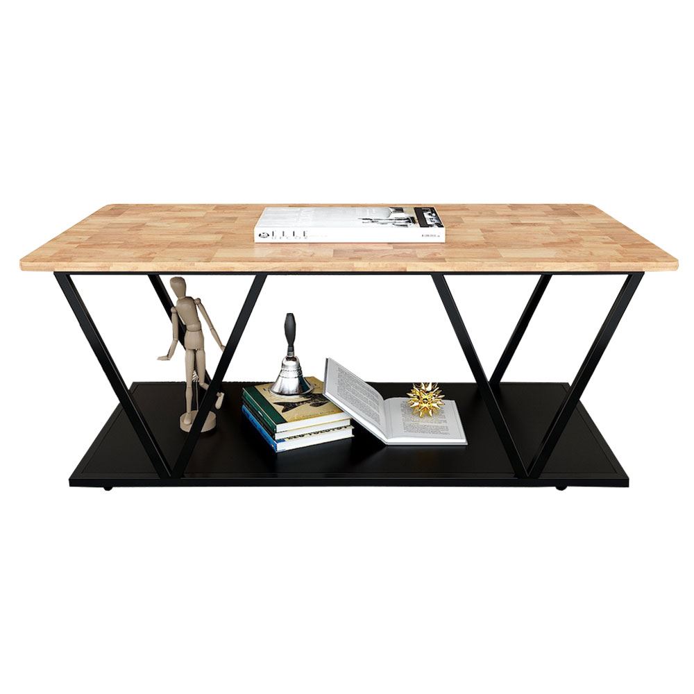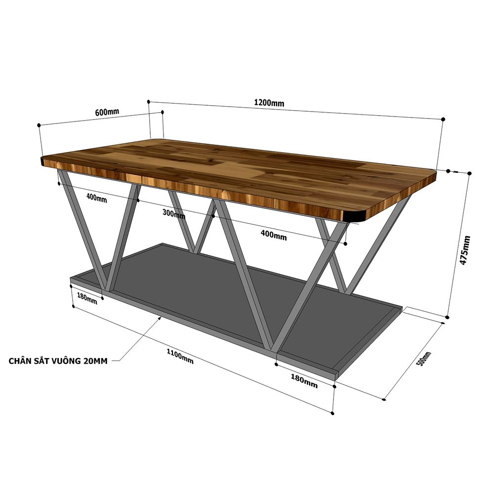 Bàn sofa 2 tầng khung sắt mặt gỗ cao su