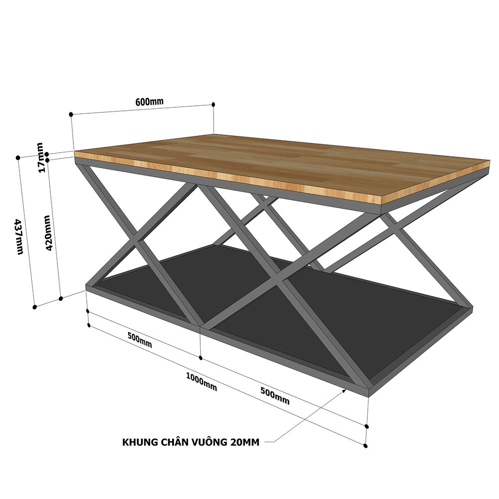 Kích thước bàn sofa 2 tầng khung sắt Xconcept TT68149