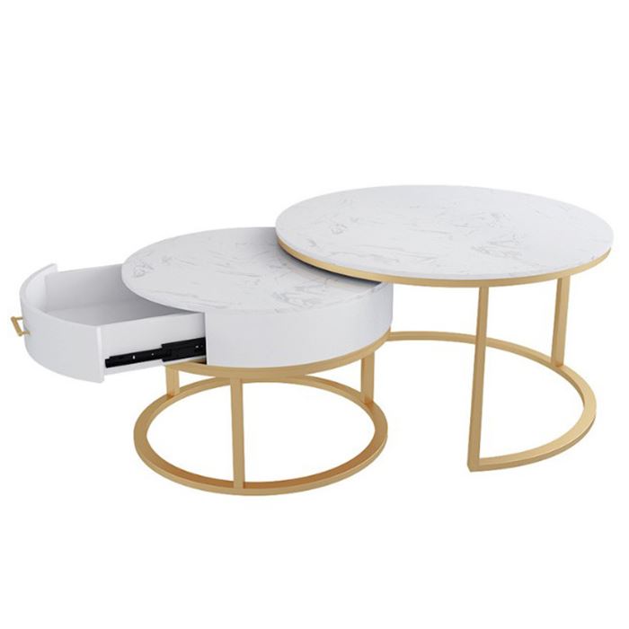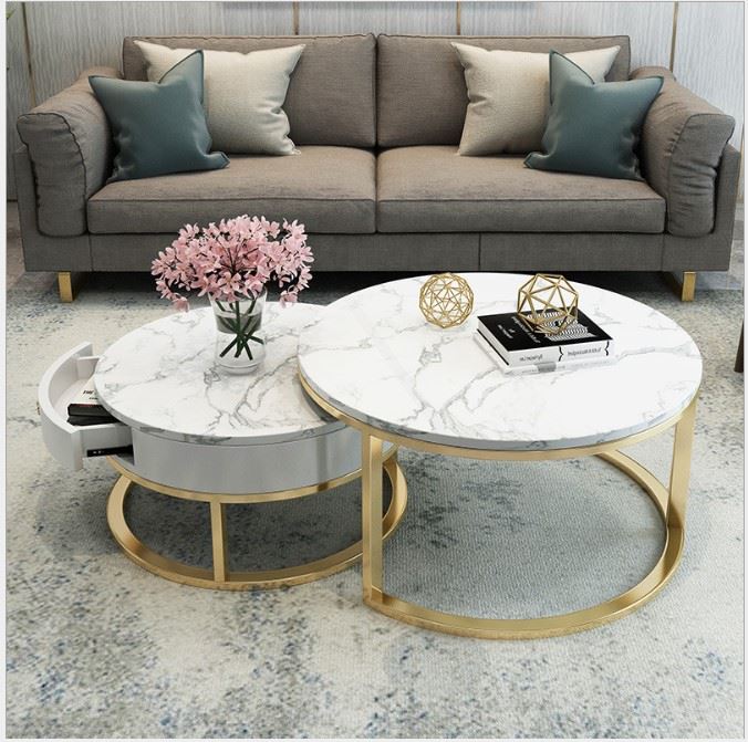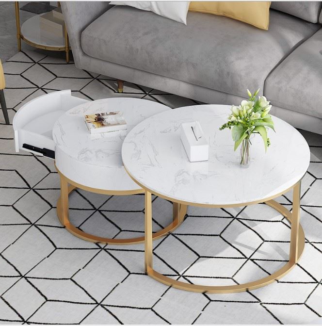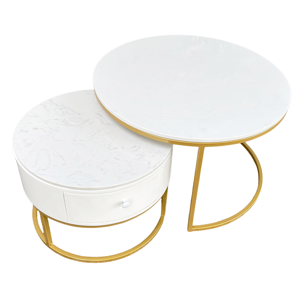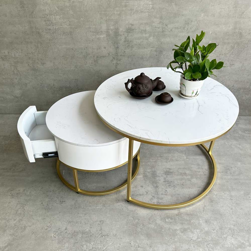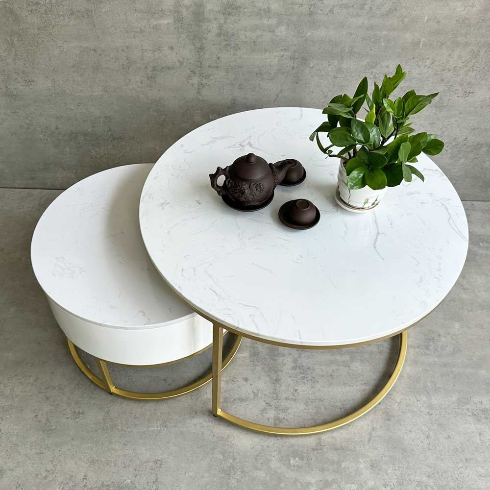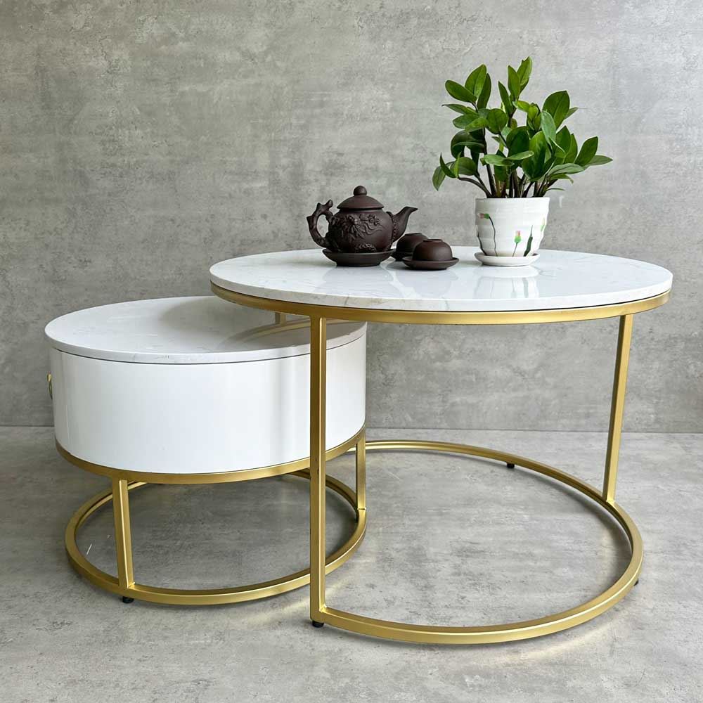 Bàn sofa 2 tầng mặt đá có hộc tủ gỗ TT68194 là sự kết hợp của bàn tròn mặt đá đường kính 70cm với bàn nhỏ hộc tủ gỗ cho phòng khách đẹp thêm ấn tượng, sang trọng và mới lạ. Kết hợp với mặt bàn đá là khung chân sắt chắc chắn, có khả năng chịu lực tốt, tủ gỗ tăng khả năng lưu trữ rất tiện lợi. Kiểu dáng hiện đại, màu sắc đa dạng phù hợp với mọi không gian từ chung cư đến nhà ở.
