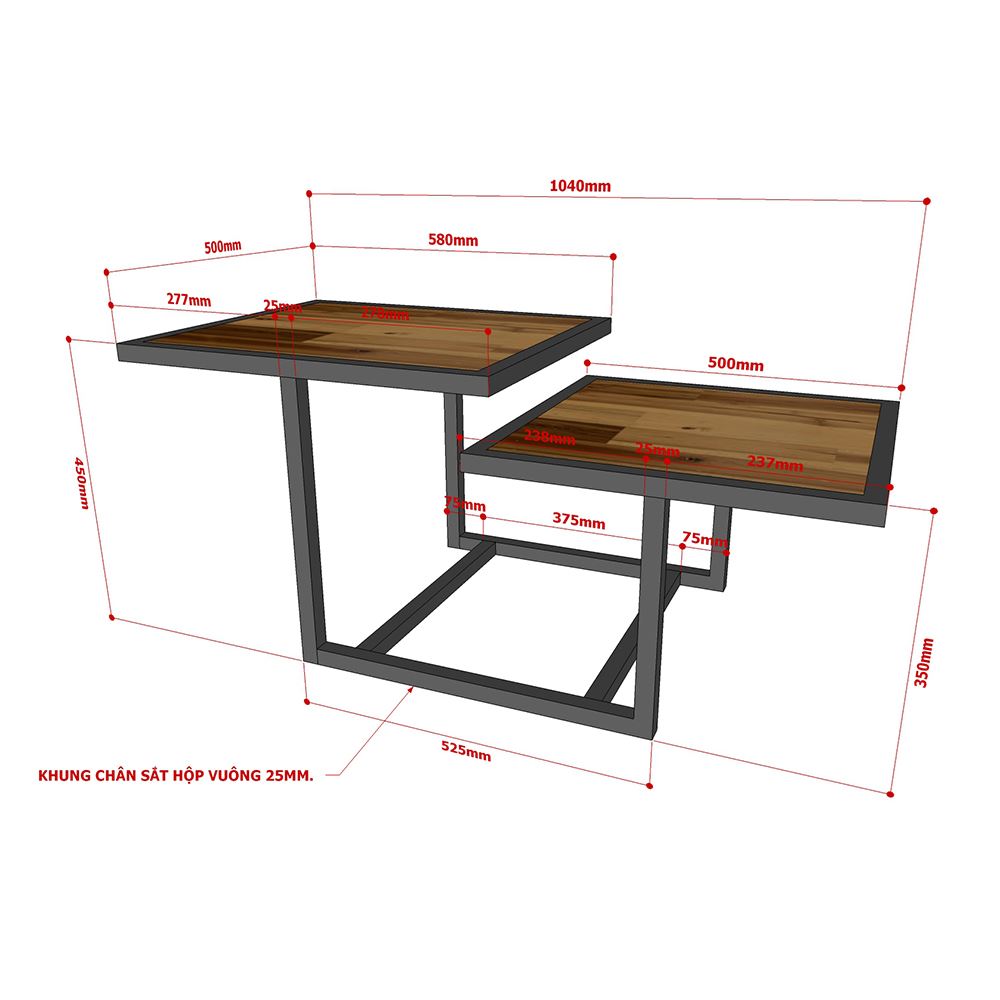Chi tiết kích thước bàn sofa 2 tầng TT68141