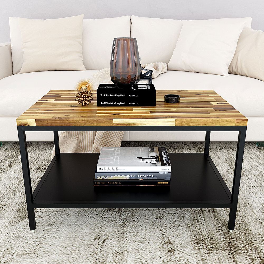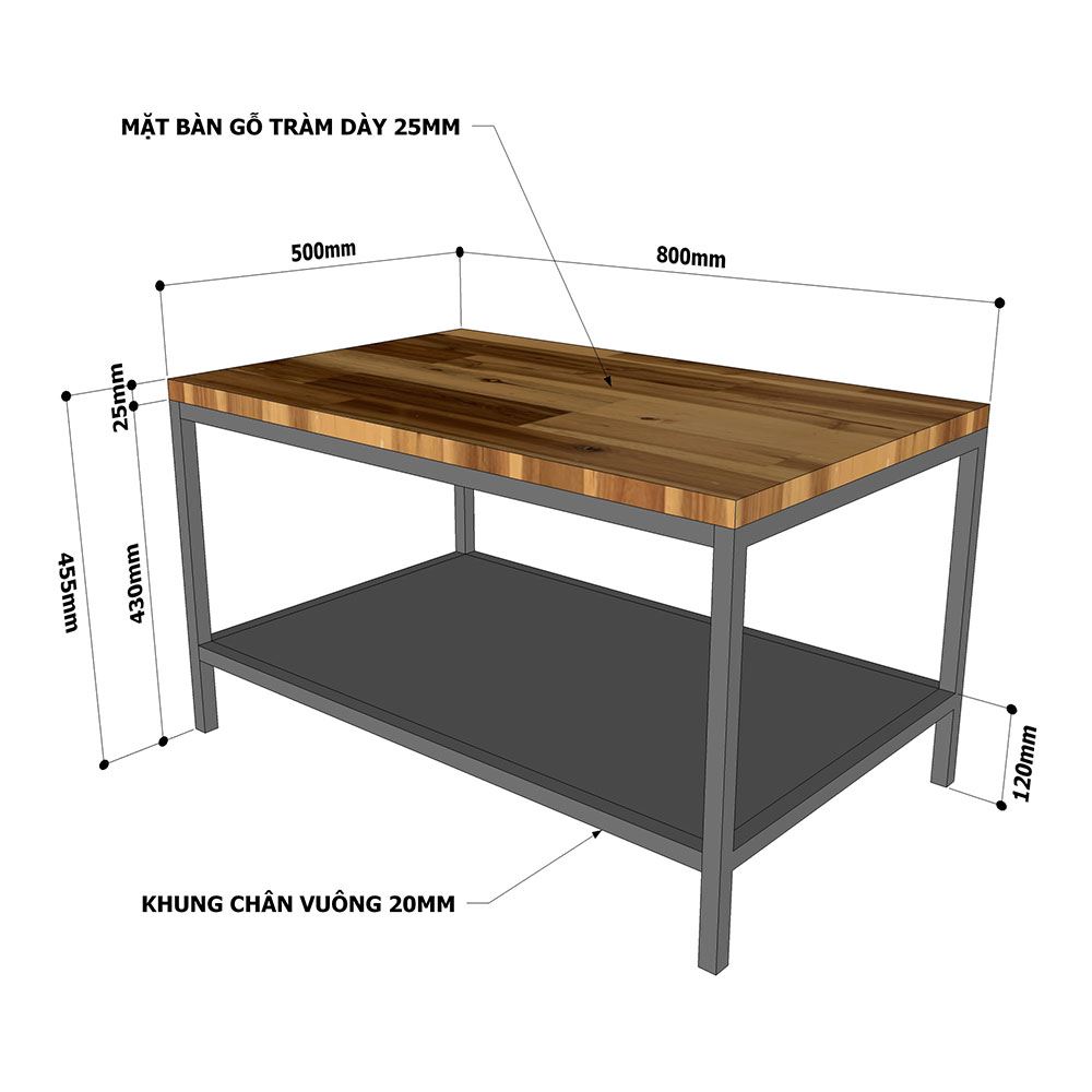 Bàn sofa 2 tầng mặt gỗ Tràm chân sắt đen