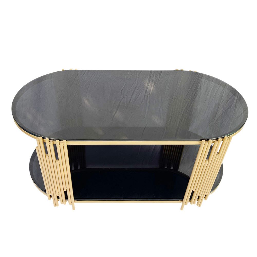 Bàn sofa 2 tầng mặt kính đen khung sơn vàng