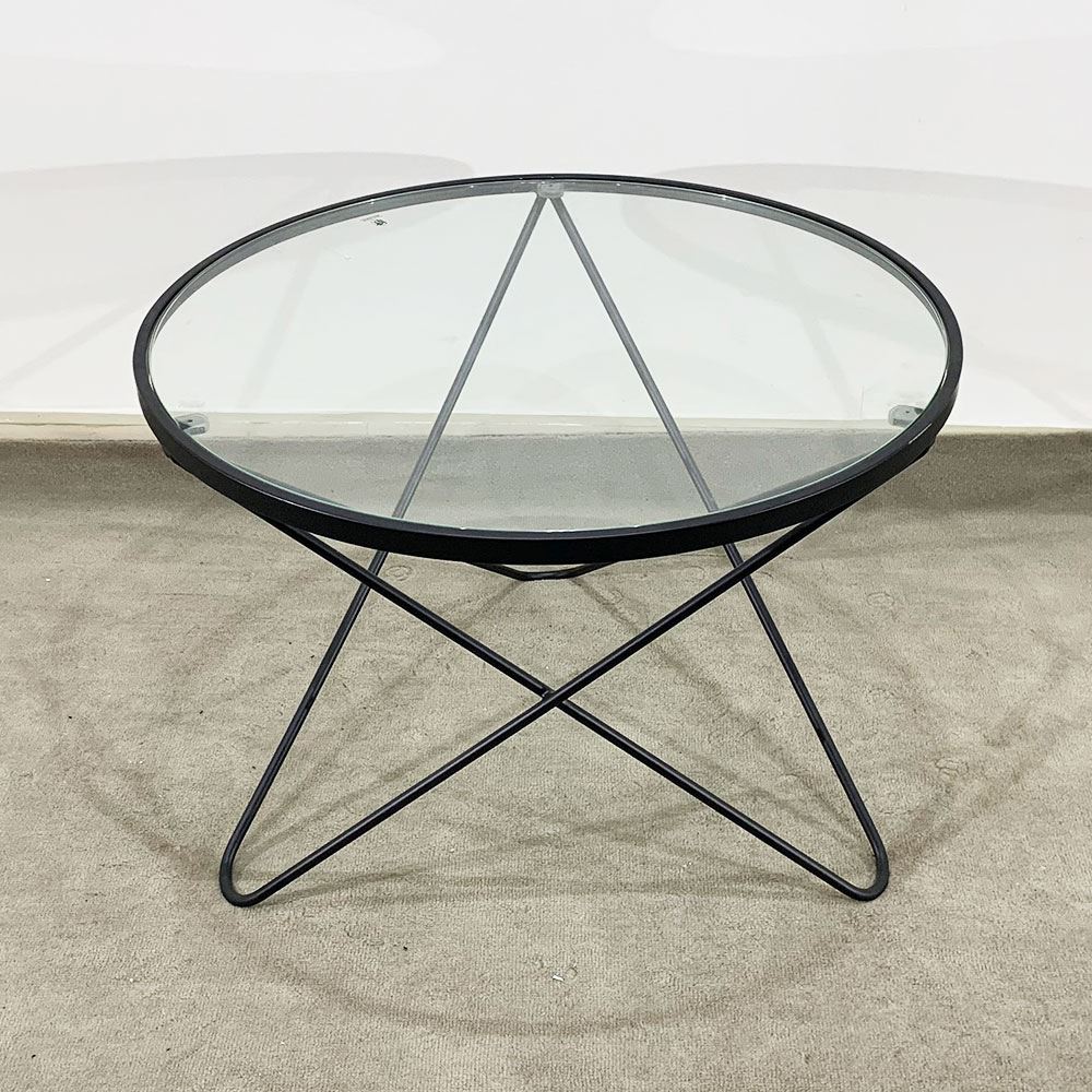 Bàn Sofa 3 chân chữ V mặt kính sơn khung đen