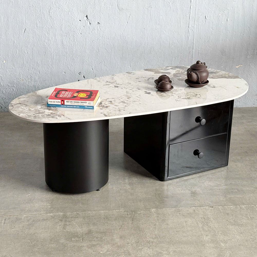 - Chất liệu: Đá ceramic cao cấp, dày 12mm, chống trầy xước - Chân sắt sơn tĩnh điện