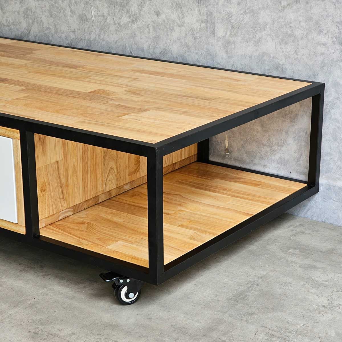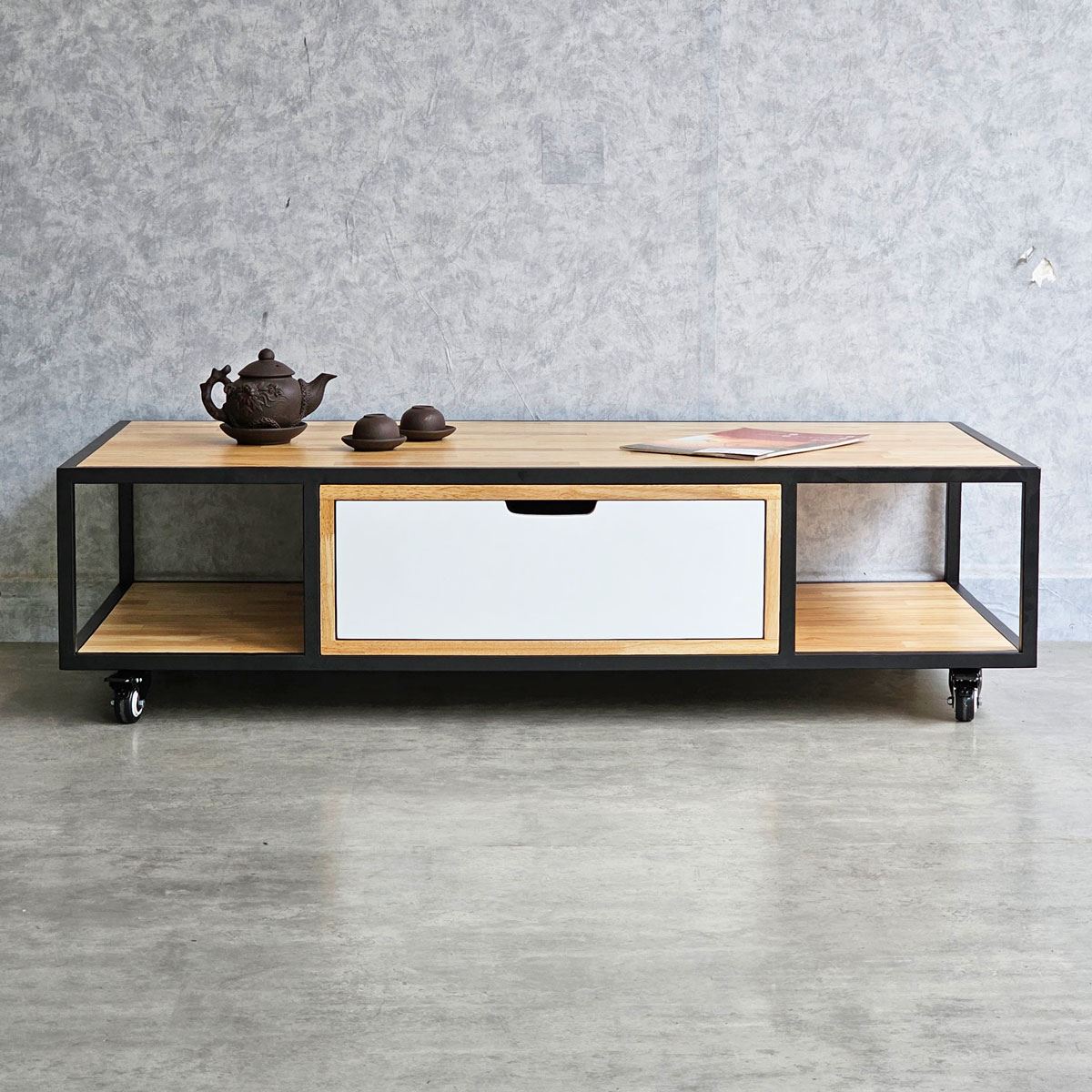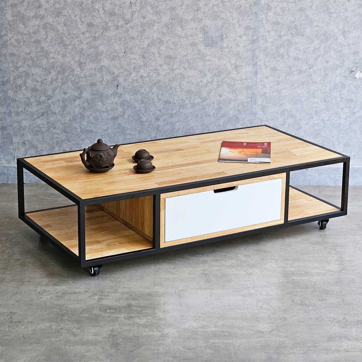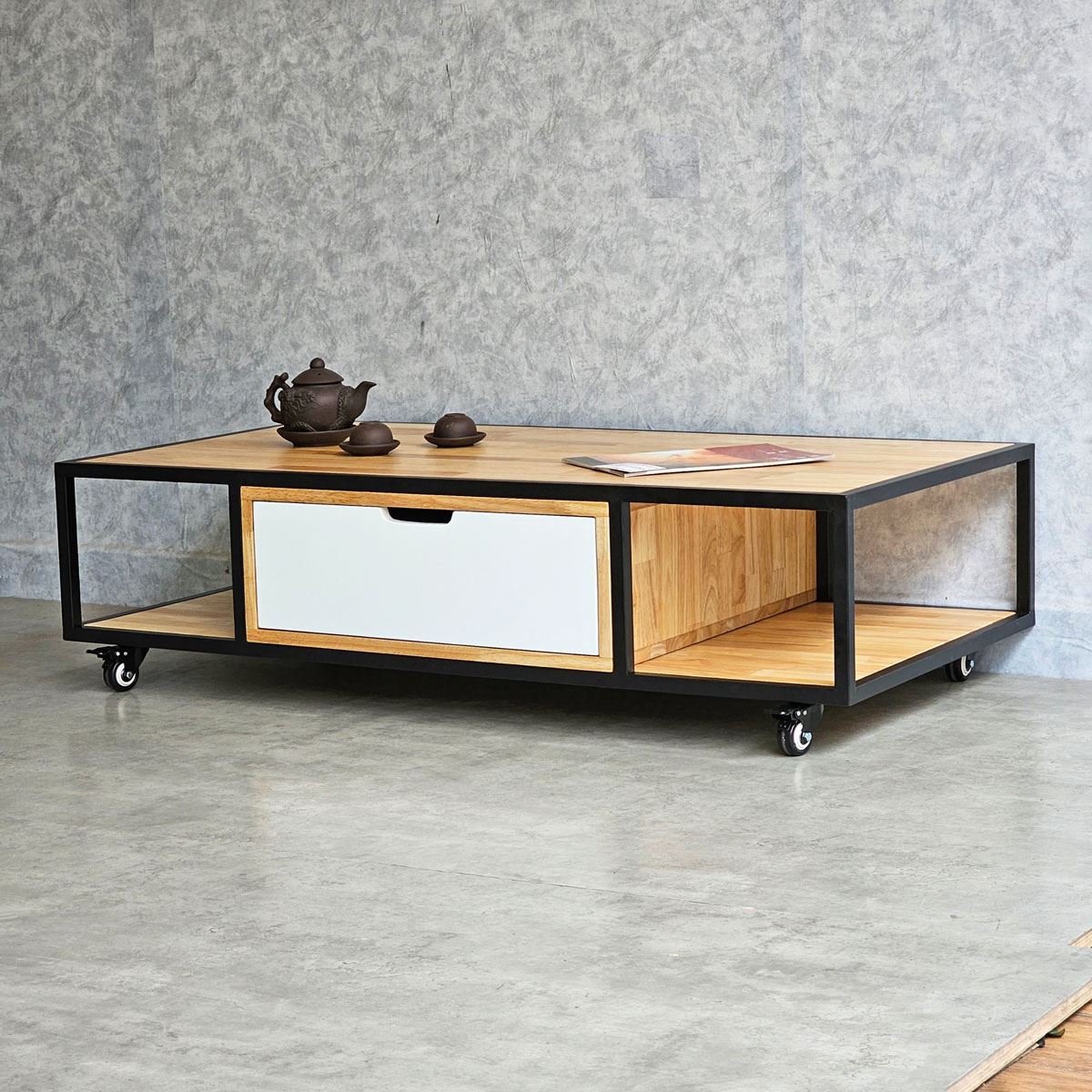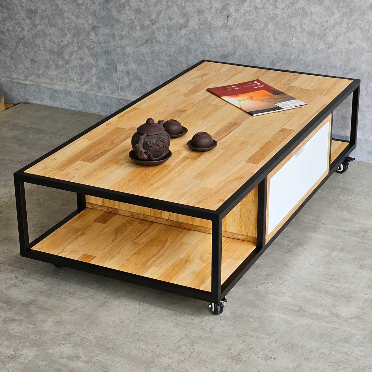 Bàn sofa di động còn được trang bị một ngăn kéo lớn ở giữa, giúp bạn có thêm không gian lưu trữ đồ đạc. Ngăn kéo có kích thước rộng rãi, có thể đựng được nhiều vật dụng khác nhau như sách vở, tạp chí, điều khiển tivi, v.v.