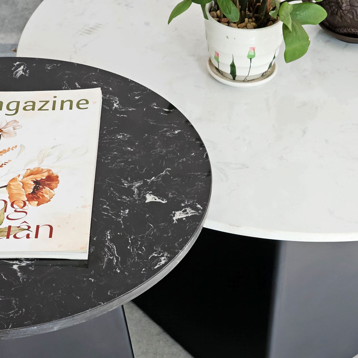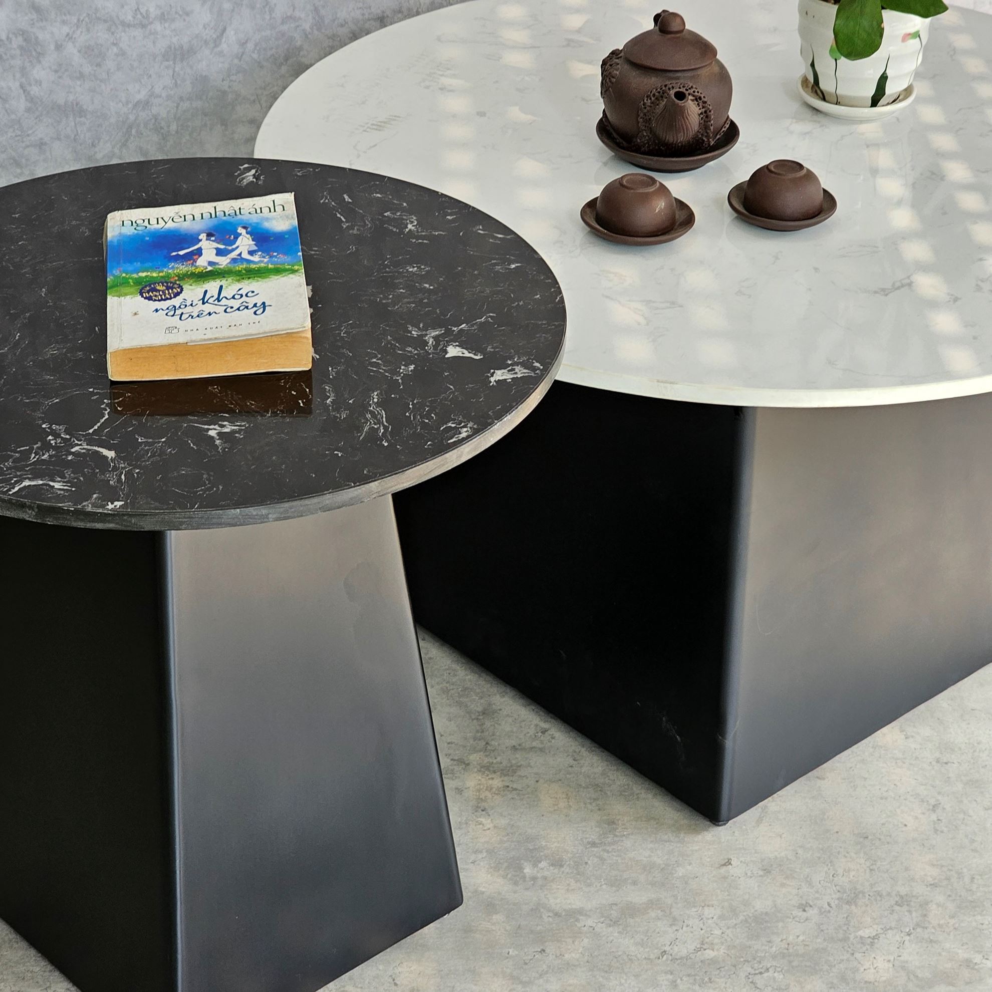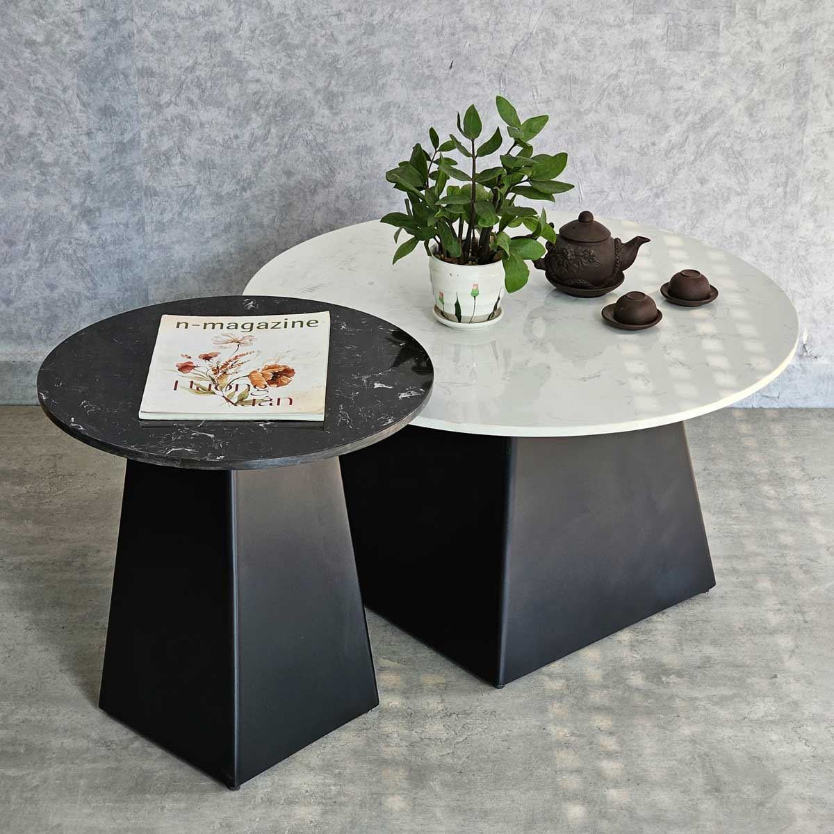 Bàn sofa đôi mặt đá ceramic chân sắt TT68241 gồm 2 bàn sofa lớn đường kính 70cm và bàn nhỏ đường kính 50cm. Mặt bàn đá Ceramic sử dụng công nghệ cao nên có những ưu điểm vượt trội như độ bền cao, khả năng chịu nhiệt tốt cũng hạn như trầy xước trong quá trình sử dụng. Kết hợp mặt bàn đá ceramic là chân sắt được gia công cẩn thận, tỉ mỉ có độ hoàn thiện cao sắt sơn tĩnh điện chất lượng cao màu sắc đẹp mắt và bền bỉ theo thời gian. Bộ bàn sofa TT68241 toát lên vẻ đẹp sang trọng giúp nâng tầm giá trị cho không gian sử dụng nên được nhiều khách hàng yêu thích