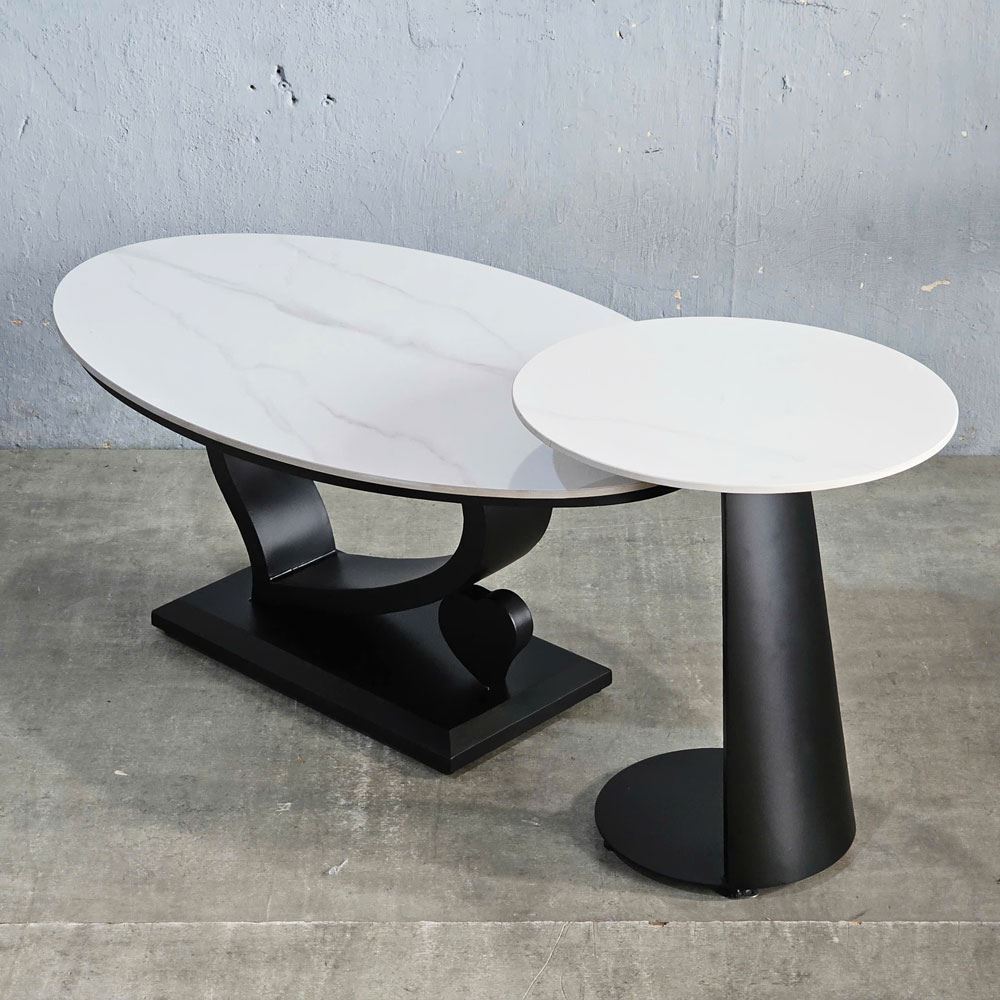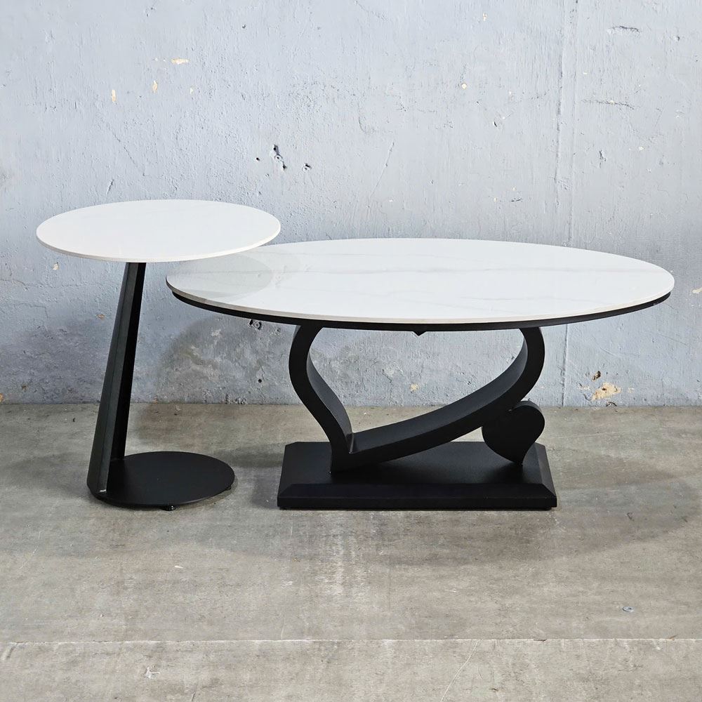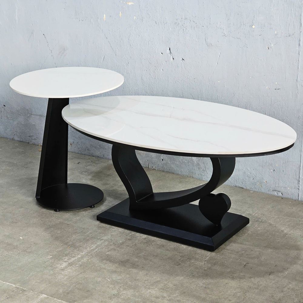 Bàn sofa đôi TT68287 được thiết kế độc đáo từ hai bàn ghép đôi, trong đó gồm bàn sofa chính có mặt bàn hình elip và bàn sofa phụ có mặt bàn hình tròn. Khi kết hợp hai bàn trà hình elip và hình tròn sẽ tạo nên điểm nhấn ấn tượng cho không gian phòng khách. Chân sắt của bàn sofa được tạo dánh hình trái tim, vừa mang tính thẩm mỹ cao vừa tạo sự chắc chắn cho sản phẩm.