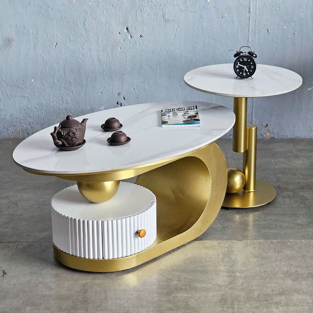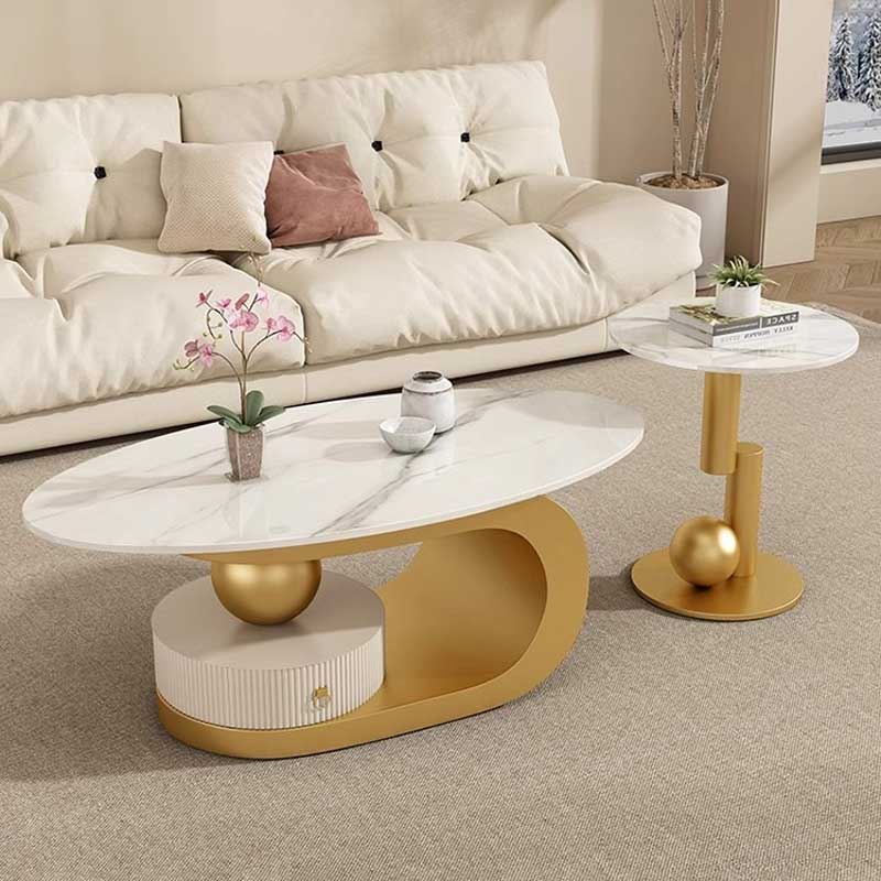 Bàn sofa đôi TT68288 bao gồm hai bàn riêng biệt: một bàn chính hình elip và một bàn phụ hình tròn, mang đến sự kết hợp hài hòa và đầy sáng tạo. Thiết kế độc đáo này giúp tạo điểm nhấn ấn tượng cho không gian phòng khách, đồng thời mang lại sự tiện lợi khi sử dụng.