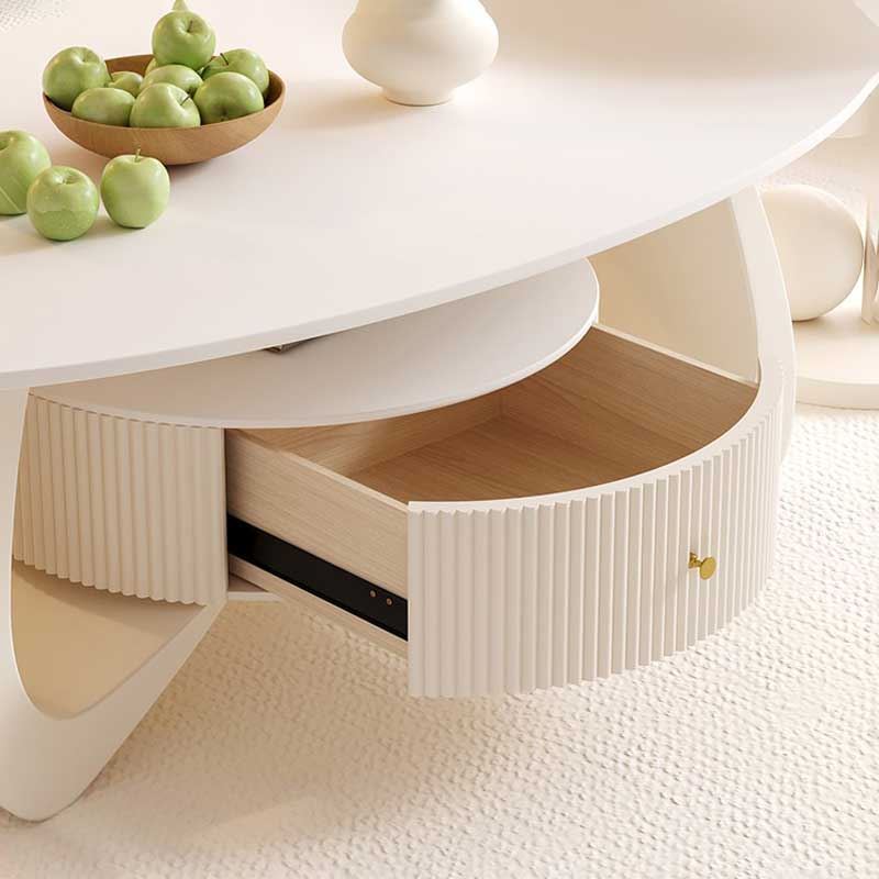 Bàn sofa chính có kích thước rộng rãi, thích hợp để bày biện đồ uống, thức ăn và các vật dụng cần thiết khi tiếp khách. Bên dưới bàn chính có thêm 1 ngăn kéo để đồ, rất tiện lợi cho việc lưu trữ những món đồ nhỏ gọn. Bàn phụ có kích thước nhỏ gọn hơn, có thể sử dụng để đặt đèn, lọ hoa hoặc các vật dụng trang trí khác.