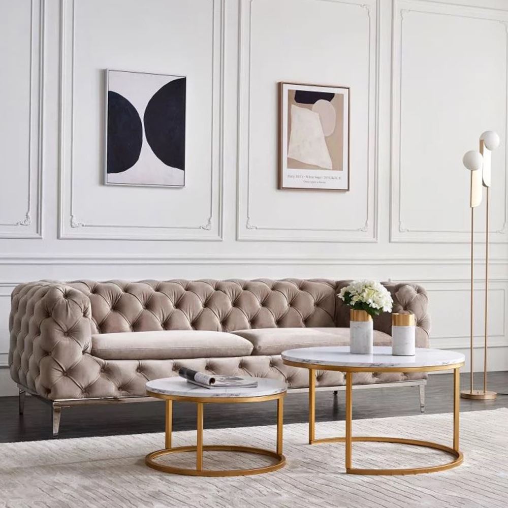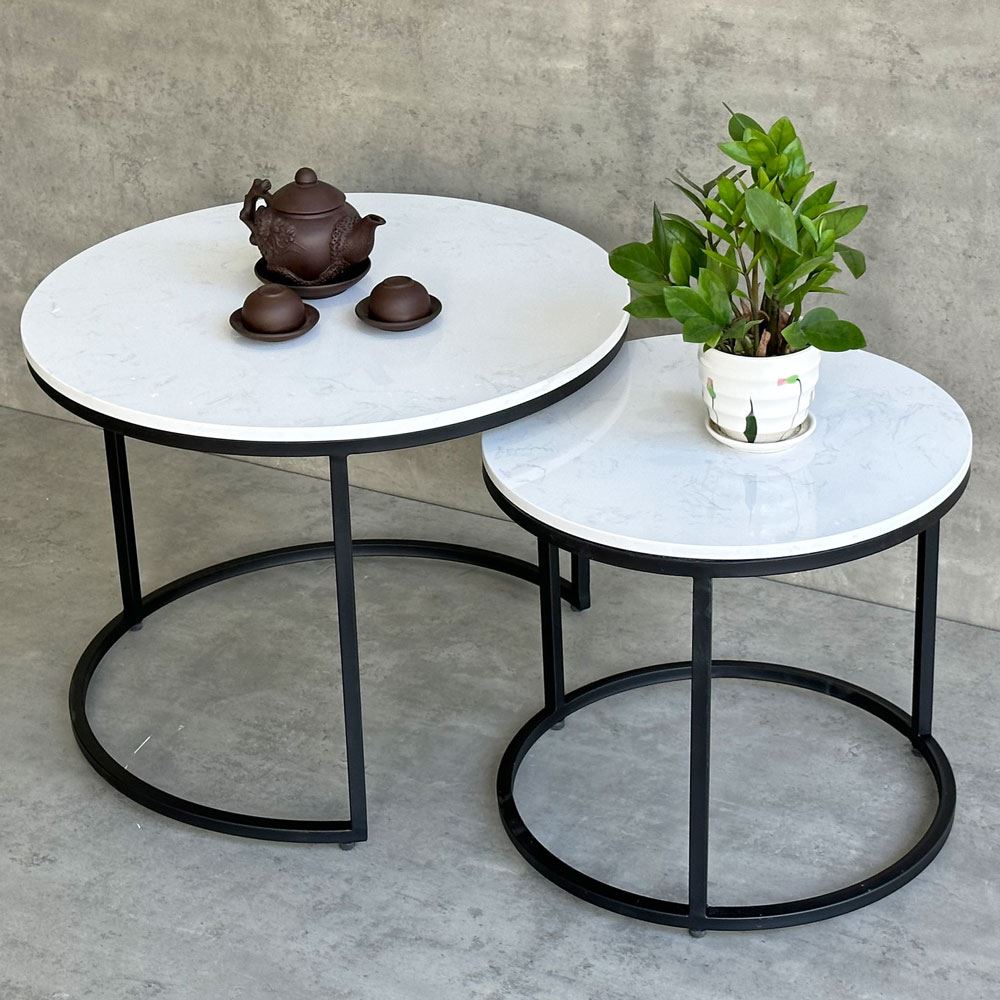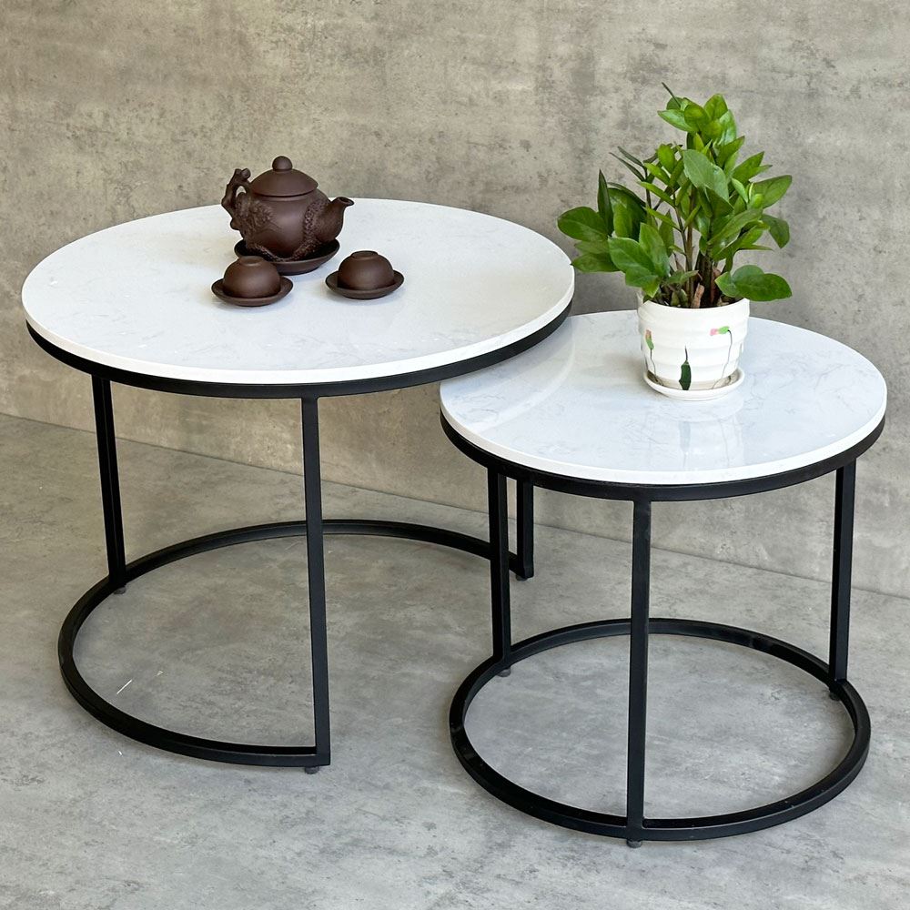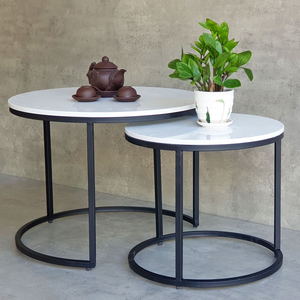 Bàn sofa đôi mặt đá khung sắt TT68211 gồm 2 bàn với 2 kích thước lớn nhỏ có thể lồng vào nhau, phù hợp sử dụng trong phòng khách gia đình. Mặt bàn được làm từ đá vân mây không những mang tính thẩm mỹ cao mà còn chịu được những va chạm hàng ngày, hạn chế tối đa vết trầy xước, độ bền cao và dễ dàng vệ sinh khi dính nước. Kết hợp với mặt bàn là khung chân sắt chắc chắn, có khả năng chịu lực tốt, bề mặt sắt sơn nhiều màu đẹp mắt.