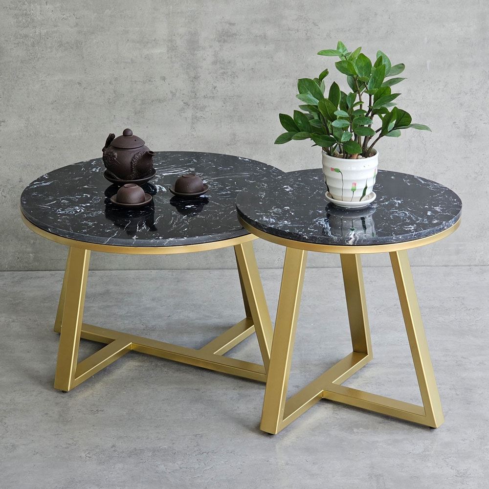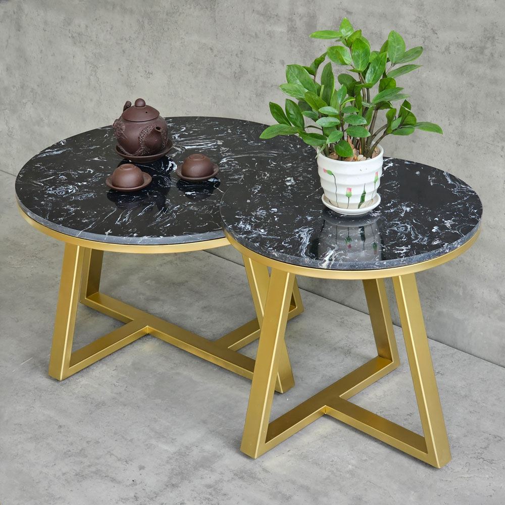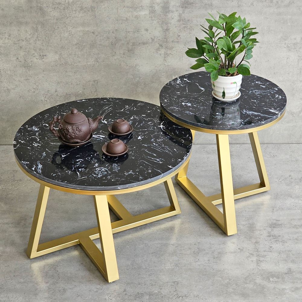Bàn sofa đôi mặt đá khung sắt TT68213 với phần mặt bàn được làm từ đá vân mây không những mang tính thẩm mỹ cao mà còn chịu được những va chạm hàng ngày, hạn chế tối đa vết trầy xước, độ bền cao và dễ dàng vệ sinh khi dính nước. Kết hợp với mặt bàn là khung chân sắt chắc chắn, có khả năng chịu lực tốt, bề mặt sắt nhiều màu đẹp mắt.