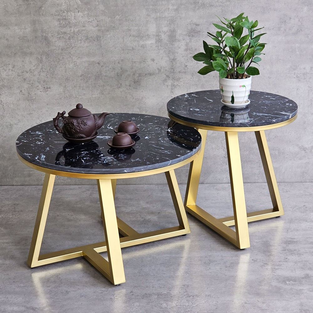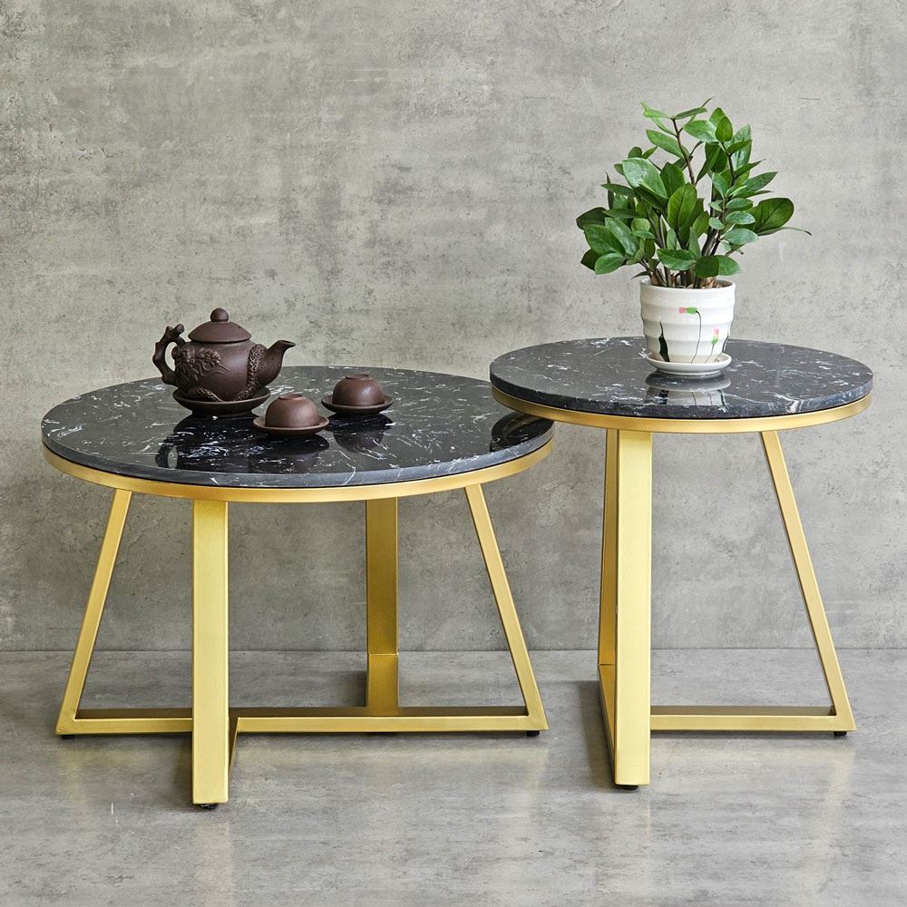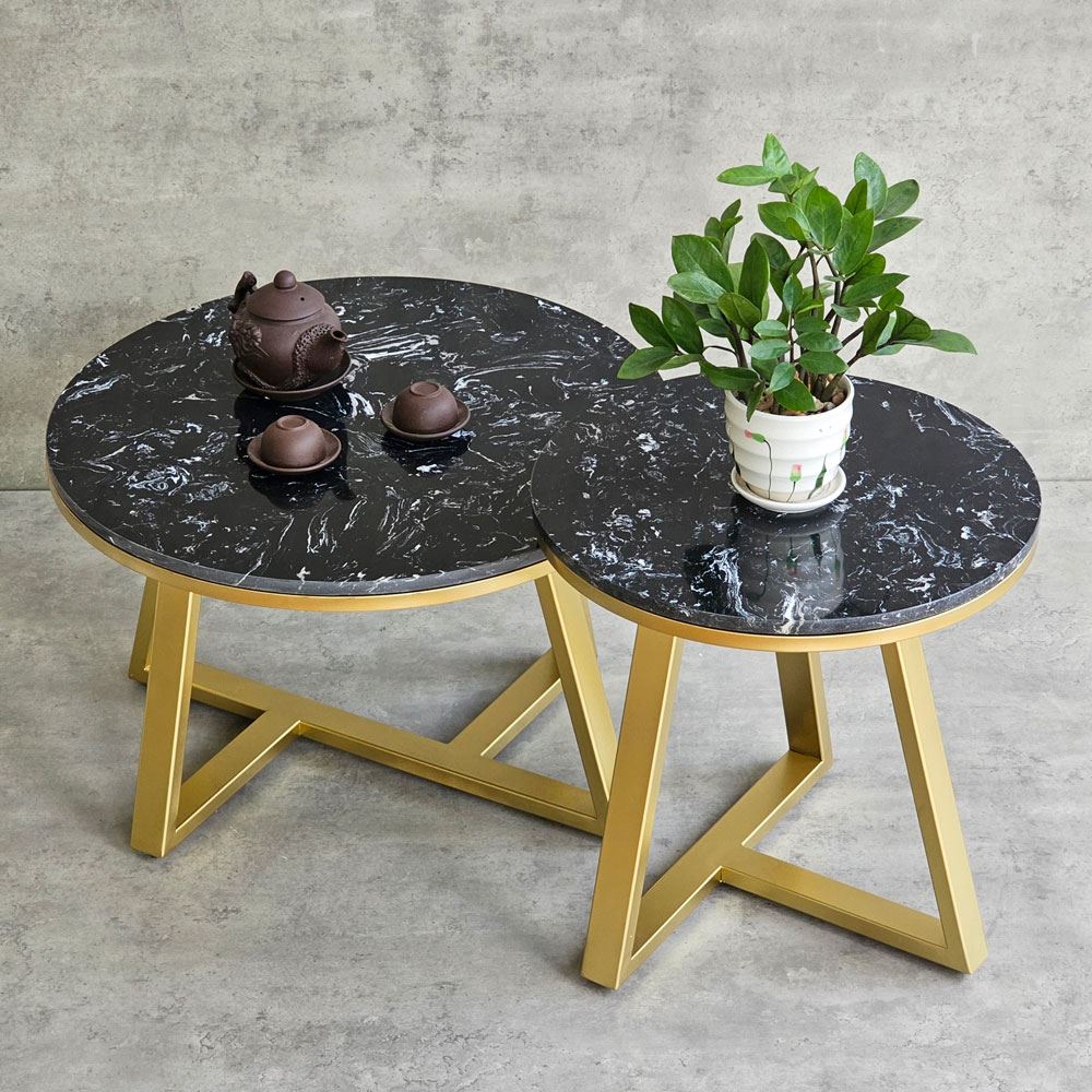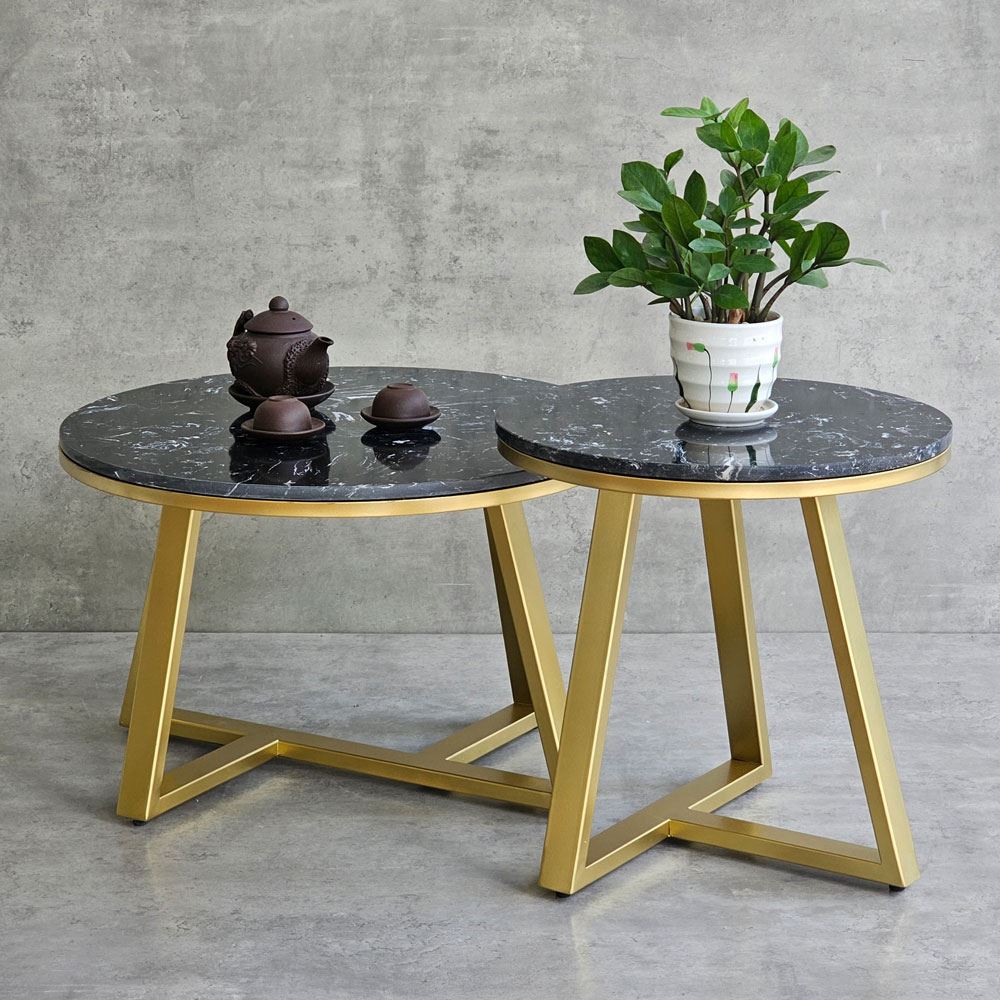 Bàn sofa đôi mặt đá khung sắt TT68213 với phần mặt bàn được làm từ đá vân mây không những mang tính thẩm mỹ cao mà còn chịu được những va chạm hàng ngày, hạn chế tối đa vết trầy xước, độ bền cao và dễ dàng vệ sinh khi dính nước. Kết hợp với mặt bàn là khung chân sắt chắc chắn, có khả năng chịu lực tốt, bề mặt sắt nhiều màu đẹp mắt.