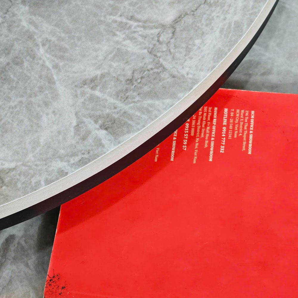 - Chất liệu: Đá ceramic cao cấp, dày 12mm, chống trầy xước - Chân sắt sơn tĩnh điện