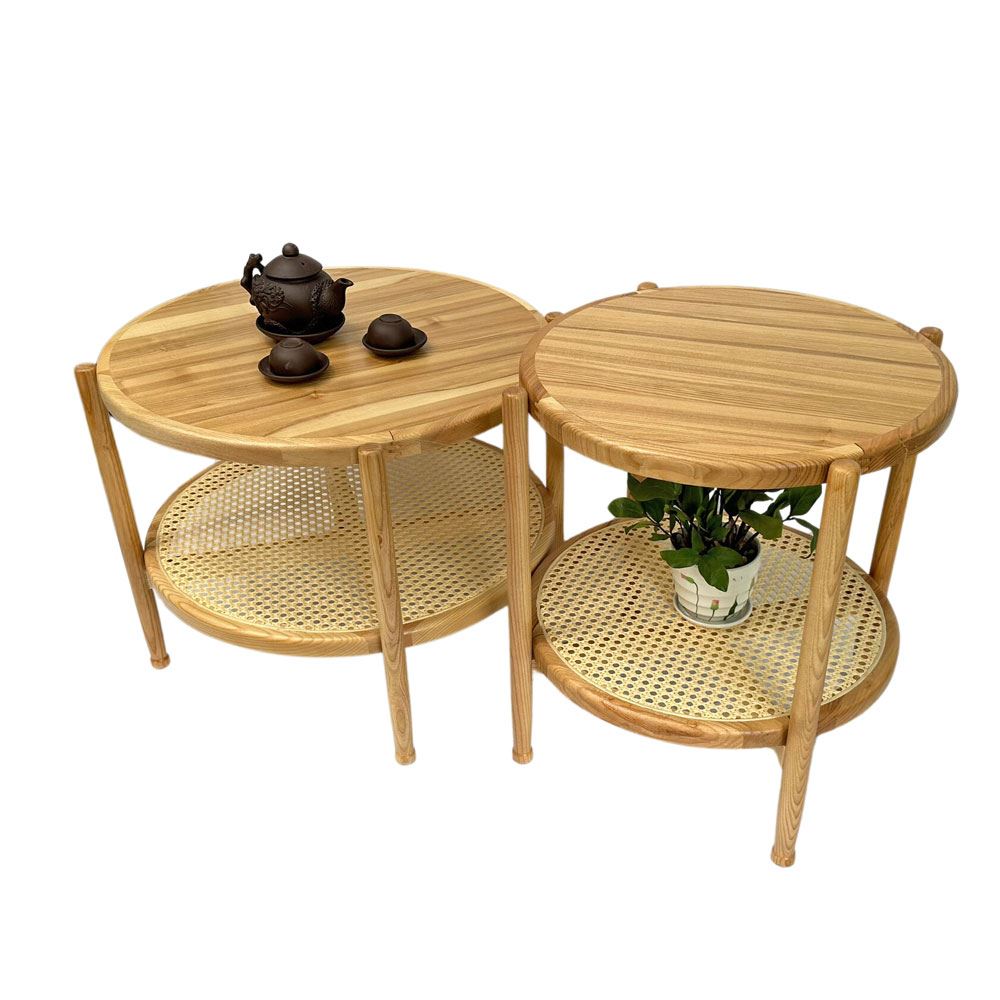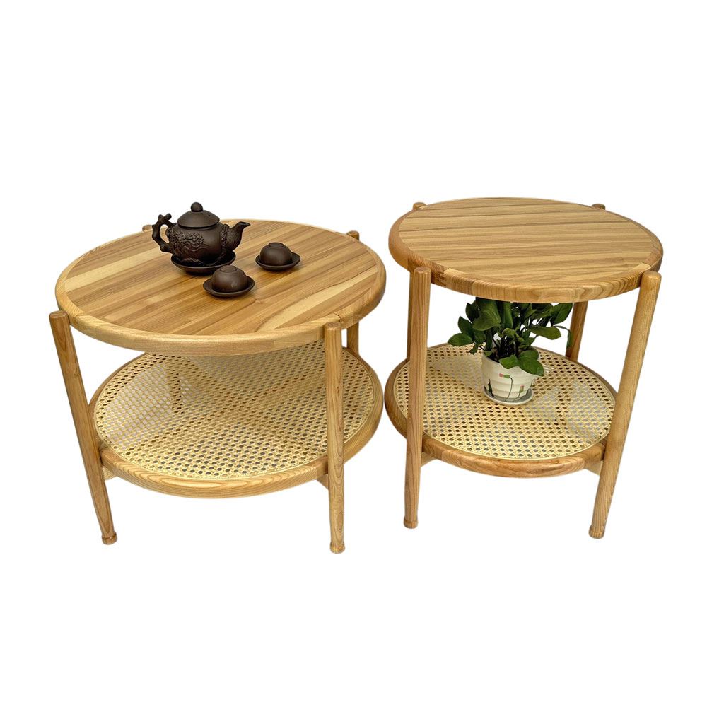 Với bộ đôi bàn tròn thanh lịch và sang trọng, với các ngăn kệ tiện ích giúp bạn sắp xếp lại không gian phòng khách. Tông màu nhẹ nhàng cùng đường nét vân gỗ sồi rõ nét giúp cho chiếc bàn sofa TT68244 trở thành tâm điểm của sự chú ý. Được làm từ chất liệu gỗ sồi cao cấp, sở hữu vân gỗ tuyển chọn đẹp mắt, bên dưới được làm bằng lưới đan mây thủ công vô cùng tinh tế. Với chiếc bàn sofa lý tưởng này, bạn tha hồ thể hiện cá tính riêng của mình, cũng là nơi trò chuyện thoải mái với bạn bè mỗi khi tới thăm đặt trong phòng khách nhà mình.