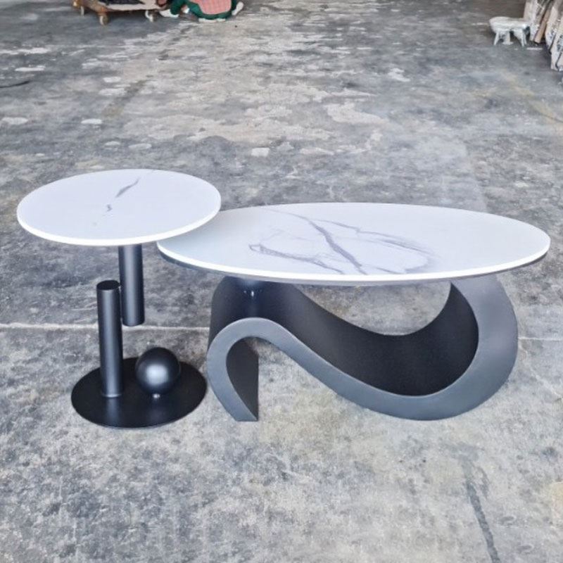 Bàn sofa đôi mặt đá ceramic TT68247 gồm 2 bàn sofa lớn đường kính 70cm và bàn nhỏ đường kính 50cm. Mặt bàn đá Ceramic sử dụng công nghệ cao nên có những ưu điểm vượt trội như độ bền cao, khả năng chịu nhiệt tốt cũng hạn như trầy xước trong quá trình sử dụng. Kết hợp mặt bàn đá ceramic là chân sắt được gia công cẩn thận, tỉ mỉ có độ hoàn thiện cao sắt sơn tĩnh điện chất lượng cao màu sắc đẹp mắt và bền bỉ theo thời gian. Bộ bàn sofa TT68247 toát lên vẻ đẹp sang trọng giúp nâng tầm giá trị cho không gian sử dụng nên được nhiều khách hàng yêu thích