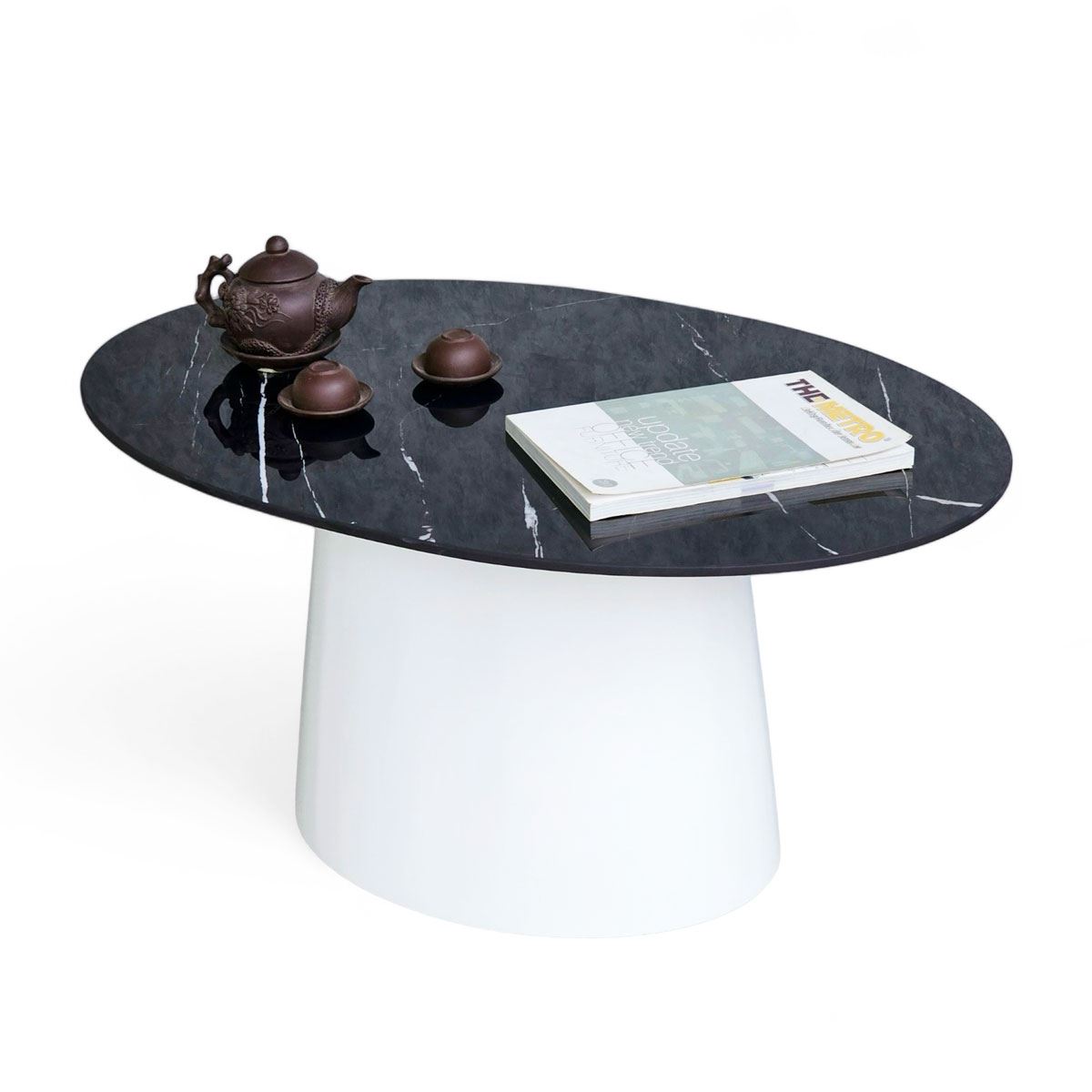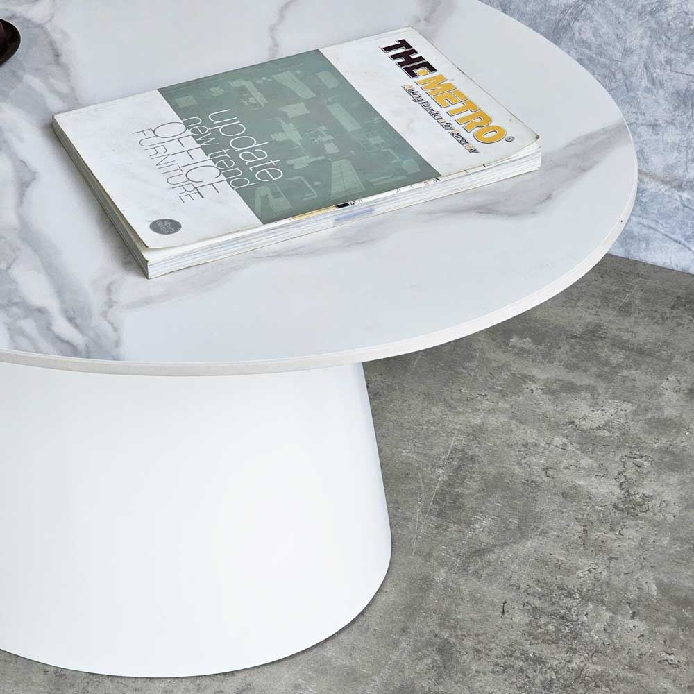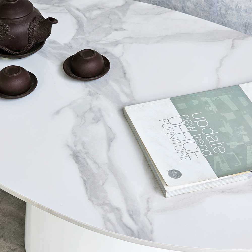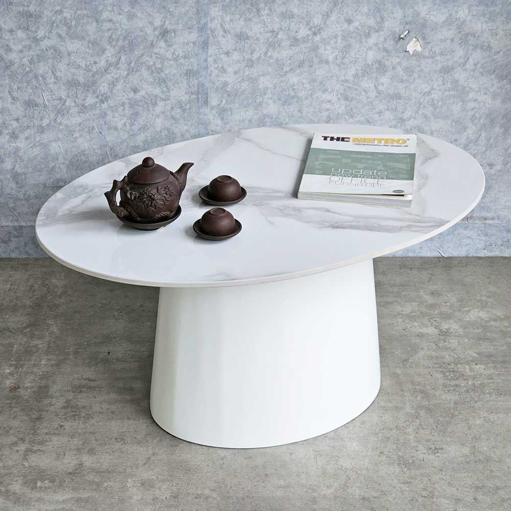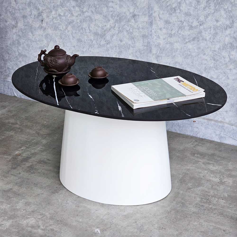 Mặt bàn hình elip giúp tối ưu hóa diện tích sử dụng, mang đến không gian rộng rãi để bạn có thể bày trí đồ vật hoặc tiếp khách
