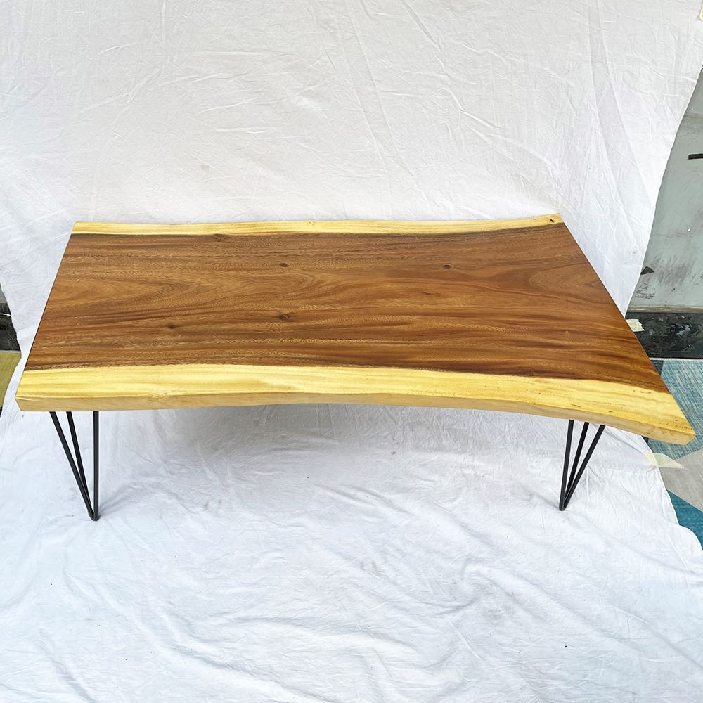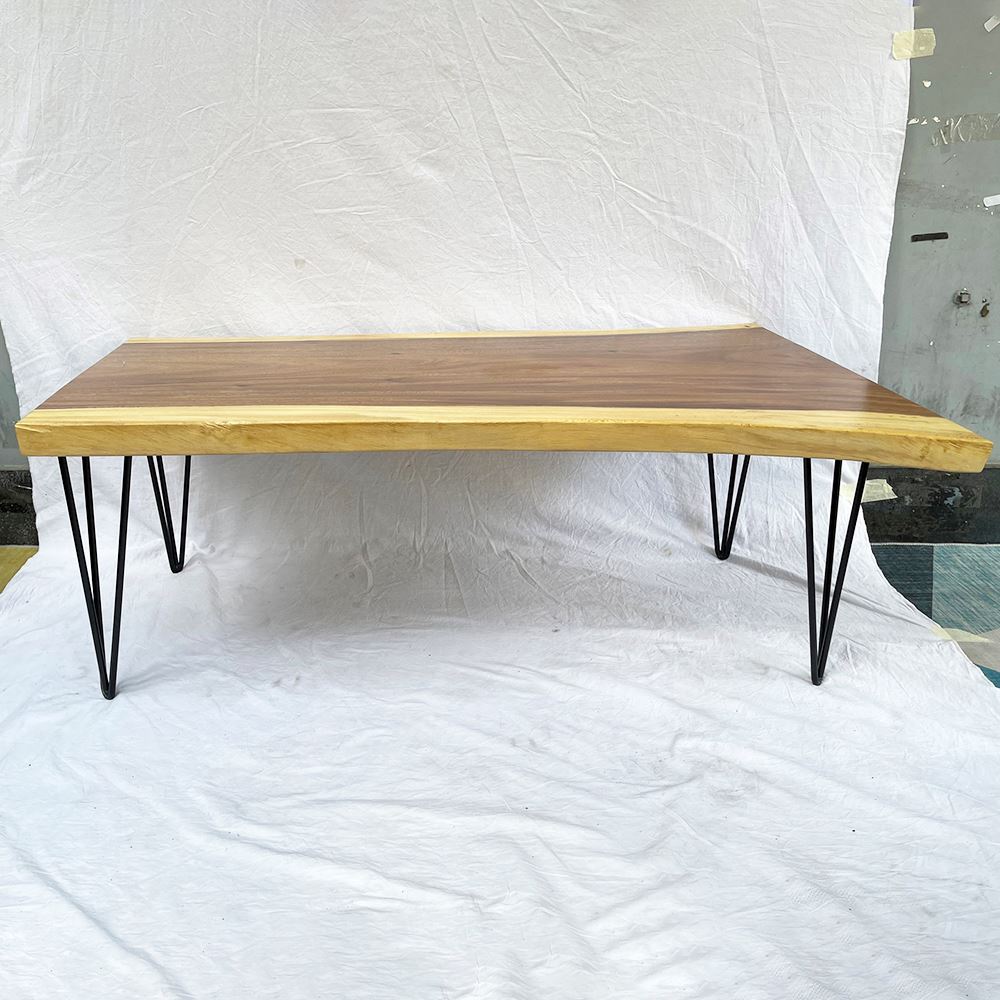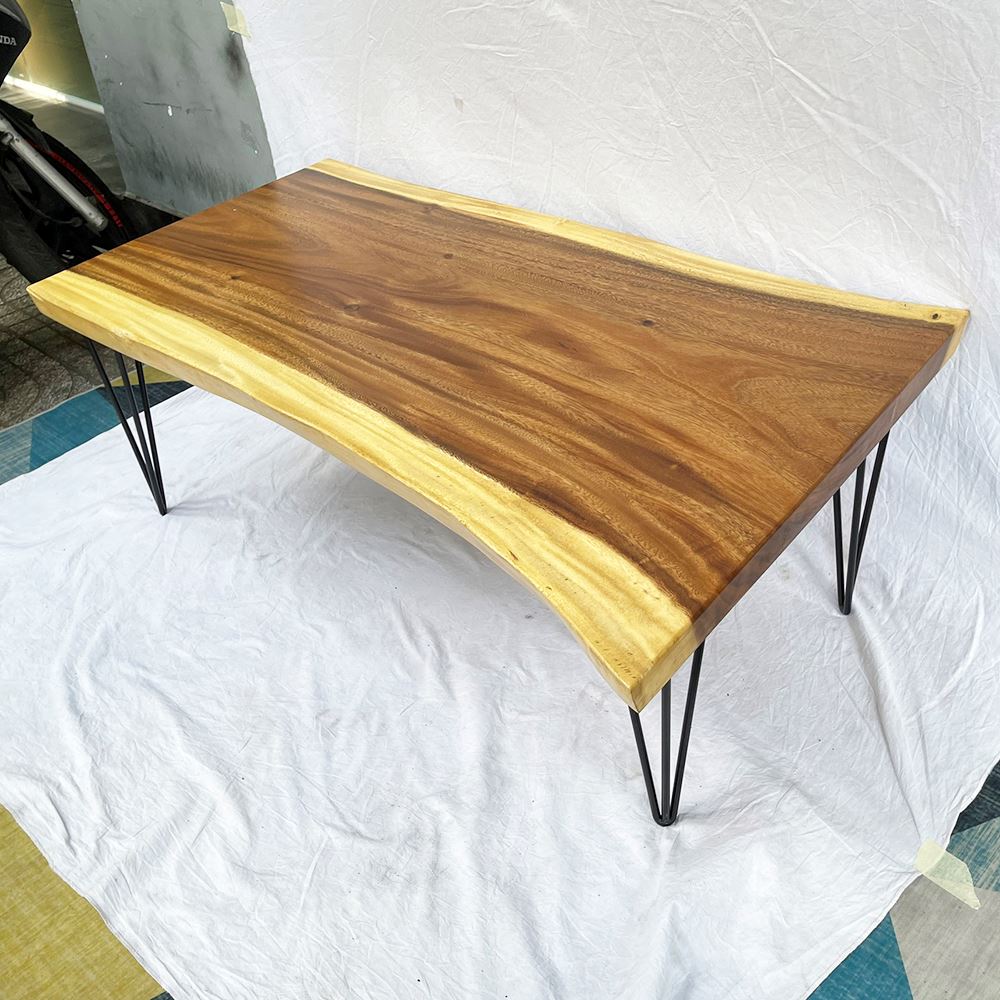Bàn sofa BMT065 có thiết kế ấn tượng, độc đáo với mặt bàn là GỖ ME TÂY NGUYÊN TẤM, không ghép hay chắp vá, giữ nguyên được màu sắc và vân gỗ một cách tự nhiên nhất. Kết hợp mặt bàn gỗ là chân sắt hairpin kiểu dáng thanh mảnh nhưng sở hữu khả năng chịu lực tốt nhờ được uốn dựa trên kỹ thuật tiên tiến giúp chúng đạt tới độ chuẩn xác cao.