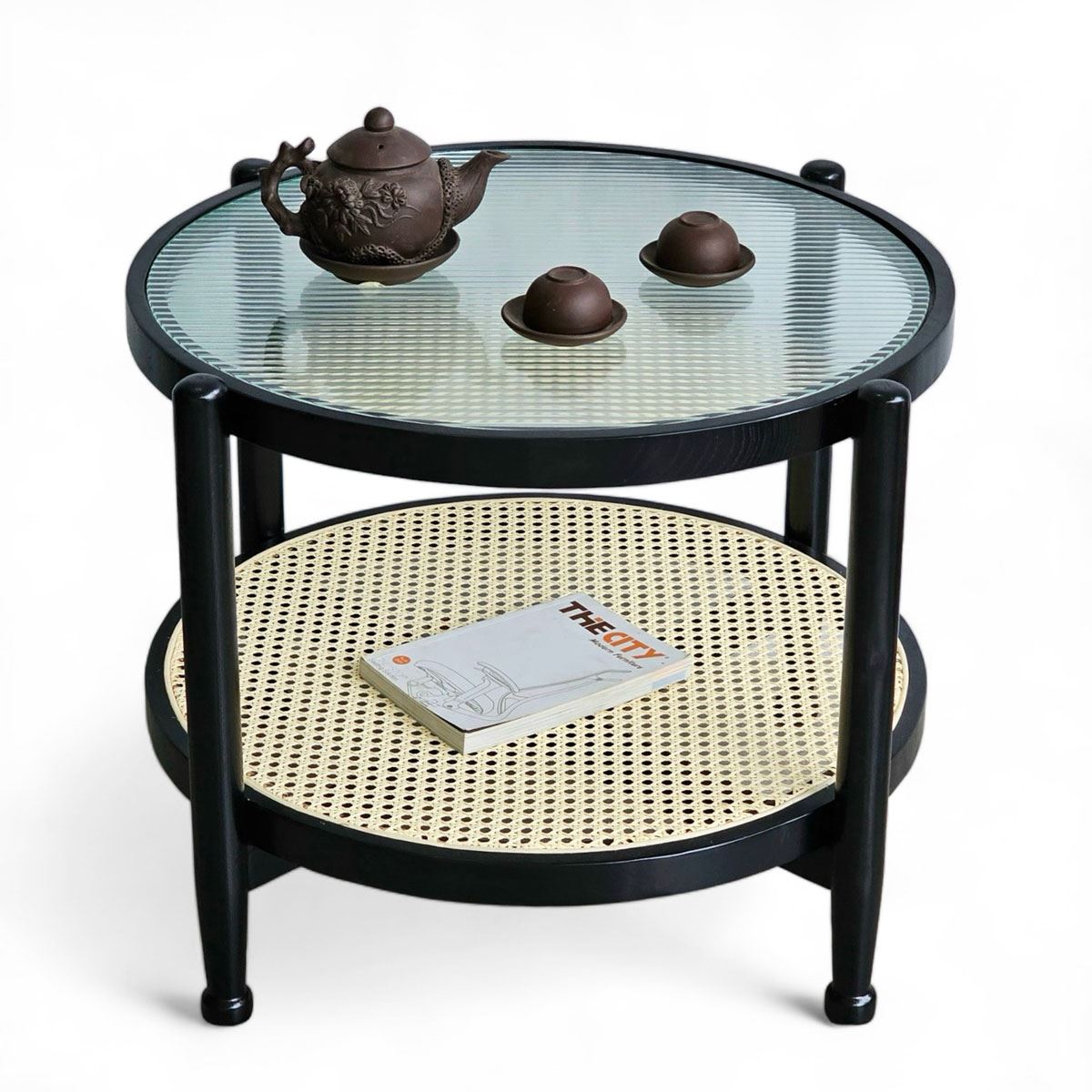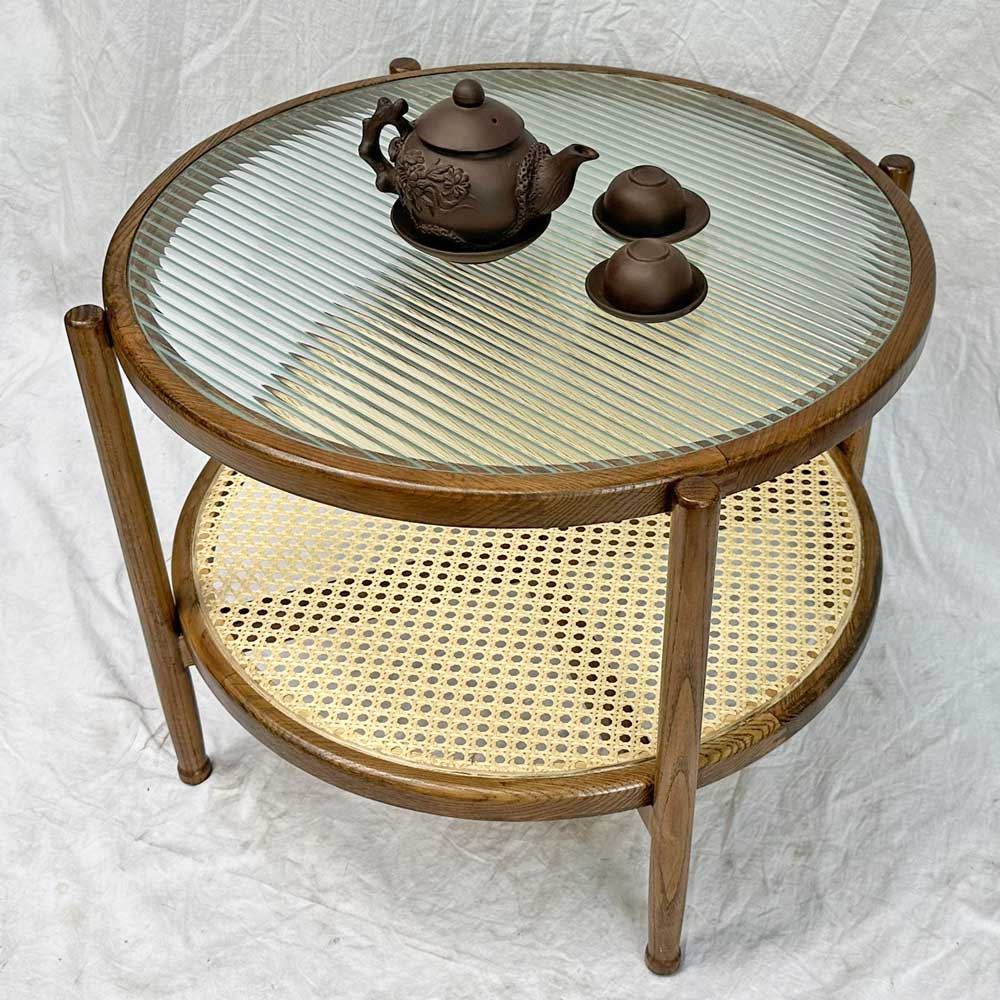 Một chiếc bàn tròn thanh lịch và sang trọng, với các ngăn kệ tiện ích giúp bạn sắp xếp lại không gian phòng khách. Tông màu nhẹ nhàng cùng đường nét vân gỗ sồi rõ nét giúp cho chiếc bàn sofa TT68243 trở thành tâm điểm của sự chú ý. Bàn sofa TT68243 được làm từ chất liệu gỗ sồi cao cấp, mặt kinh hiệu ứng bắt mắt, vân gỗ tuyển chọn đẹp mắt, bên dưới được làm bằng lưới đan mây thủ công vô cùng tinh tế. Với chiếc bàn sofa lý tưởng này, bạn tha hồ thể hiện cá tính riêng của mình, cũng là nơi trò chuyện thoải mái với bạn bè mỗi khi tới thăm đặt trong phòng khách nhà mình.