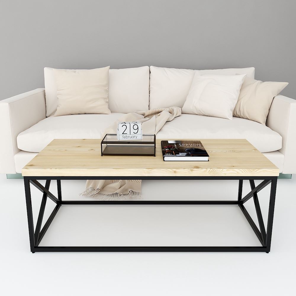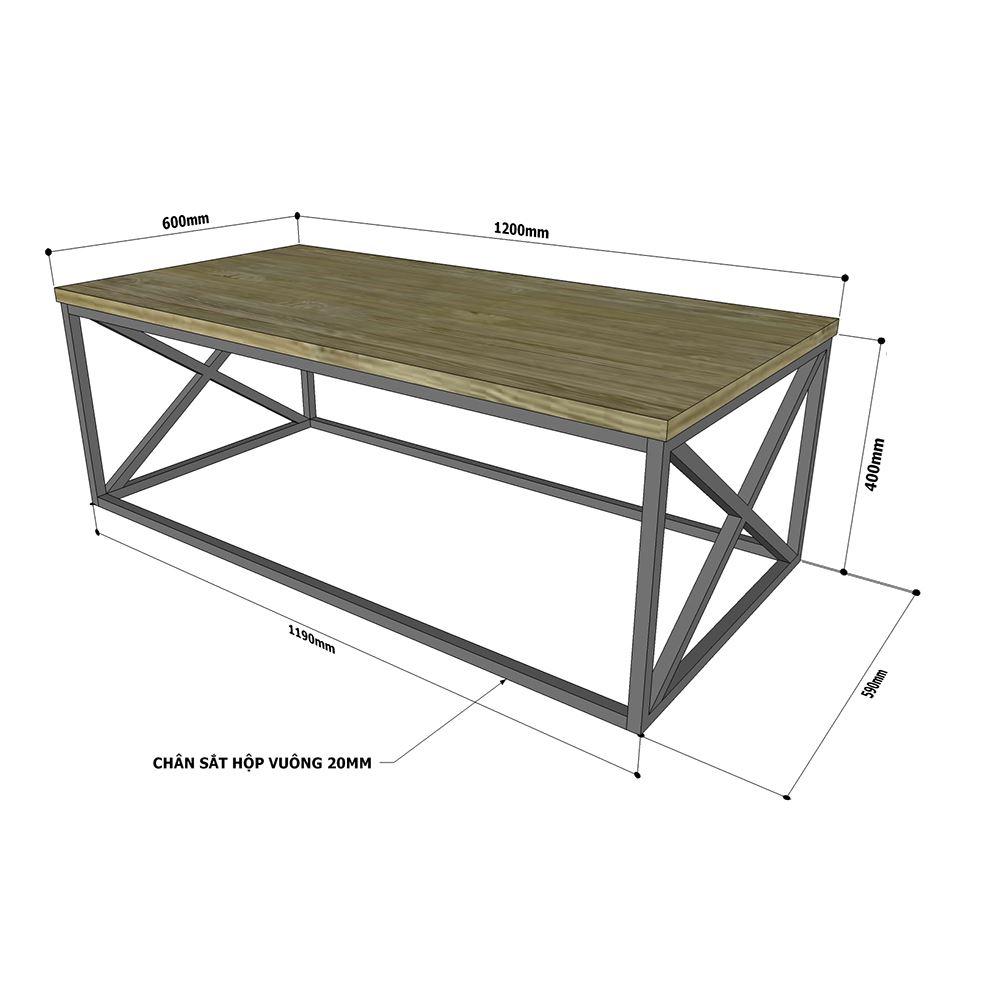 Bàn sofa gỗ thông khung sắt sơn tĩnh điện