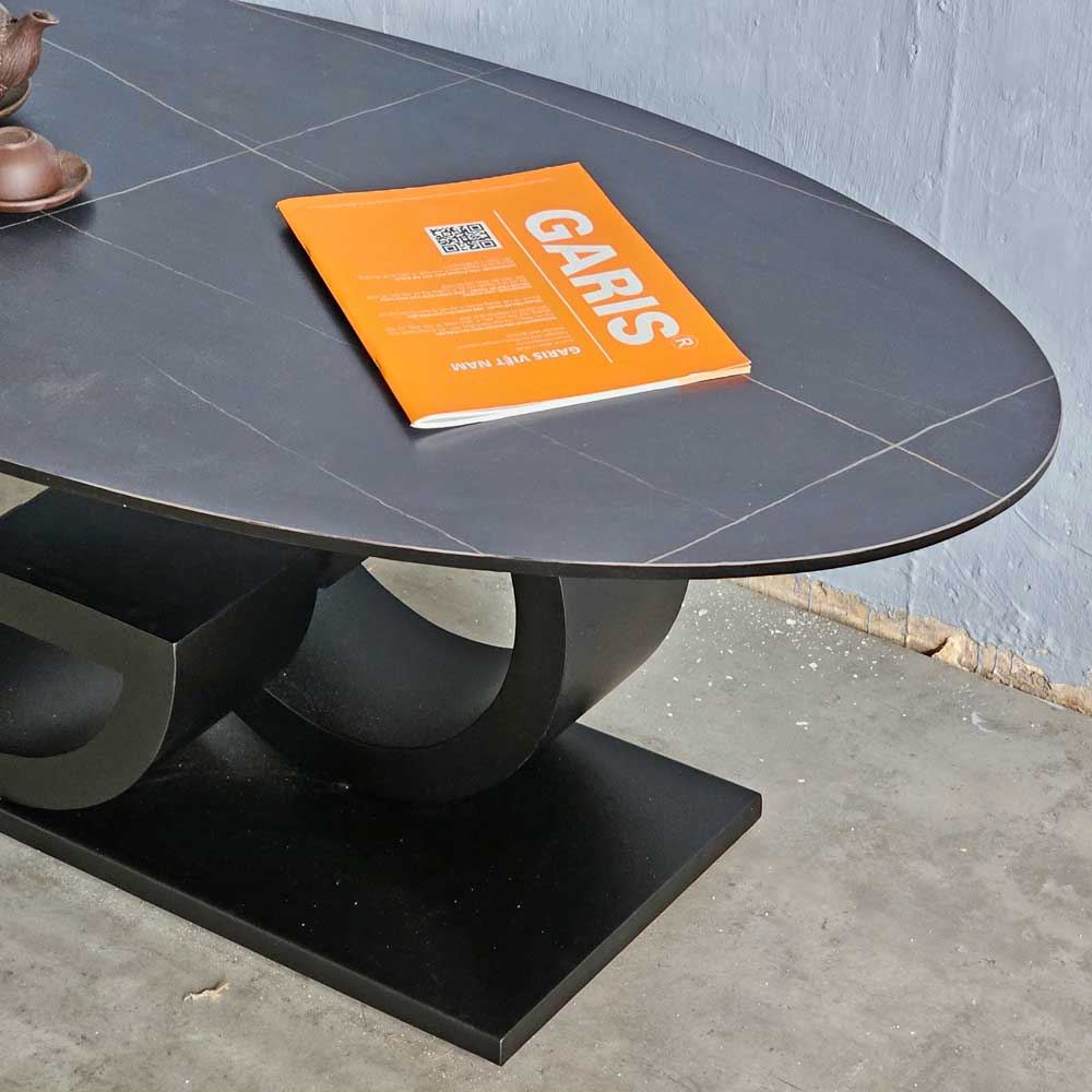 - Chất liệu: Đá ceramic cao cấp, dày 12mm, chống trầy xước - Chân sắt sơn tĩnh điện