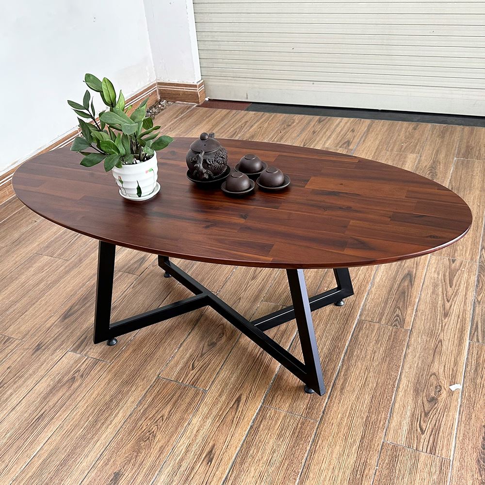 Bàn Sofa hình Elip mặt gỗ Tràm chân sắt TT68226 với thiết kế mặt bàn hình Elip rất lạ mắt, gỗ tràm 25mm tiêu chuẩn AA được xử lý PU hoàn thiện cho bề mặt sản phẩm rất đẹp mắt, chống nước tuyệt đối rất dễ dàng vệ sinh kết hợp khung chân sắt chắc chắn, bề mặt sắt phủ lớp sơn tĩnh điện chất lượng cao bền bỉ theo thời gian.