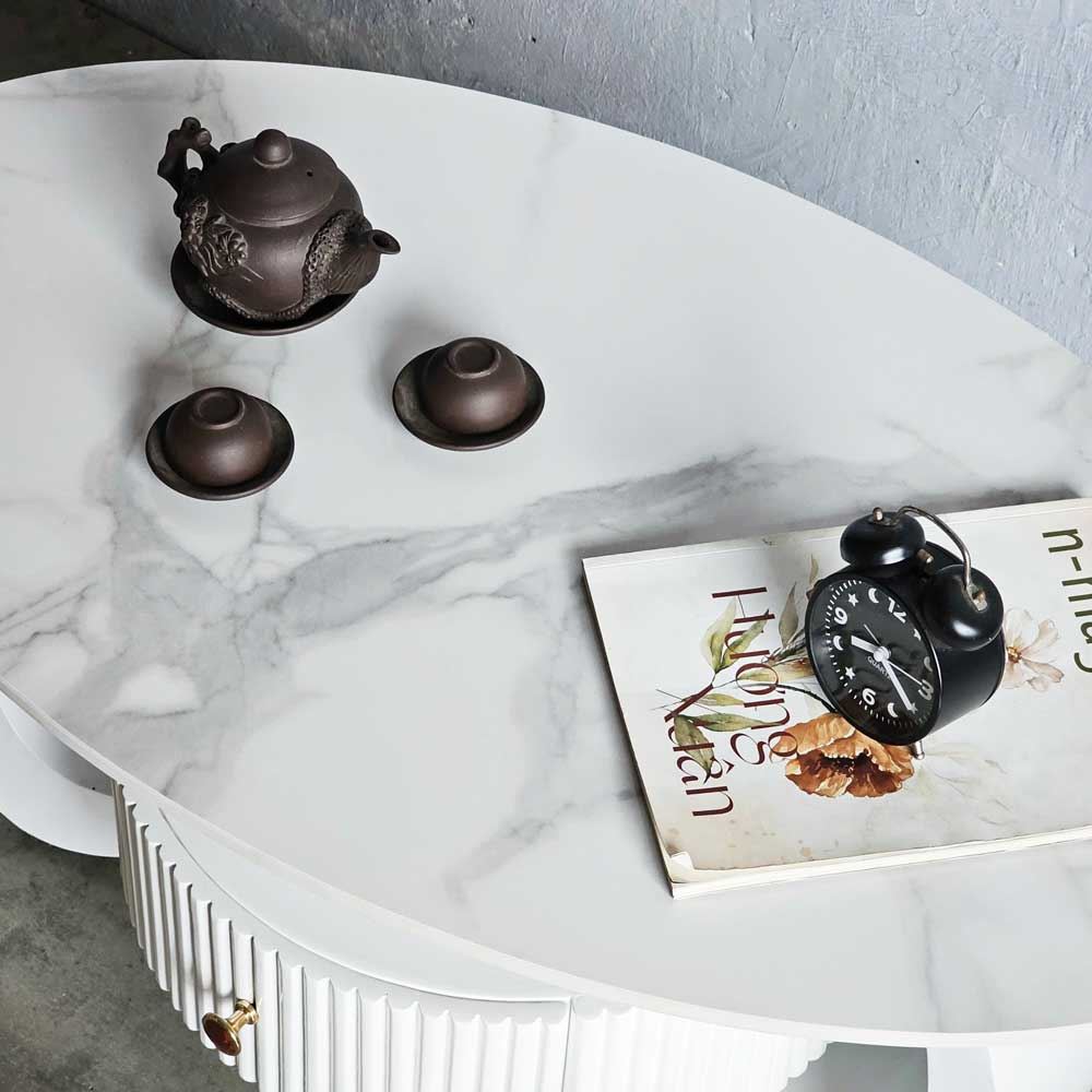 - Chất liệu: Đá ceramic cao cấp, dày 12mm, chống trầy xước - Chân sắt sơn tĩnh điện