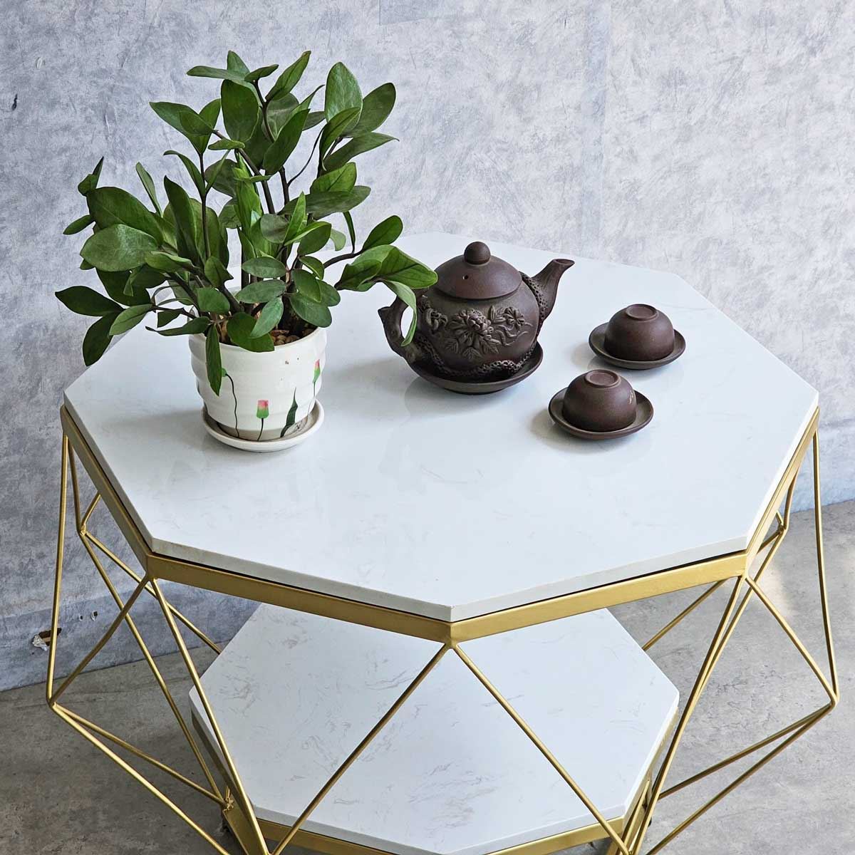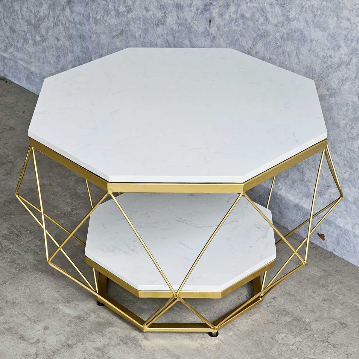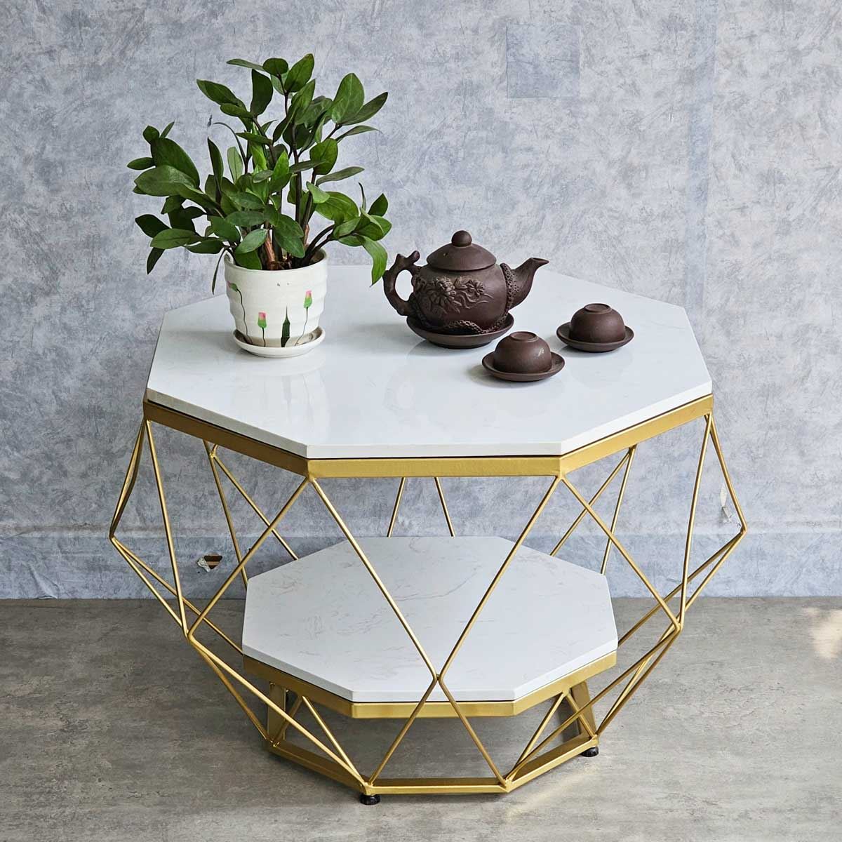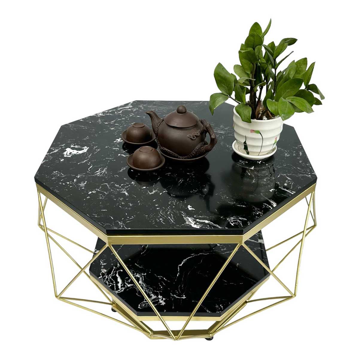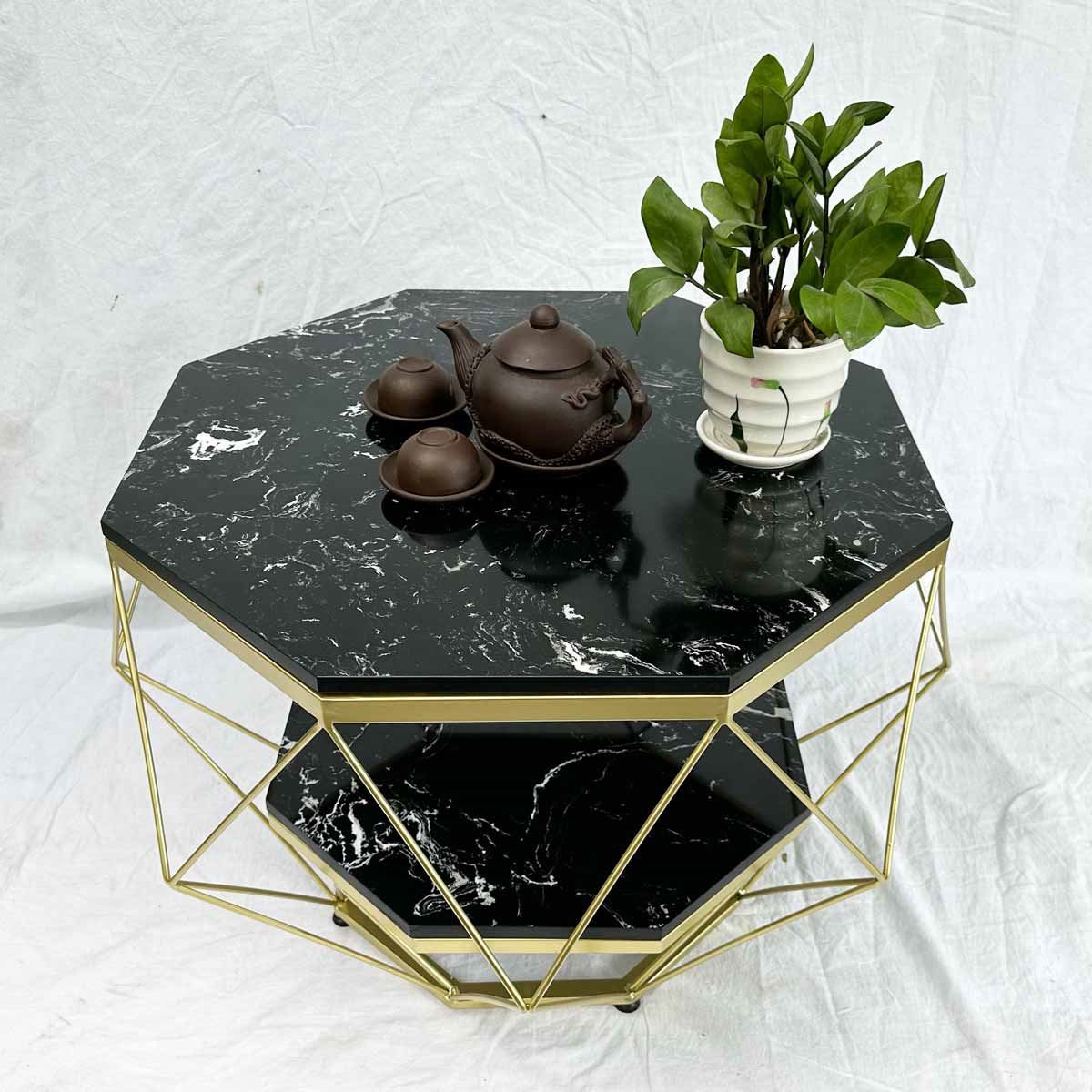 Bàn sofa kim cương 2 tầng mặt đá TT68190 thiết kế như một viên kim cương với mặt bàn 8 cạnh ( bát giác ) đẹp mắt chất liệu kính giả đá vân đen trắng cực đẹp kết hợp với khung sắt sơn nhiều màu phù hợp với mọi bàn Sofa và không gian thiết kế, kích thước mặt bàn 72x72cm phù bì và chiều cao 45cm tiêu chuẩn.