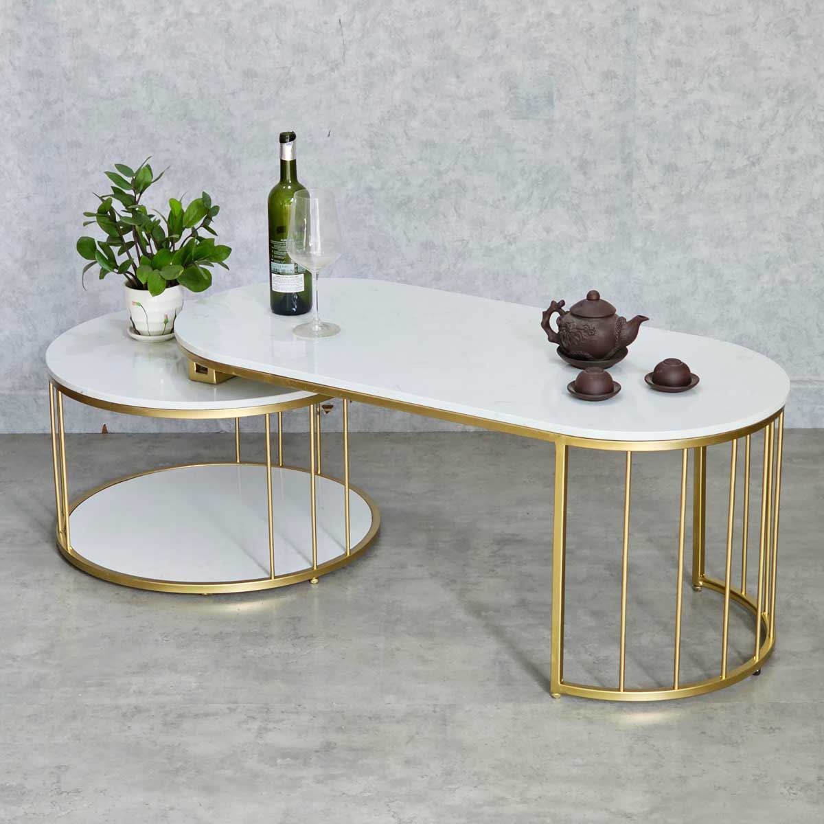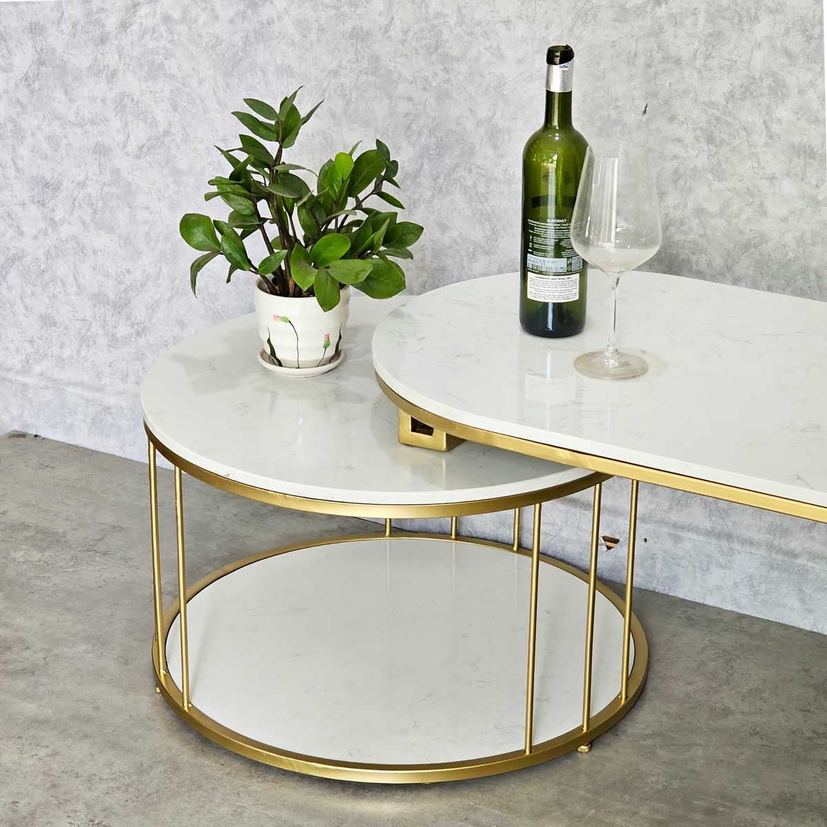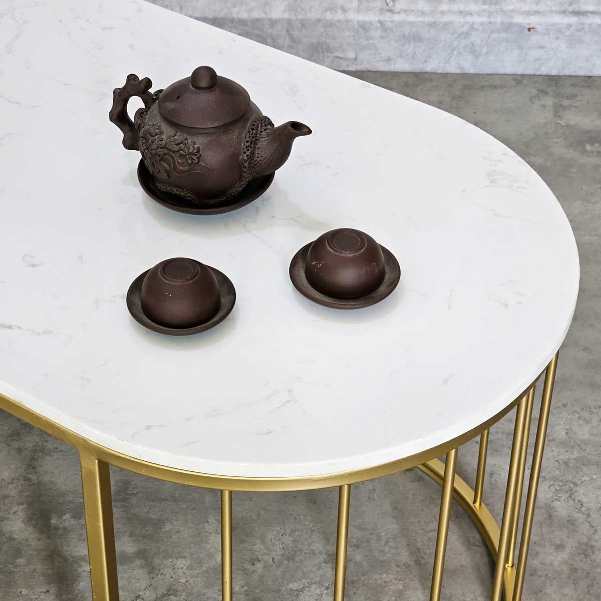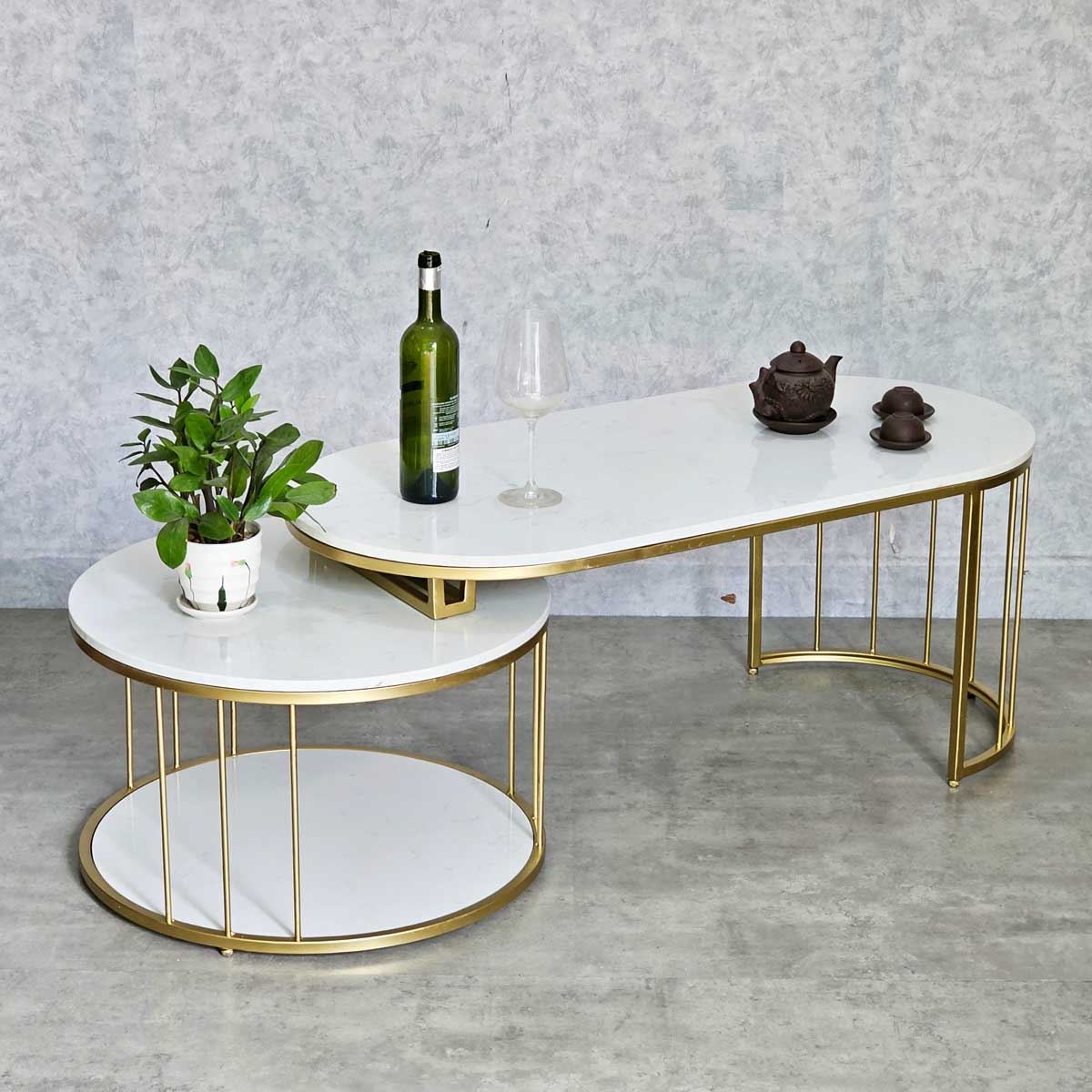 Bàn sofa mặt đá khung sắt sơn vàng đồng.