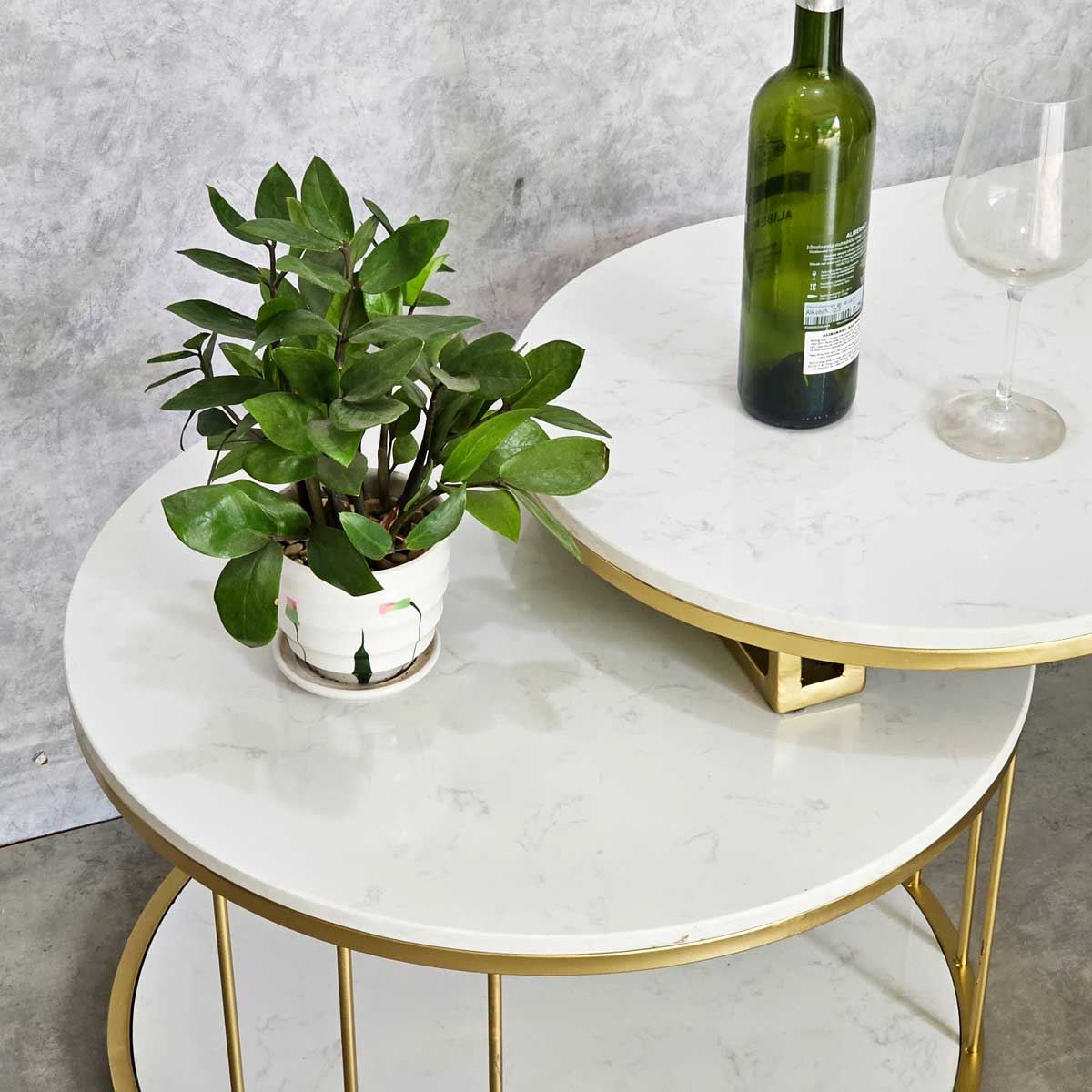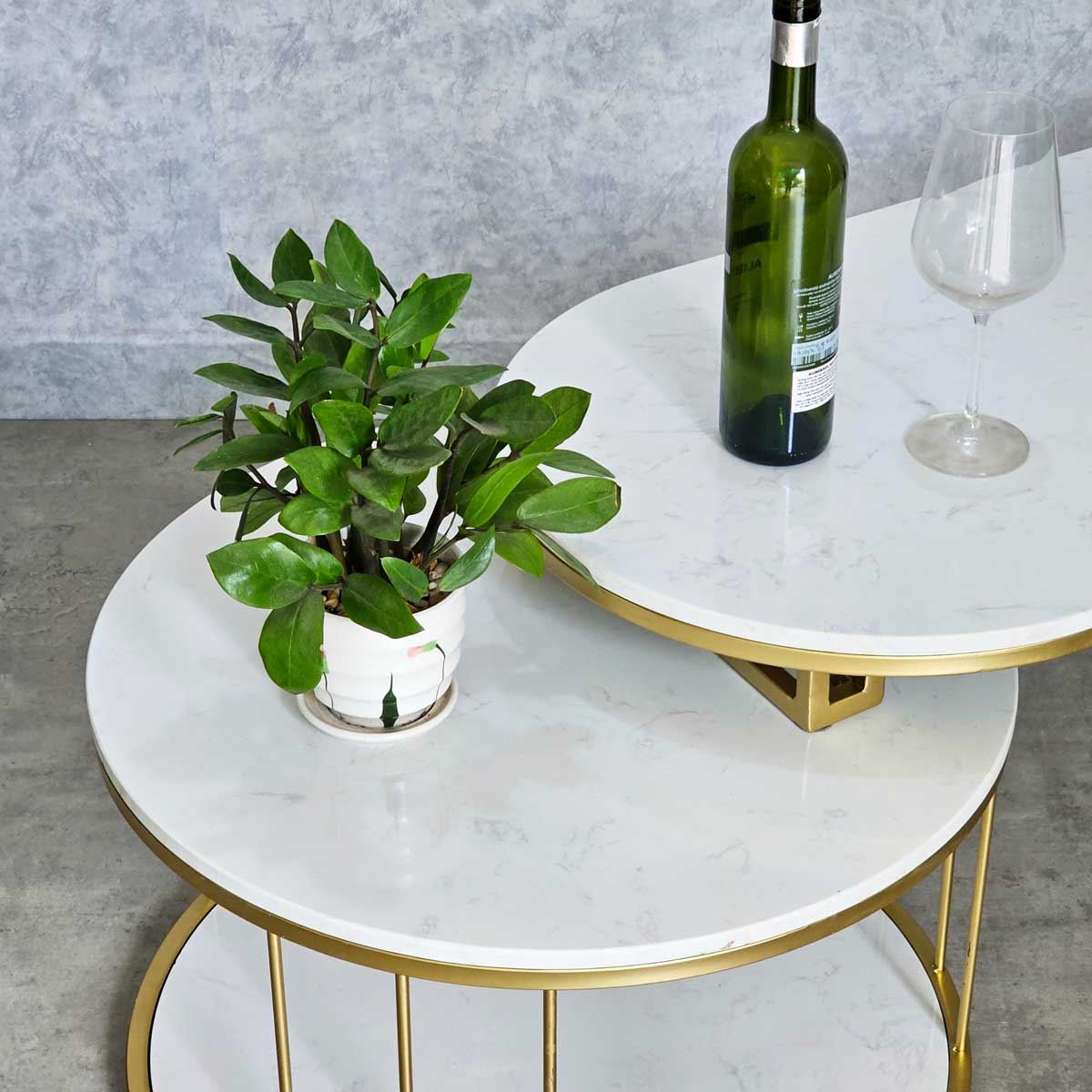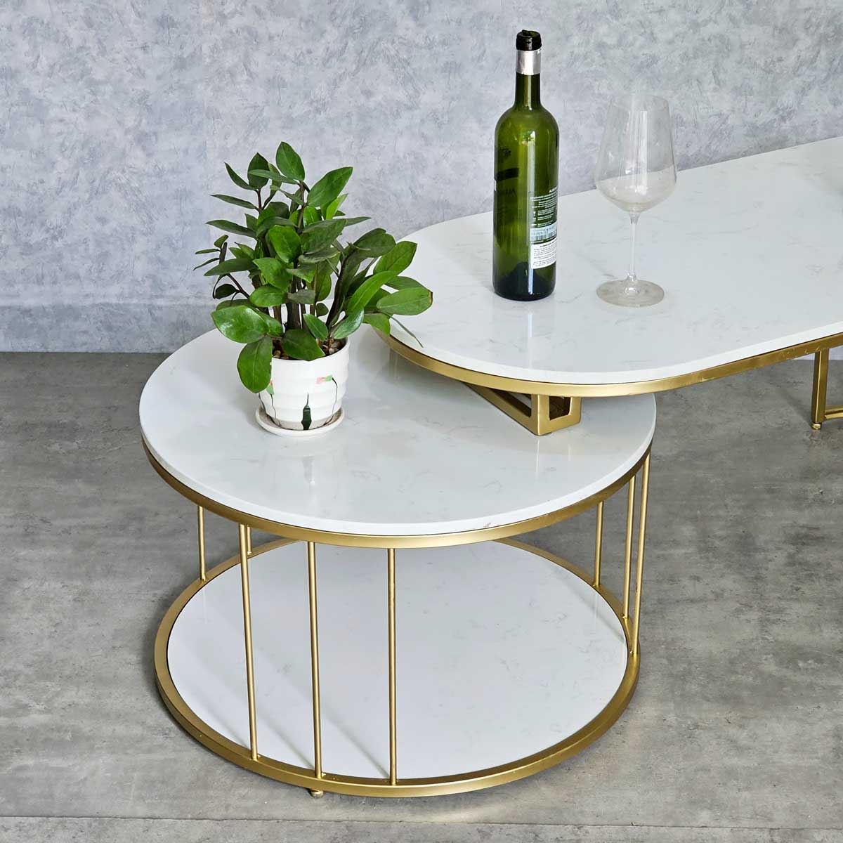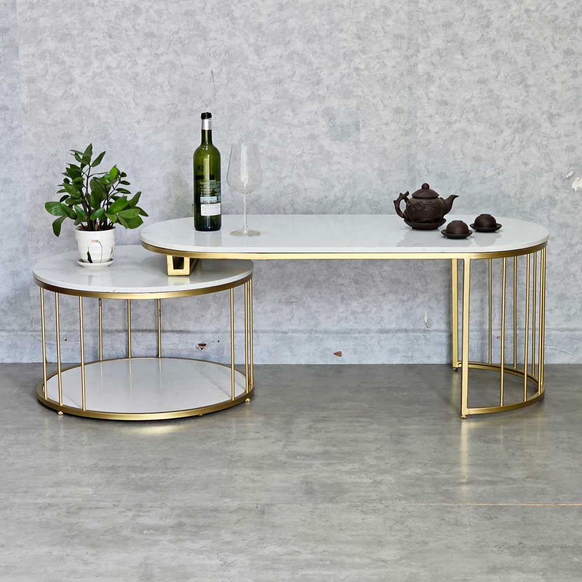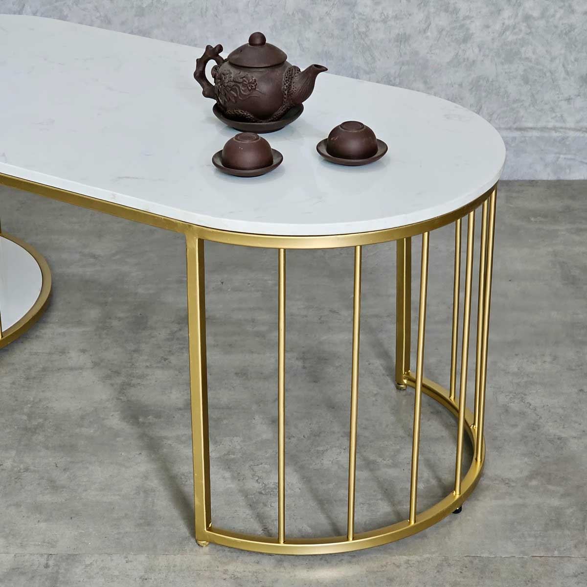 Bàn sofa mặt đá khung sắt sơn vàng đồng.