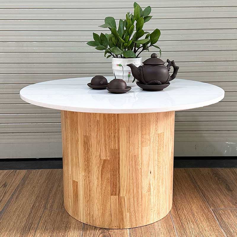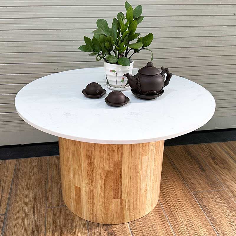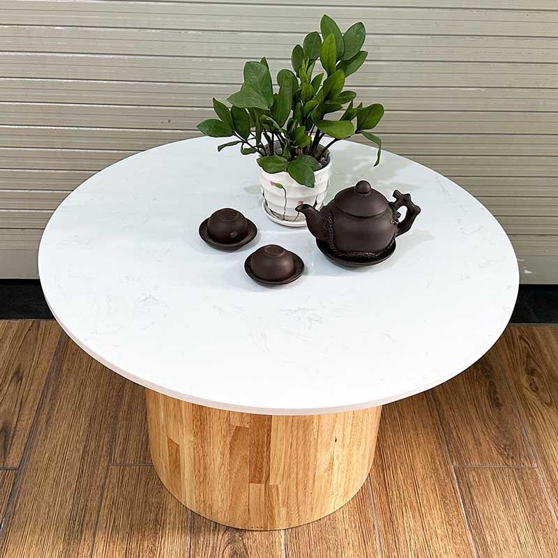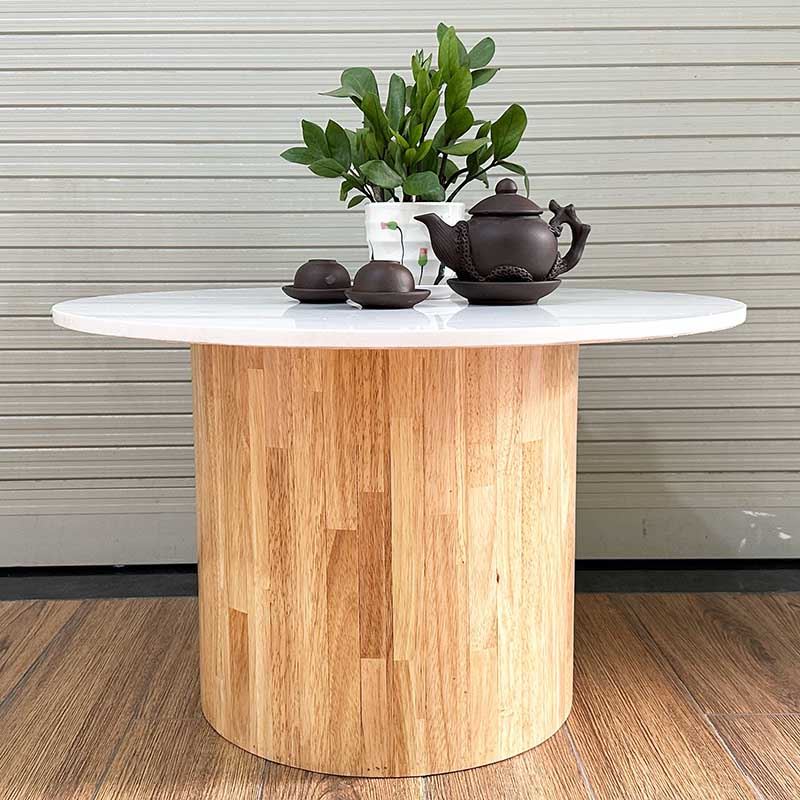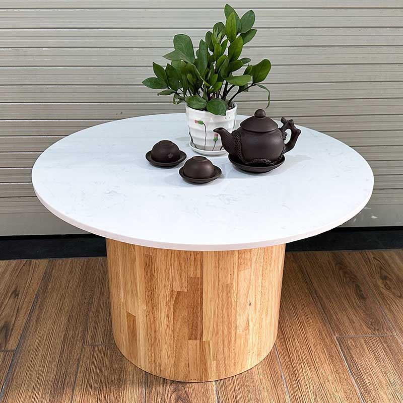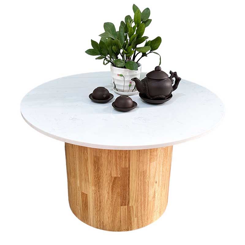 Bàn sofa mặt đá tròn 70cm chân trụ gỗ - TT68236 thiết kế đơn giản nhưng không kém phần sang trọng với mặt bàn tròn 70cm bằng đá nhân tạo màu trắng vân mây dày 15mm kết hợp với chân trụ gỗ cao su tròn đường kính 40cm màu sắc tự nhiên. Mẫu bàn phù hợp với hầu hết các không gian phòng khách, có thể kết hợp với các mẫu ghế Sofa màu tối giản hoặc các mẫu ghế Armchair.