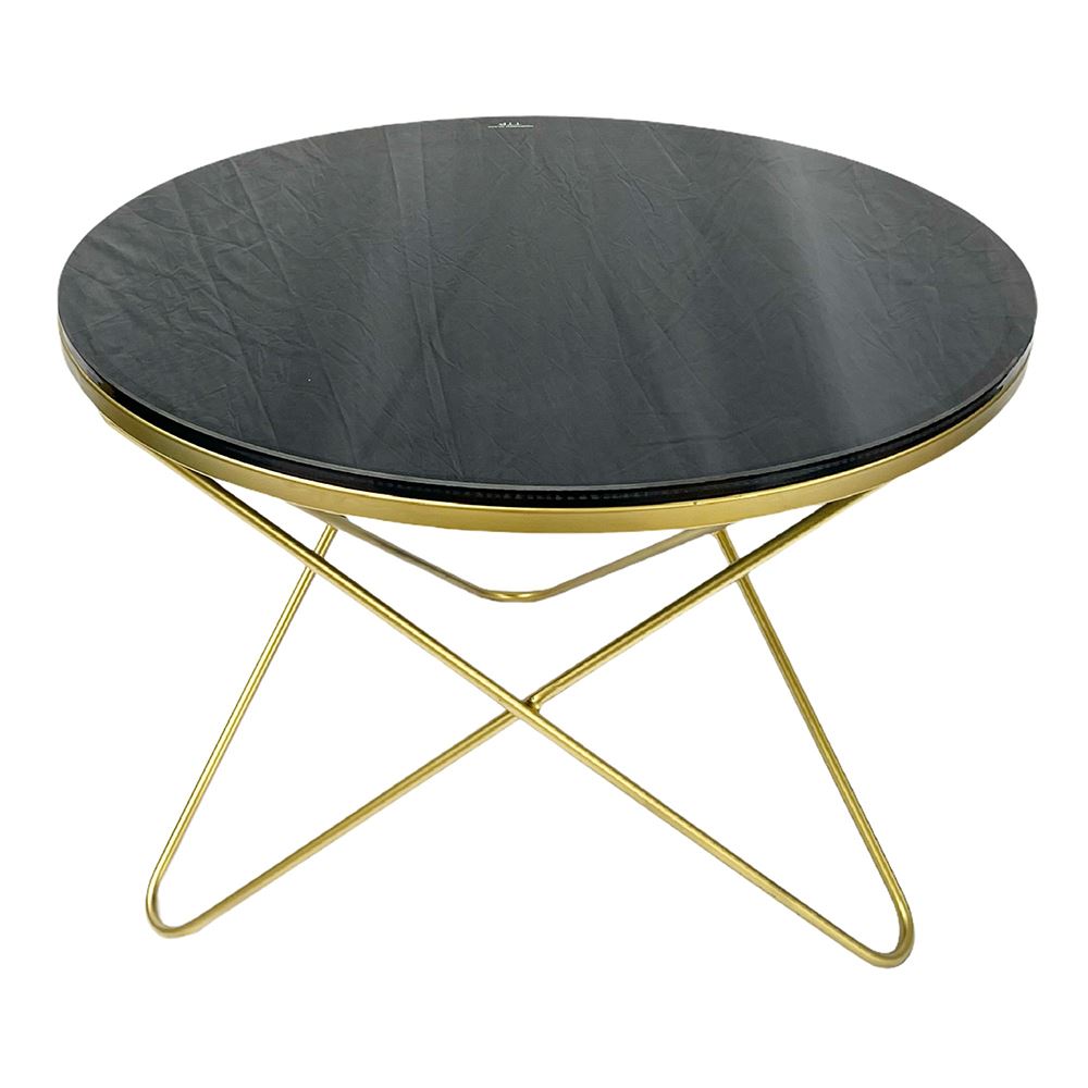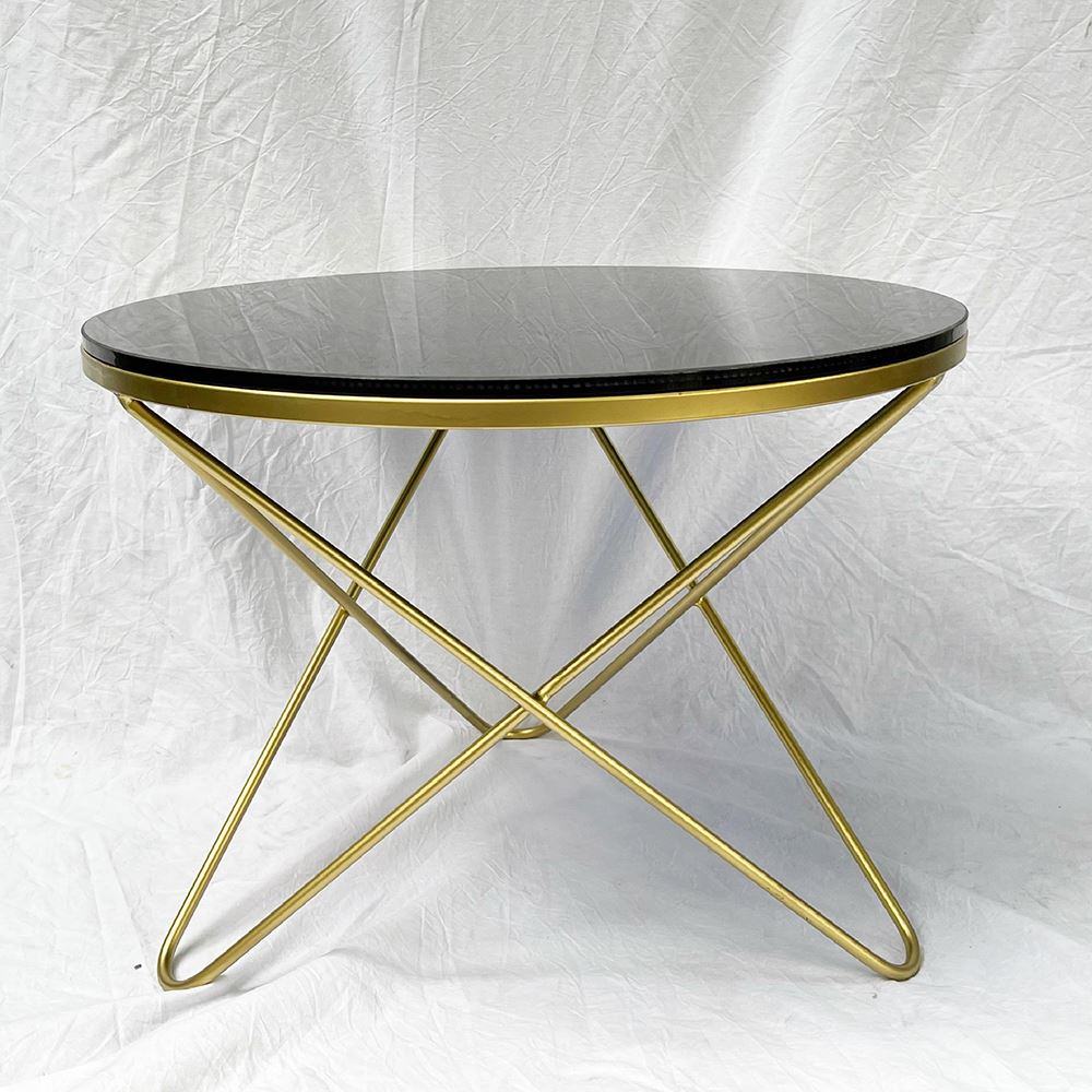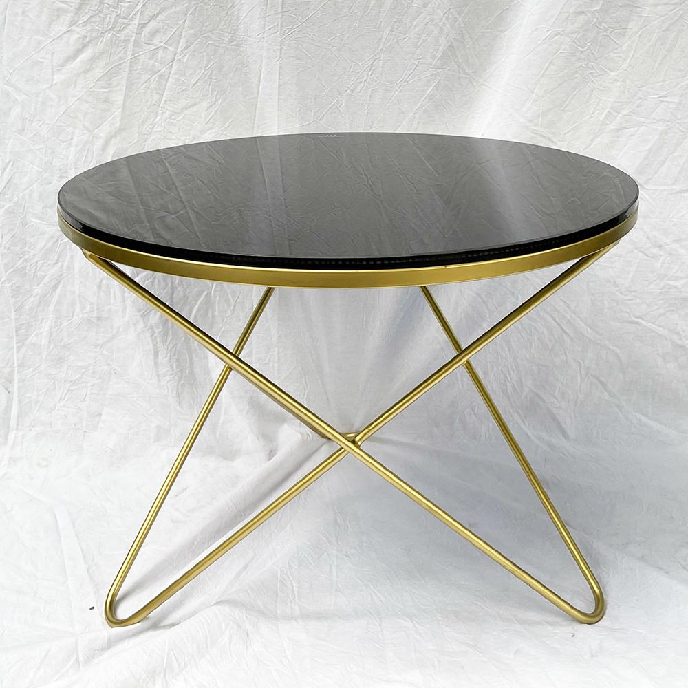 Bàn Sofa mặt kính đen chân chữ V vàng đồng TT68127 thiết kế sang trọng với mặt bàn Kính Đen kết hợp với khung sắt tròn hình dáng 3 chữ V với viền ngoài uốn tròn sơn màu vàng đồng đẹp mắt và sang trọng, mẫu thiết kế dang được rất nhiều không gian lựa chọn phù hợp với tất cả các loại sofa có thể dùng làm bàn Cafe hoặc bàn sofa đều được.