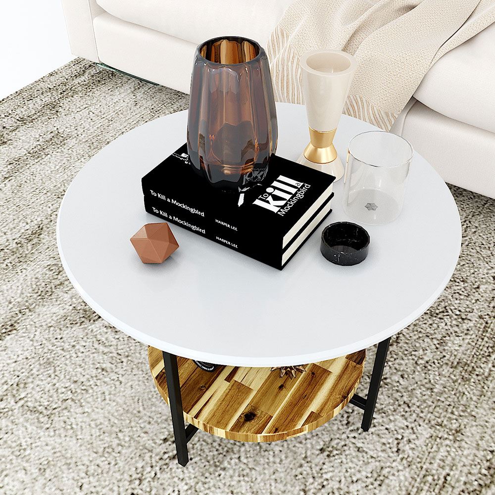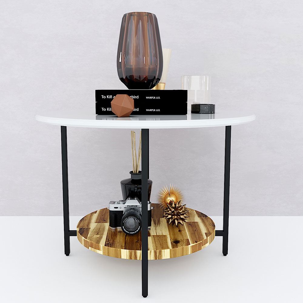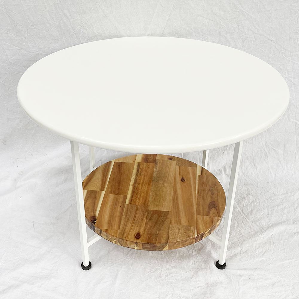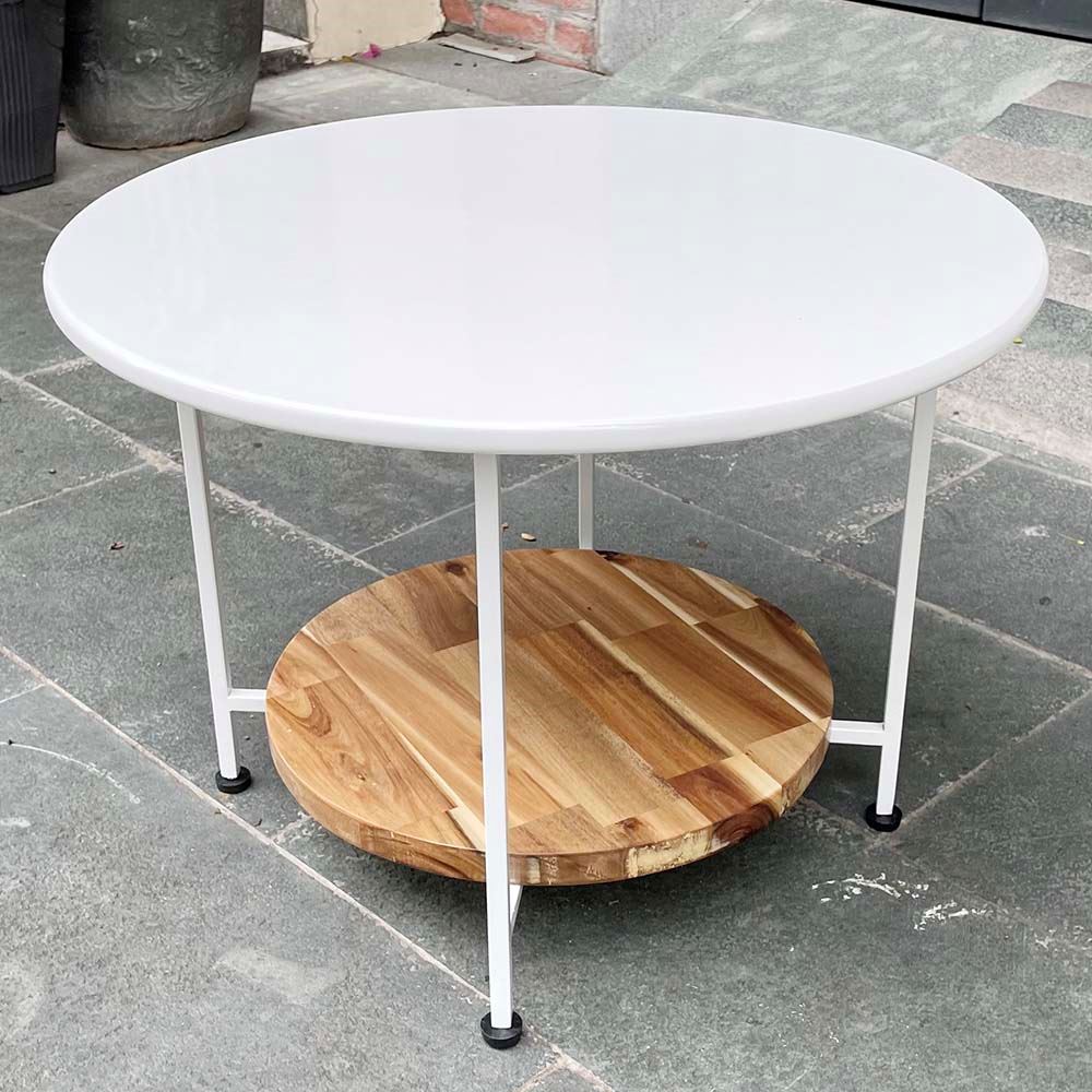 Bàn Sofa Olivia 2 tầng chân sắt TT68132 mẫu bàn là sự kết hợp của 3 vật liệu chính gồm Gỗ Tràm dày 25mm, Gỗ cao su dày 17mm và khung chân sắt với kích thước mặt bàn trên là tròn 60cm được làm từ gỗ cao su tiêu chuẩn AA dày 17mm sơn Pu Trắng hoàn thiện, mặt dưới là gỗ Tràm dày 25mm tròn 40cm màu tự nhiên và hệ khung chân sắt sơn đen tạo nên sản phẩm đa màu sắc vừa mộc mạc, vừa hiện đại ... điểm nhấn cho không gian phòng khách nhà bạn.