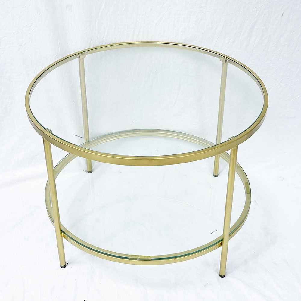 Bàn sofa tròn 2 tầng mặt kính khung vàng đồng