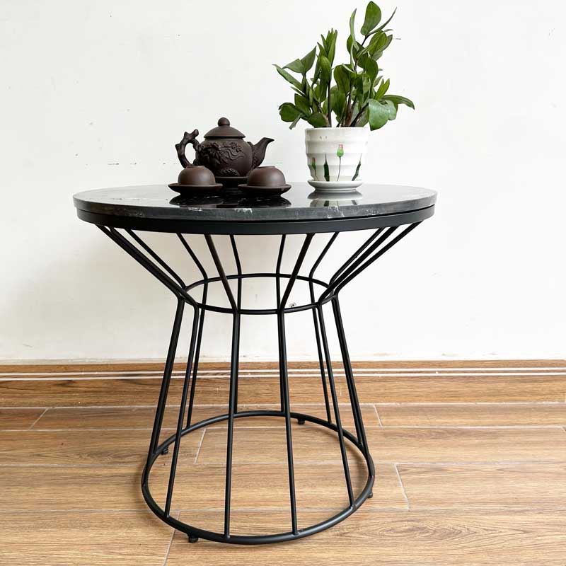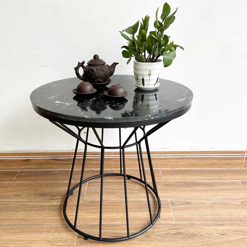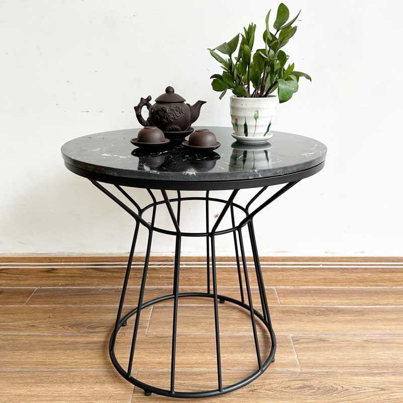 Bàn sofa tròn mặt đá khung sắt cổ lọ TT68239 với khung sắt uốn tròn nâng đỡ mặt bàn kết hợp cùng các thanh sắt tròn nhỏ được gia công tỉ mỉ theo hình cổ lọ đẹp mắt sơn tĩnh điện chất lượng cao kết hợp cùng mặt bàn đá vân đen vân mây sang trọng. Bàn sofa TT68239 đường kính 60cm cùng màu đen chủ đạo dễ dàng phối hợp với các món đồ nội thất khác đem đến không gian sang trọng và ấn tượng.