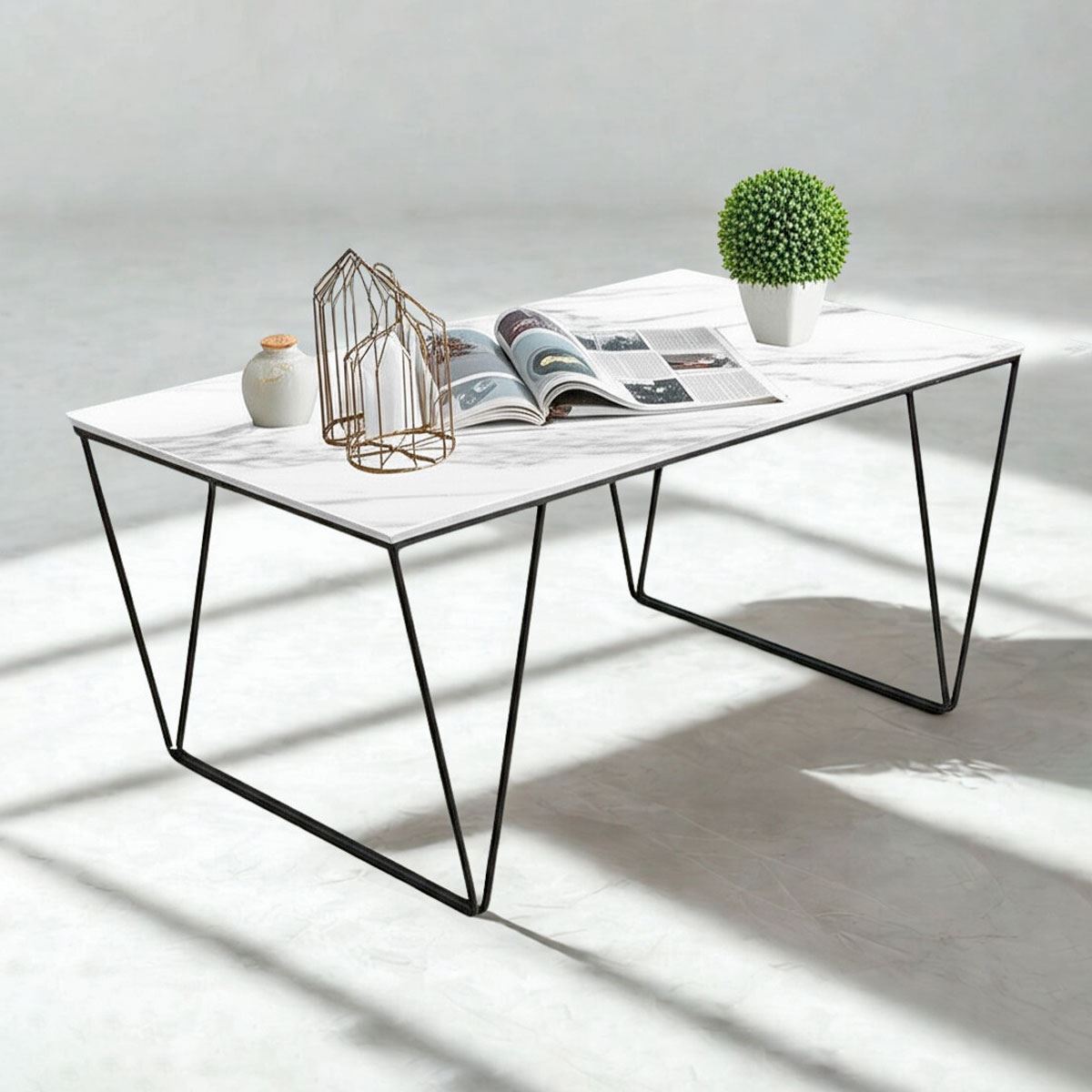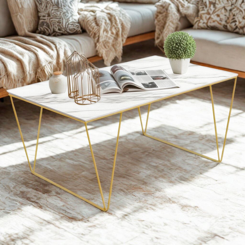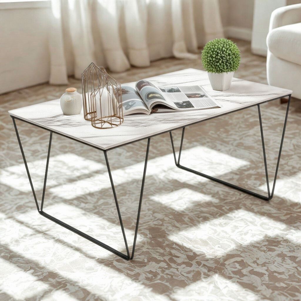 - Chất liệu: Đá ceramic cao cấp, dày 12mm, chống trầy xước - Chân sắt sơn tĩnh điện
