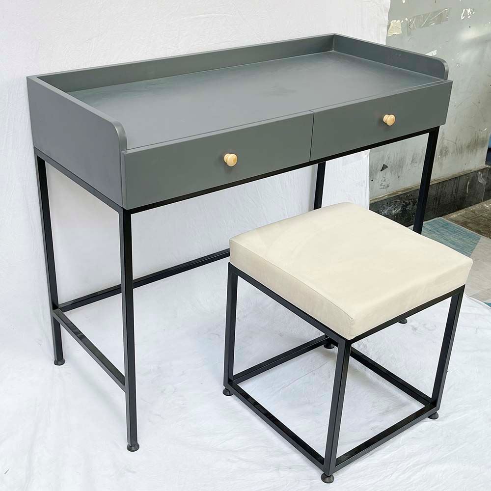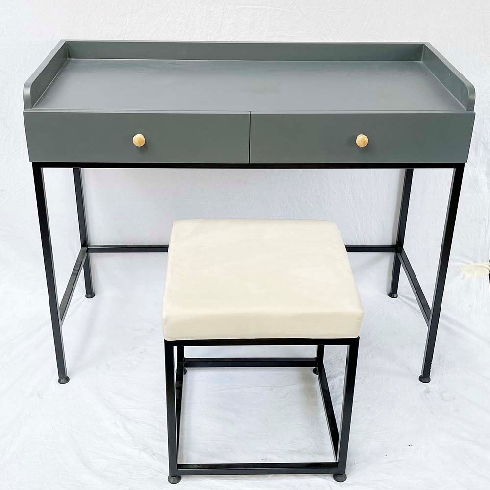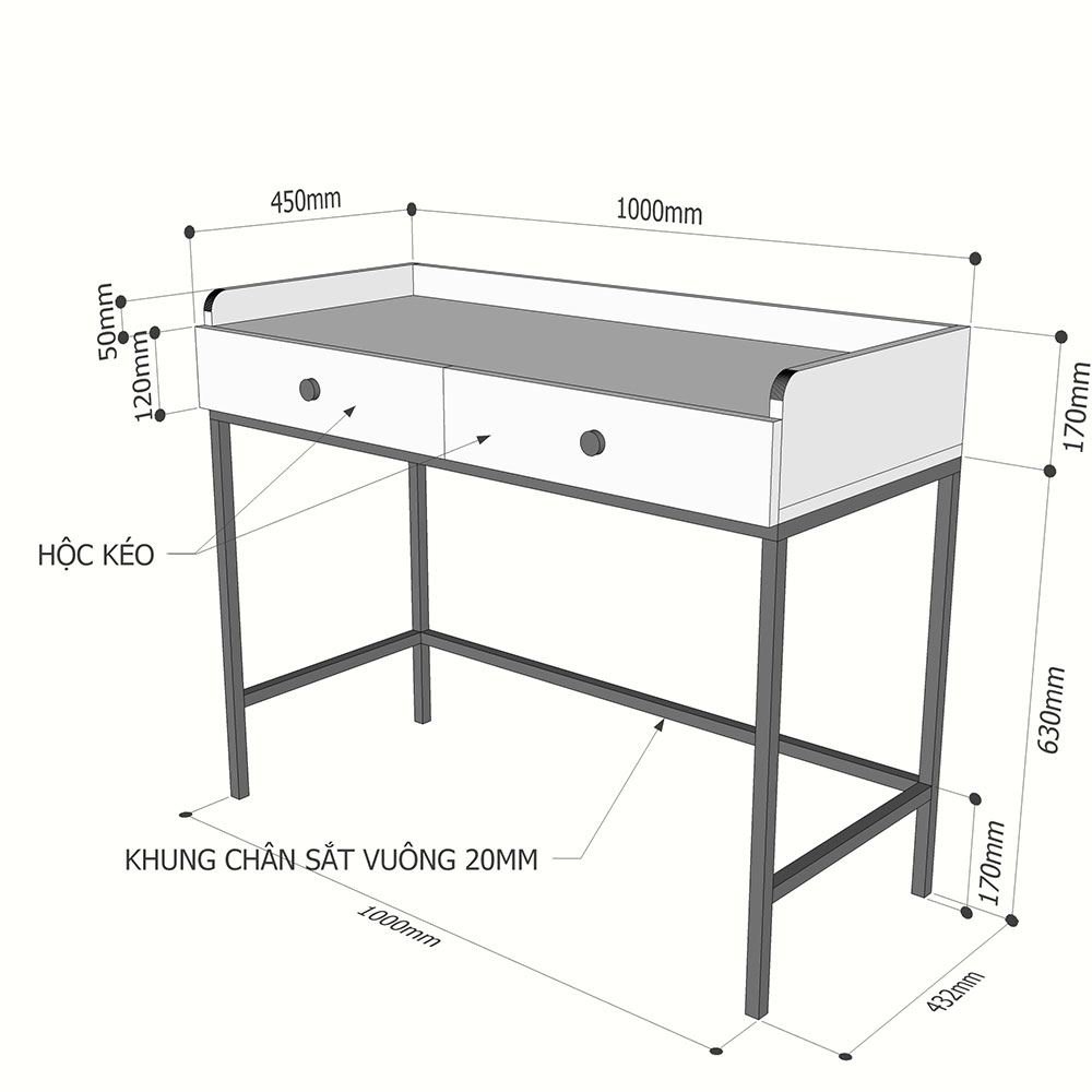 Bàn Trang Điểm 2 hộc kéo chân sắt BTD68048 mẫu bàn đơn giản thiết kế mặt bàn có gờ nhỏ chống rớt đồ rất hiệu quả cùng 2 hộc kéo tăng khả năng lưu trữ tiện lợi, chân sắt hàn cố định nên rất chắc chắn. Sản phẩm sử dụng chất liệu gỗ cao su tiêu chuẩn AA dày 17mm sơn PU hoàn thiện nên rất bền bỉ kèm với đó là ghế chân sắt nệm ngồi êm ái. Mẫu bàn thích hợp cho mọi không gian phòng ngủ với hai tông màu chủ đạo là Trắng và Đen nên rất dễ phối hợp với không gian.