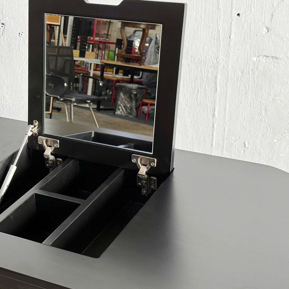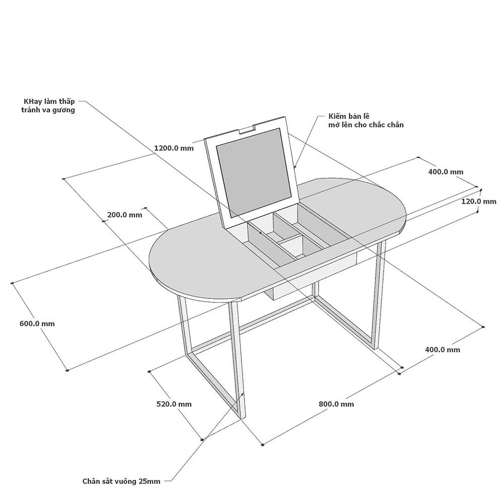 Bàn trang điểm COTO gỗ cao su 120x60cm - BTD68072 với thiết kế gương lật thông minh khiến cho mẫu bàn có thể vừa làm Bàn Trang Điểm vừa làm bàn làm việc, khi cần trang điểm chỉ cần lật gương lên, thiết kế giấu đồ thôn minh. Bàn được làm từ gỗ cao su tiêu chuẩn AA dày 17mm sơn PU hoàn thiện kết hợp với khung chân sắt.