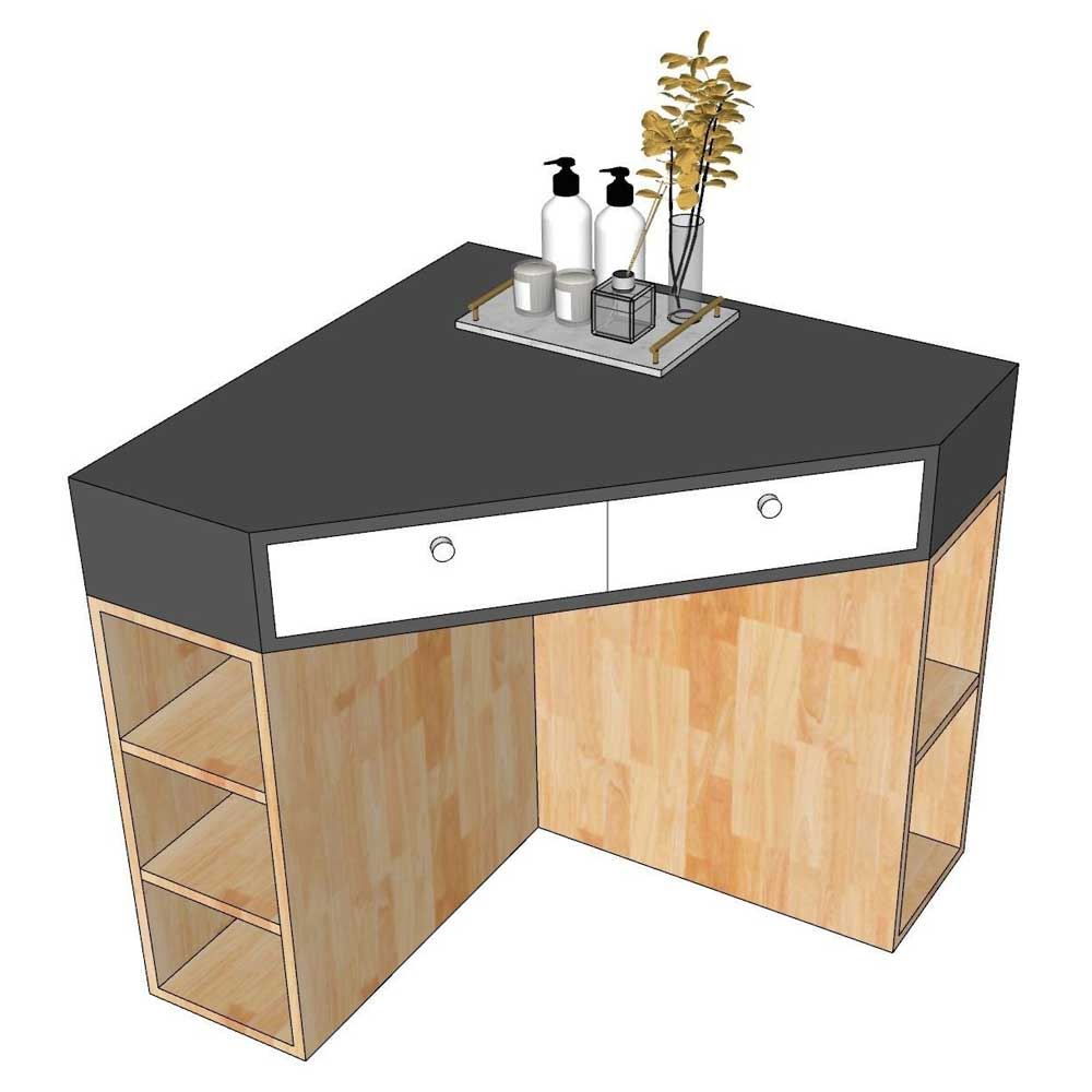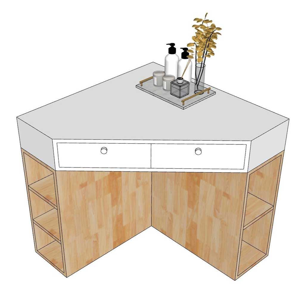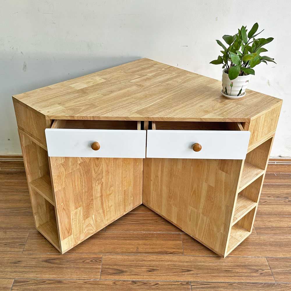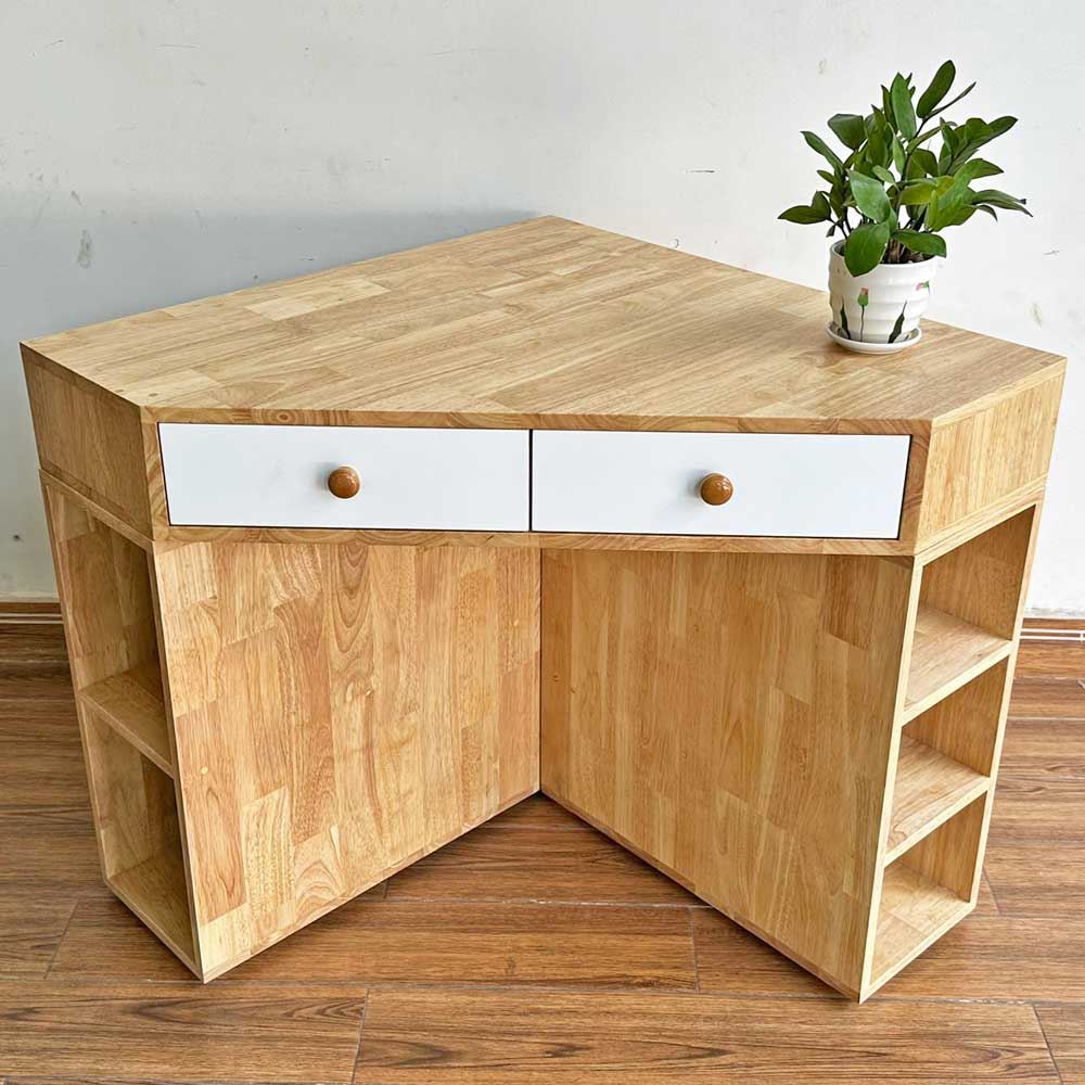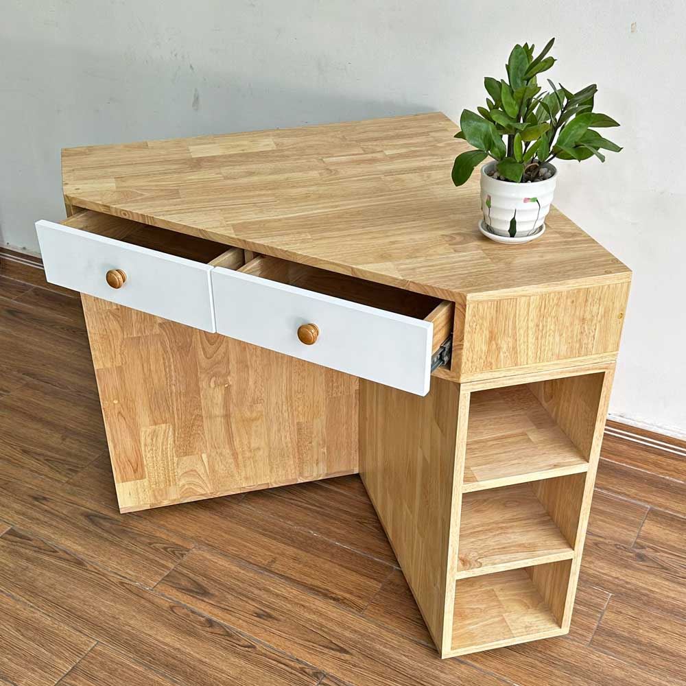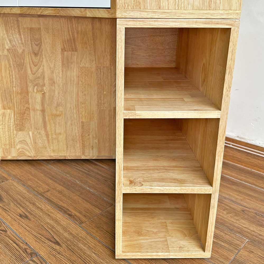 Với kiểu dáng góc hình chữ L, bàn trang điểm BTD68057 giúp bạn tận dụng khoảng trống sát góc tường một cách hiệu quả. Bên cạnh đó, bàn trang điểm BTD68057 còn được bố trí thêm các ngăn kệ bên không, tạo ra các khoảng không gian lưu trữ tiện ích, giúp không gian trở nên gọn gàng và thẩm mỹ hơn. Bạn có thể bài trí thêm đồ trang trí, tranh ảnh, chậu cây... cho sinh động hơn.