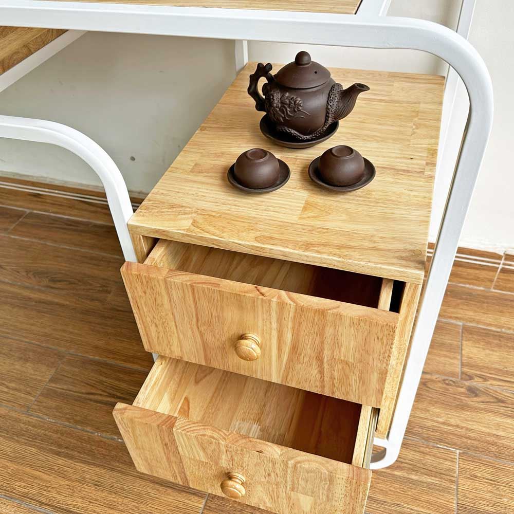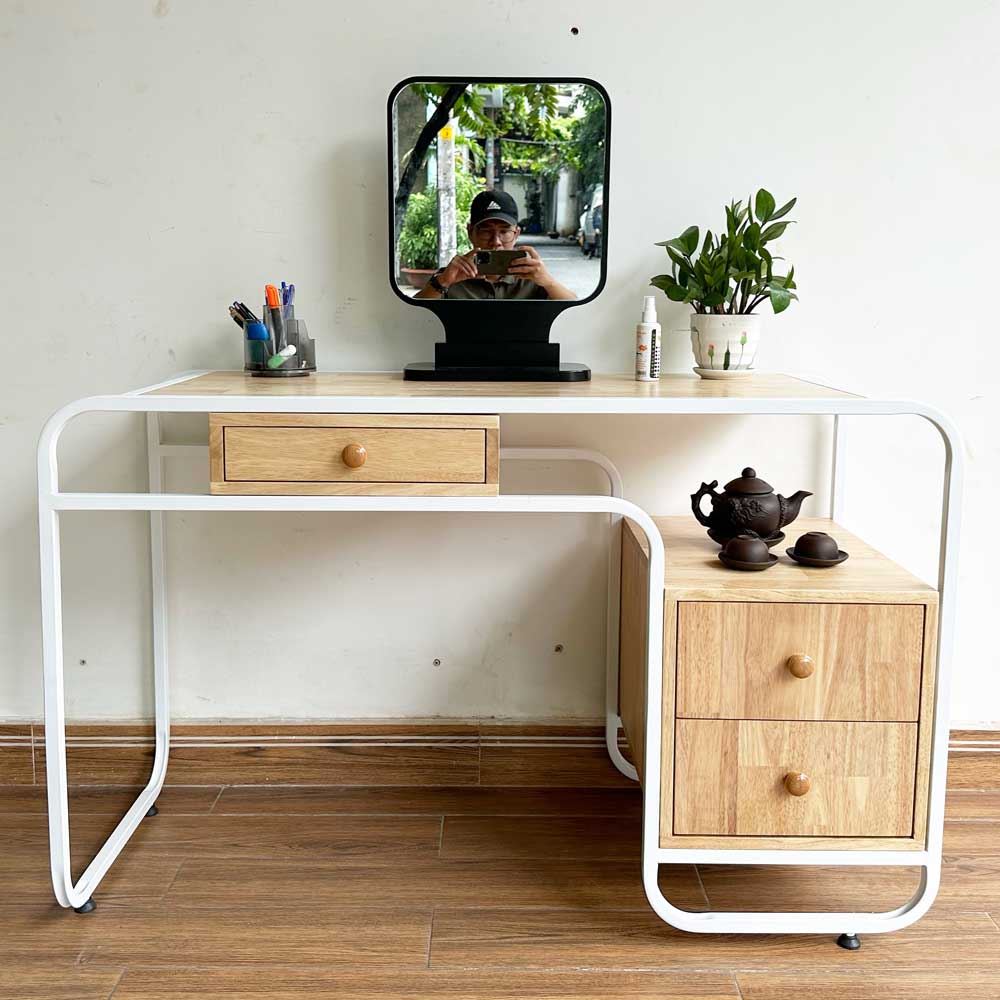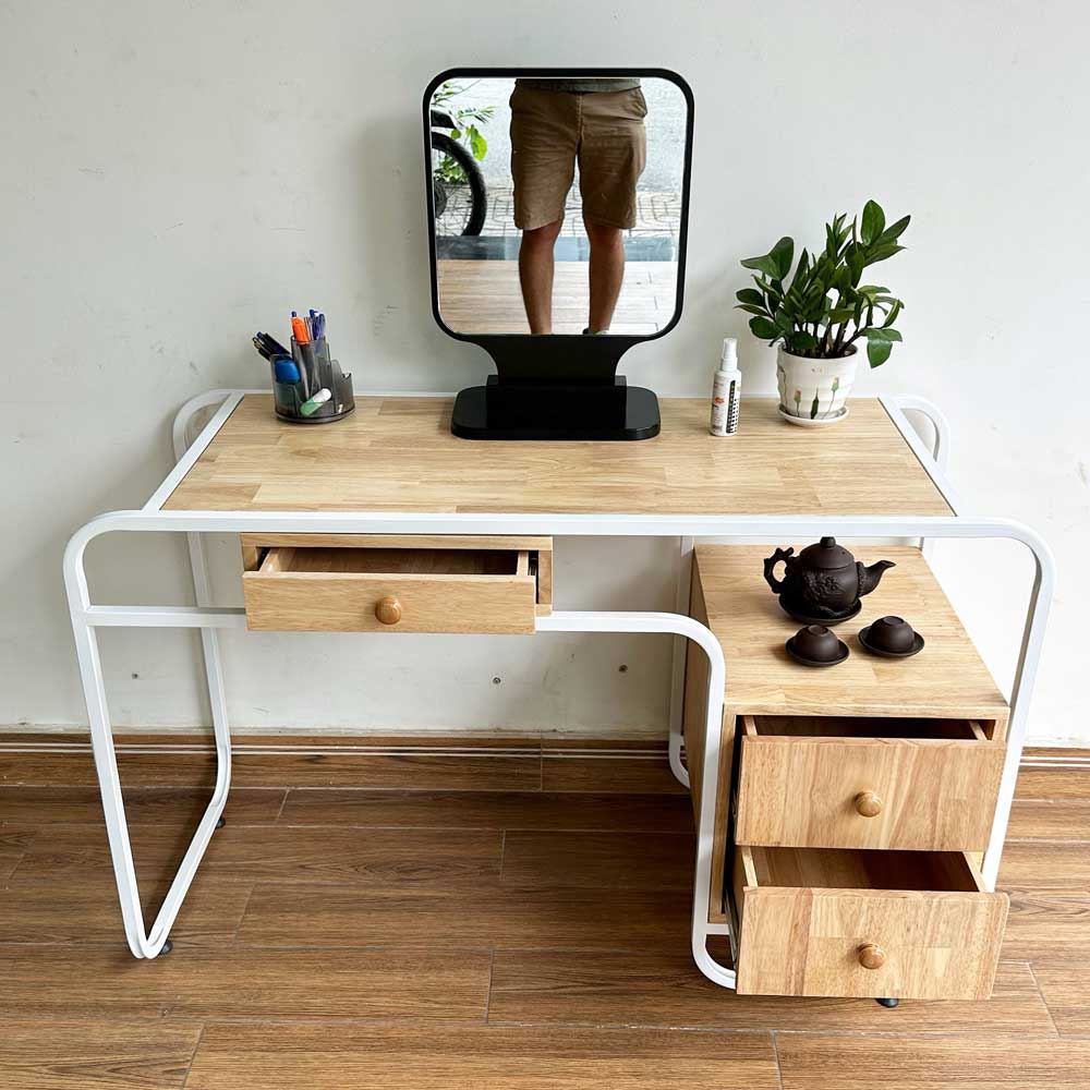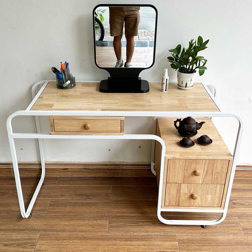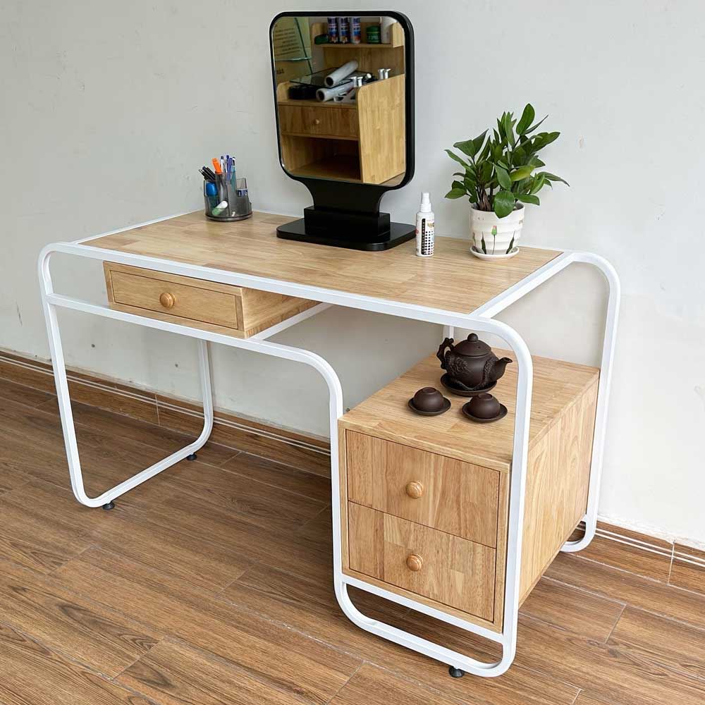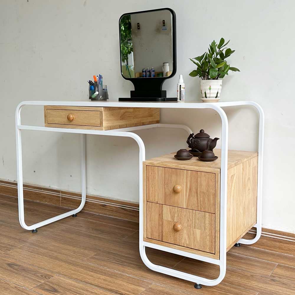 Bàn trang điểm BTD68063 sử chất liệu chính là gỗ cao su ghép, đạt tiêu chuẩn xuất khẩu AA. Bề mặt gỗ đã được xử lý bằng sơn PU chống thấm. Ngoài ra, bạn có thể lựa chọn 5 màu khác tùy thích, phù hợp với nhiều không gian và phong cách mà cá nhân đang hướng tới. Khung chân sắt được hoàn thiện cẩn thận, mang nét thanh mảnh nhưng vẫn đảm bảo sự chắc chắn và ổn định. Bề mặt sắt được phủ lớp sơn tĩnh điên cao cấp chống rỉ sét, chống trầy, đảm bảo bộ bền bỉ theo thời gian.