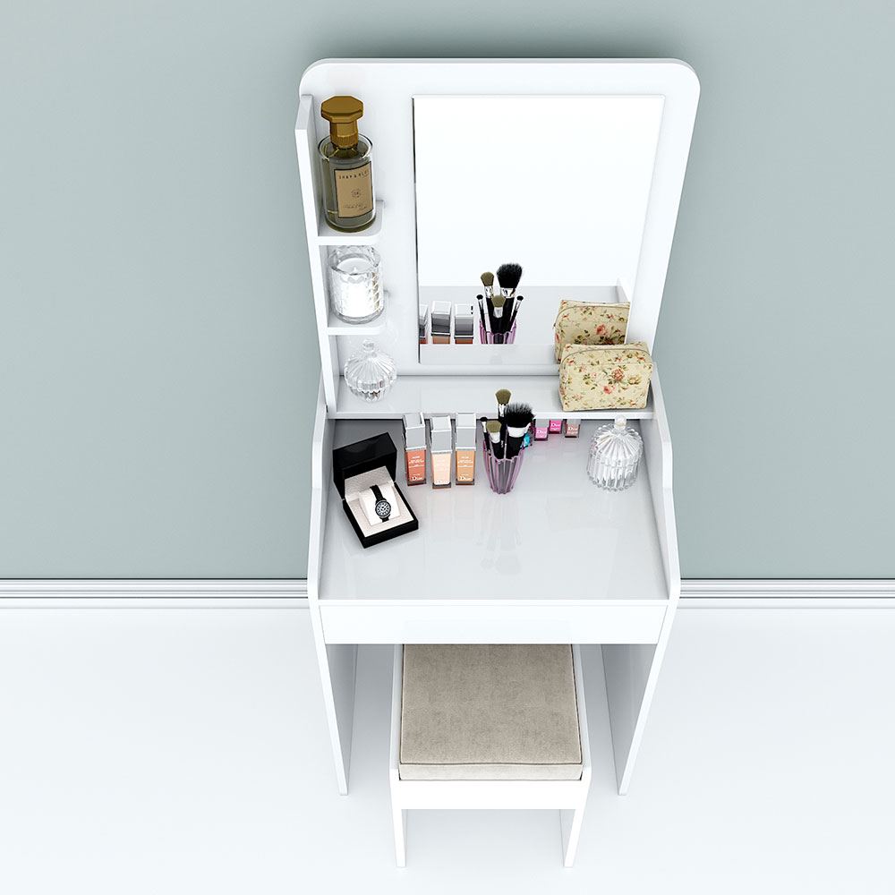 Bàn Trang Điểm Mini Gỗ Cao Su Kèm Gương BTD69047 ( Bao gồm Ghế ) với kích thước nhỏ gọn ngang chỉ 65cm nên phù hợp với mọi không gian thiết kế đa công năng với hộc kéo, kệ trên bàn và gương tích hợp rất tiện lợi, sản phẩm được làm từ gỗ cao su tiêu chuẩn AA dày 17mm sơn PU hoàn thiện nên rất chắc chắn.
