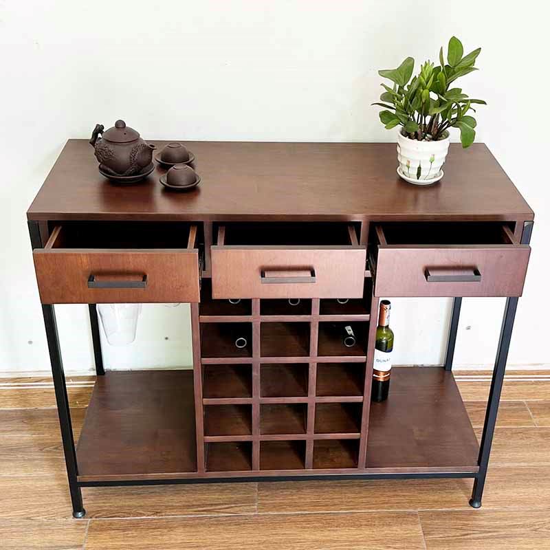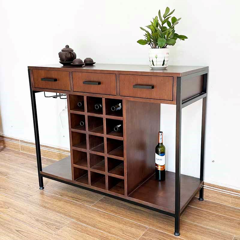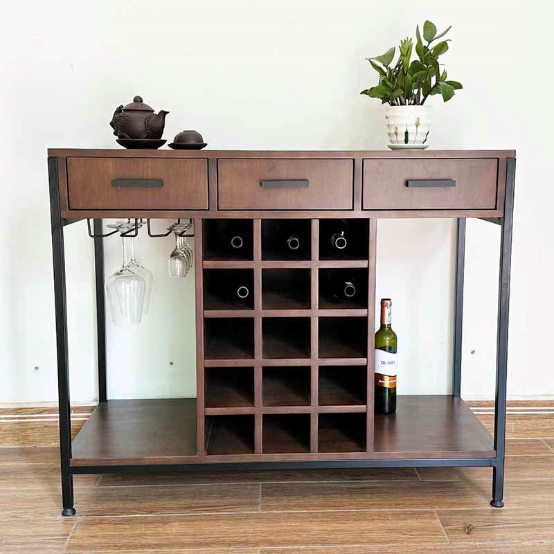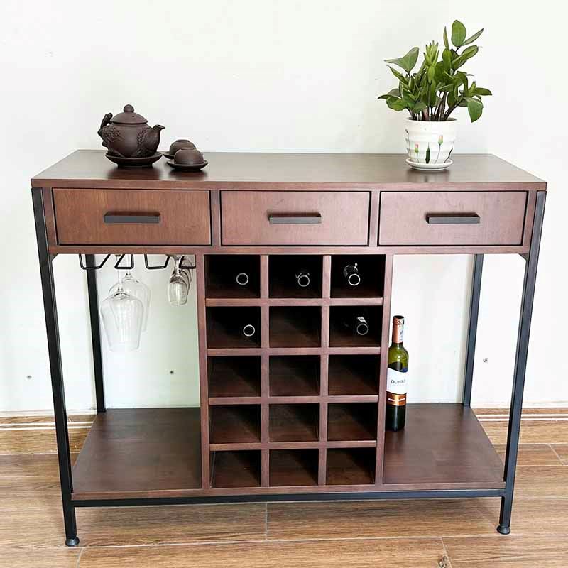 Bàn trang trí kết hợp kệ rượu CST050 sở hữu kiểu dáng hiện đại, thiết kế tinh tế thường được sử dụng trong không gian phòng khách hay phòng ăn nhằm tạo điểm nhấn cho không gian thêm hoàn hảo, bàn console có tích hợp các tiện ích khác như có các khay để rượu vang và các tầng treo ly trưng bày các món đồ trang trí yêu thích hay kệ để đồ nhờ trang bị 3 hộc kéo rộng rãi, tối ưu không gian lưu trữ.