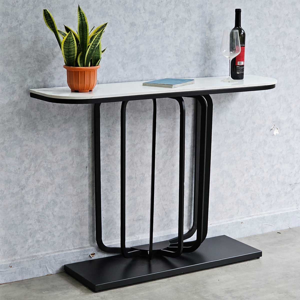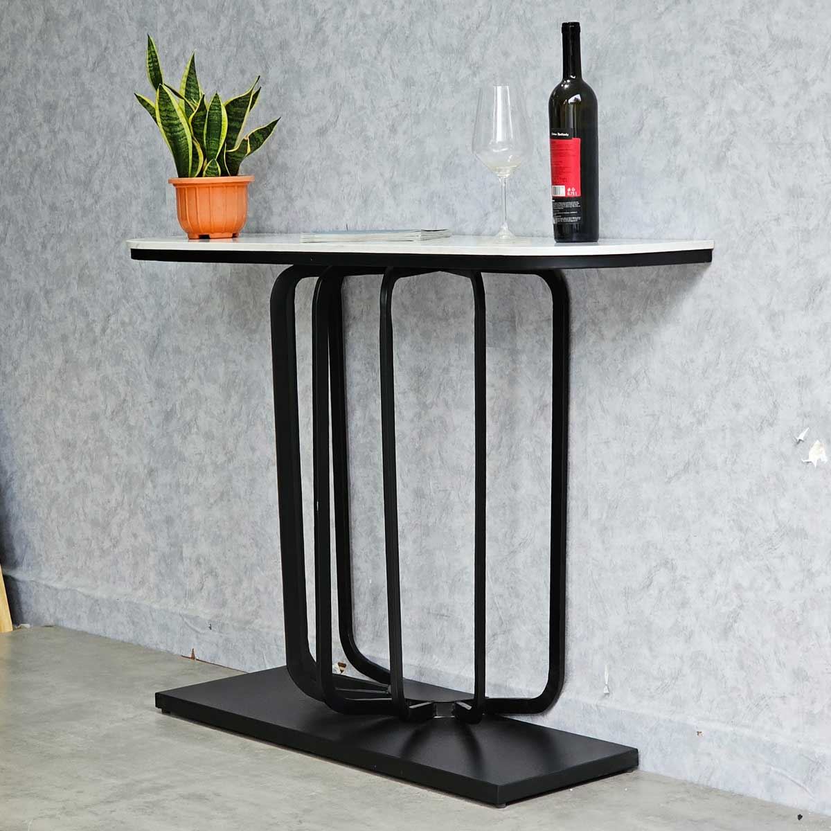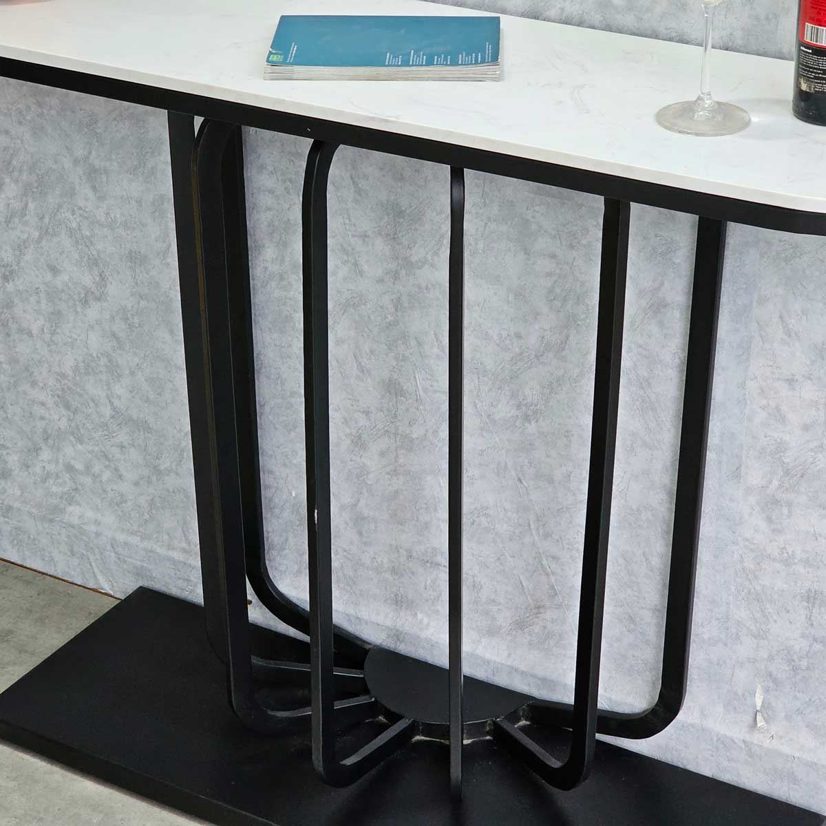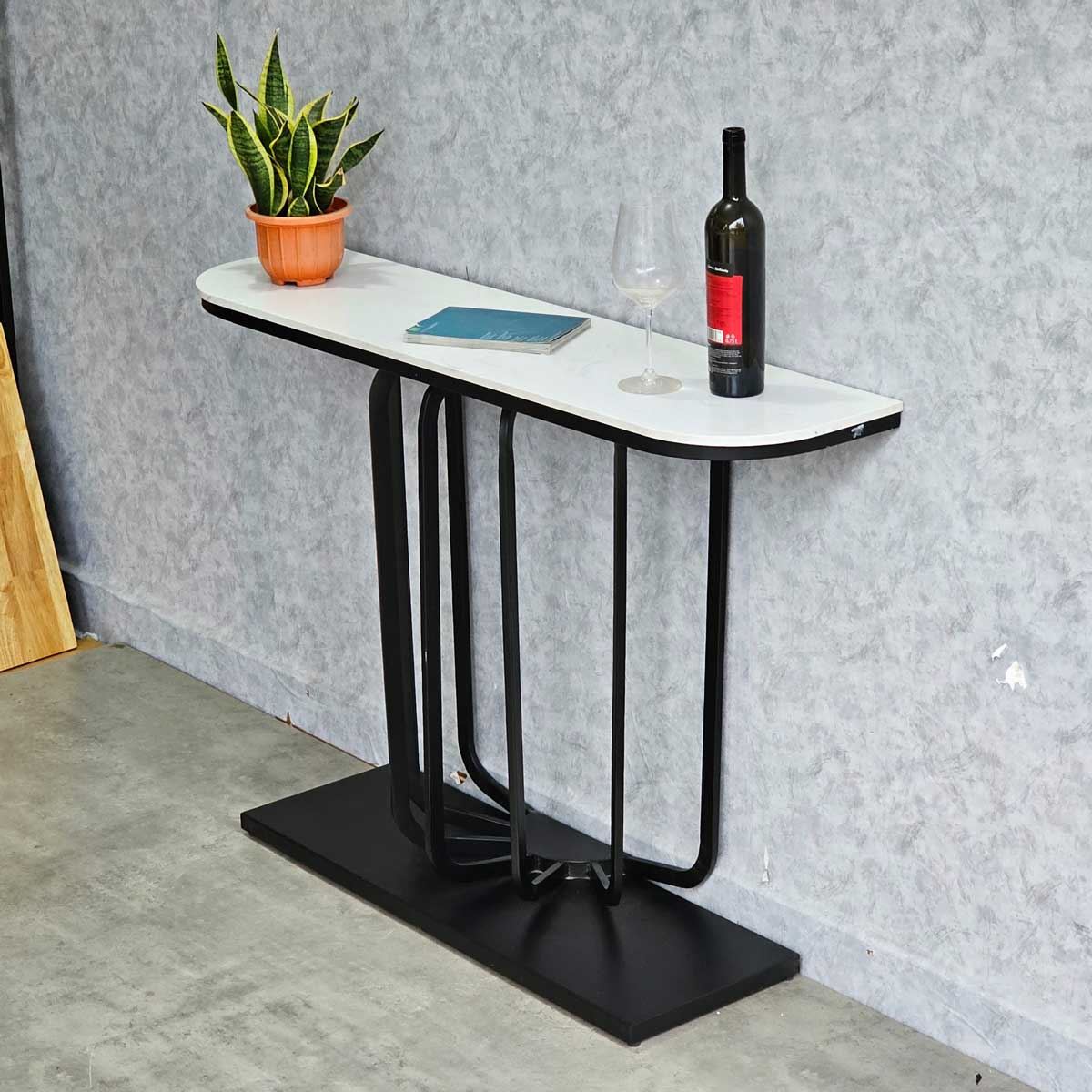 Bàn trang trí URI mặt đá chân sắt CST035 mặt bàn đá đỡ bởi khung sắt hình dáng bầu dục ôm sát tường rất mềm mại kết hợp với khung chân được làm bằng sắt sơn tĩnh điện rất đẹp mắt, gia công tỷ mỉ mang đến sản phẩm có độ hoàn thiện cao. Mẫn bàn trang trí URI rất phù hợp với các không gian sảnh, lối đi làm chiếc bàn trưng bày, trang trí.